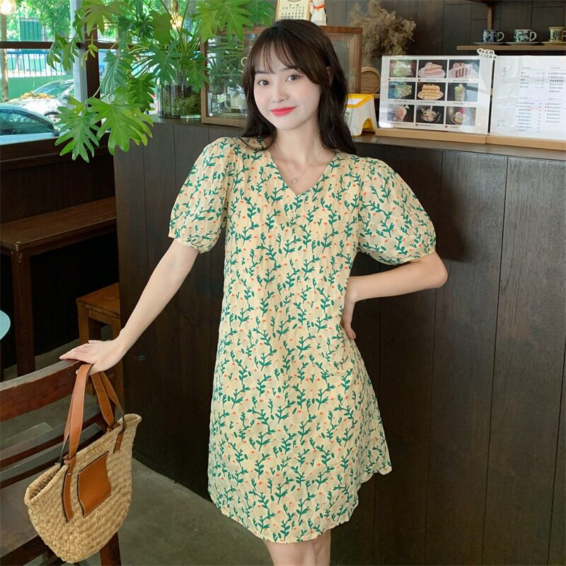 Летняя юбка, платье, коллекция 2022, высокая талия, большой размер, подходит для полных девушек, рукава фонарики, в цветочек