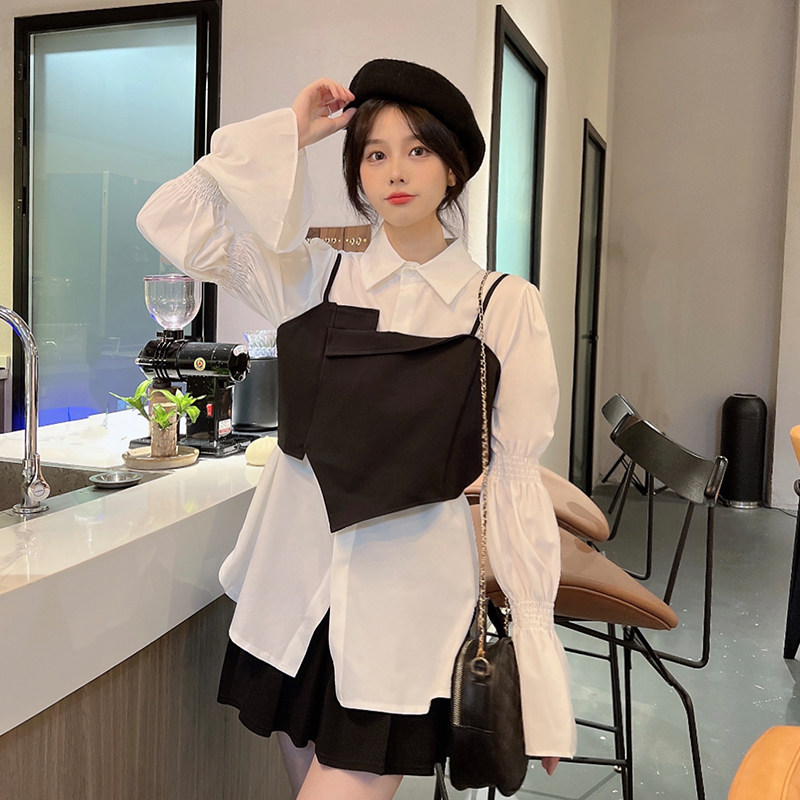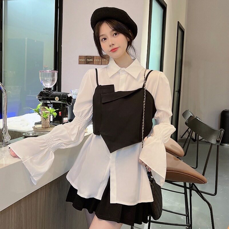 Приталенный корсет, топ с чашечками, универсальная рубашка, комплект, осенний, большой размер, оверсайз