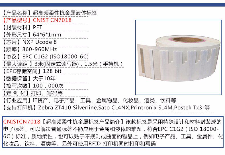 CNIST UHF RFID гибкая антиметаллическая электронная бирка UHF жидкая самоклеящаяся этикетка радиочастотная идентификация