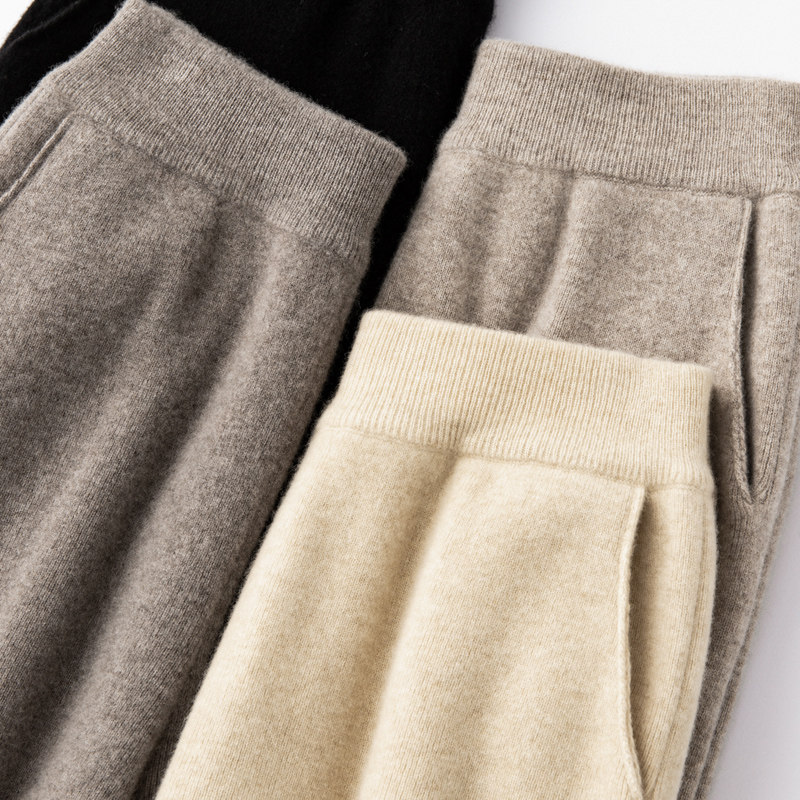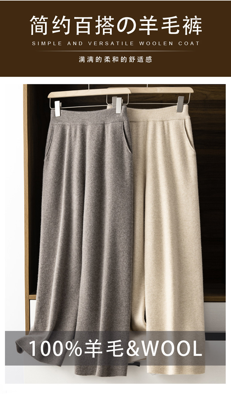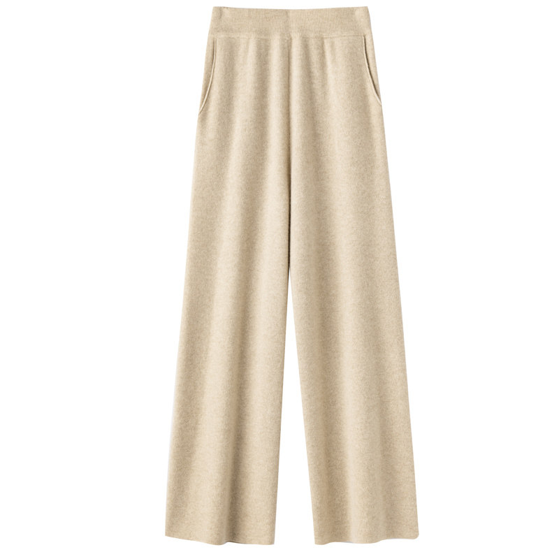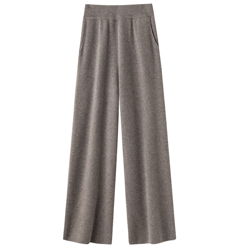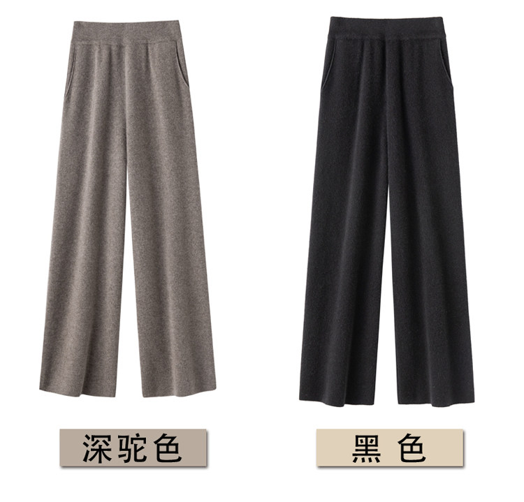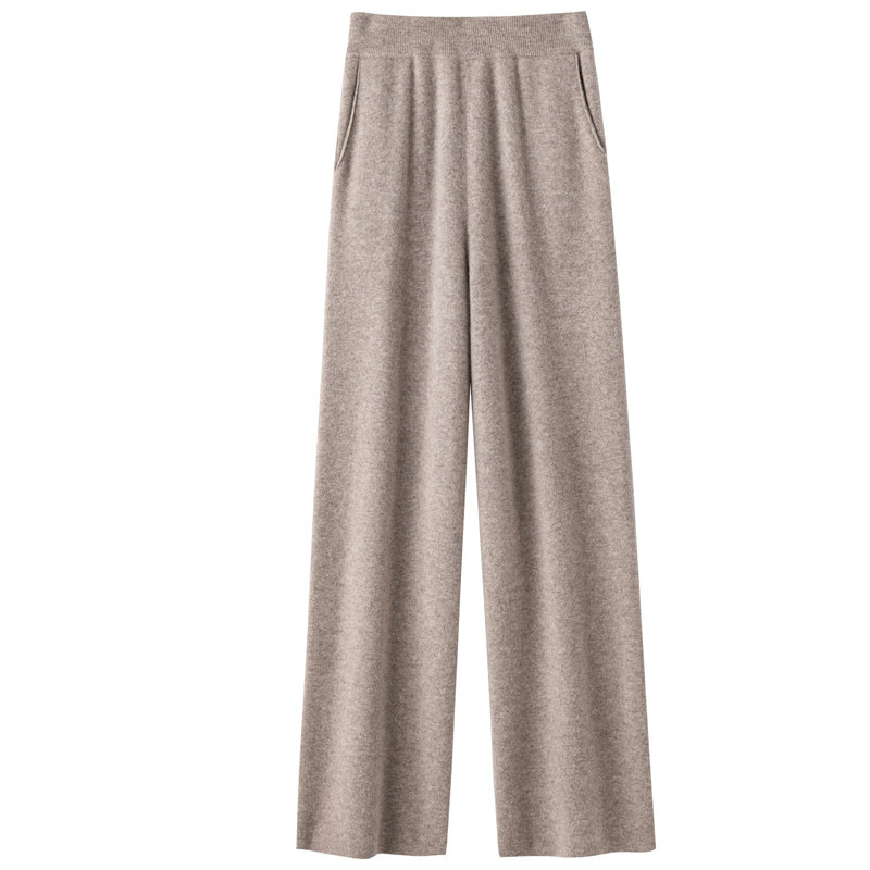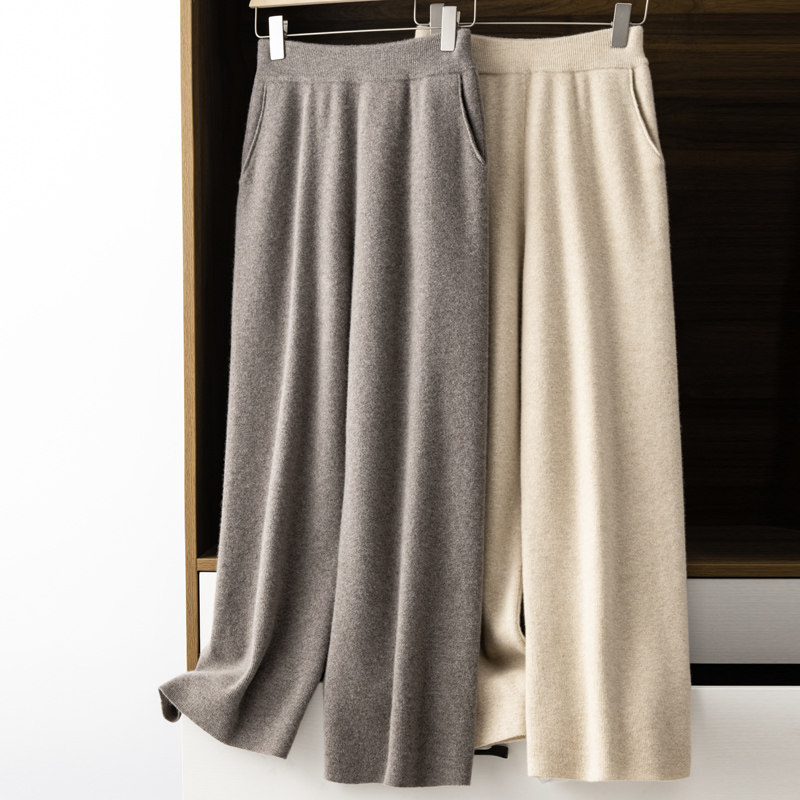 Демисезонные шерстяные трикотажные кашемировые штаны, увеличенная толщина, высокая талия, свободный прямой крой