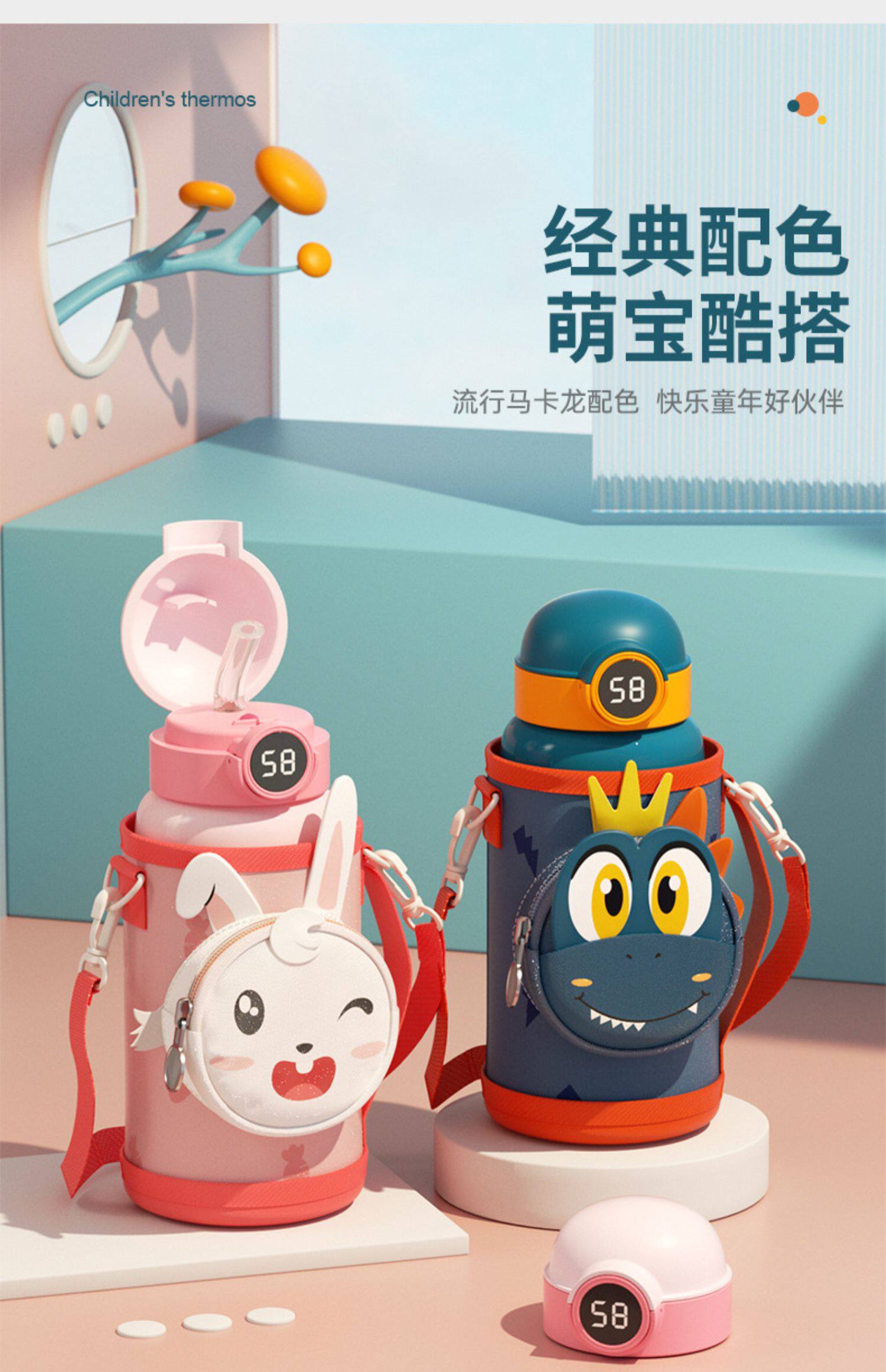 Детский вместительный и большой портативный стакан, умный высококачественный чайник из нержавеющей стали, трубочка для школьников со стаканом