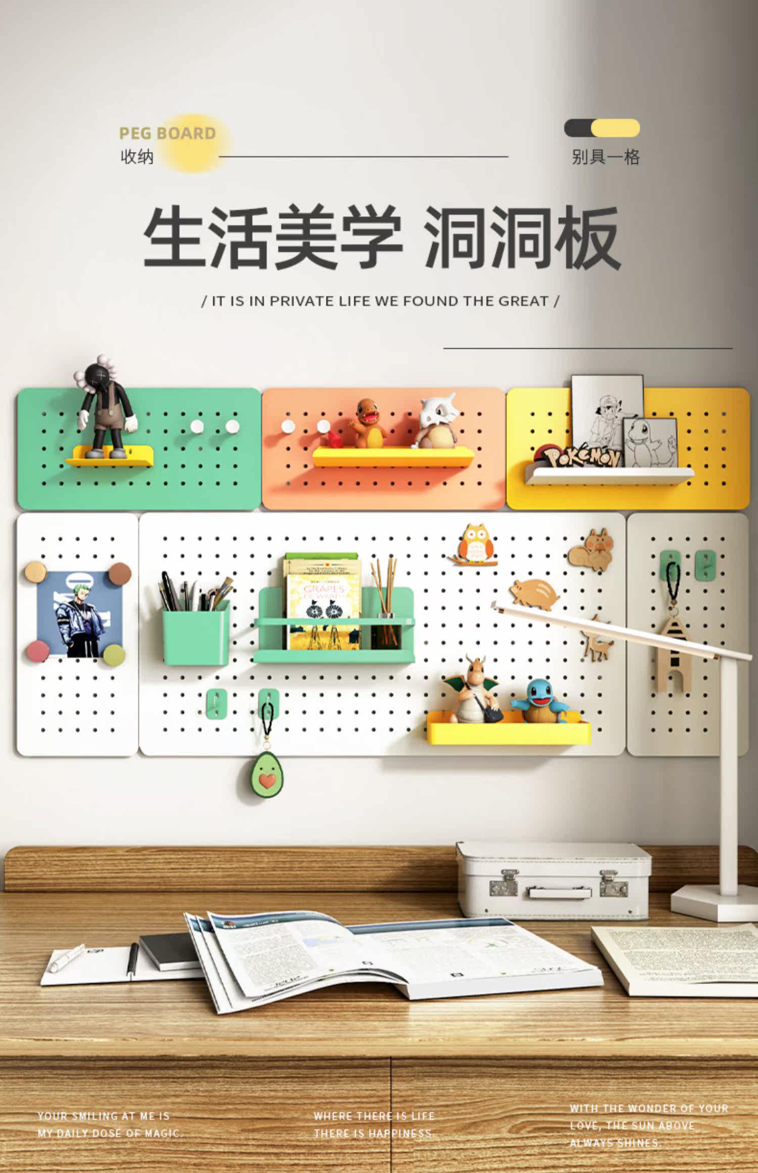 Аксессуары для перфорированной доски, декоративный крючок «сделай сам», полка с круглым отверстием, настенная полка без дырокола, держатель для ручек, магнитная наклейка