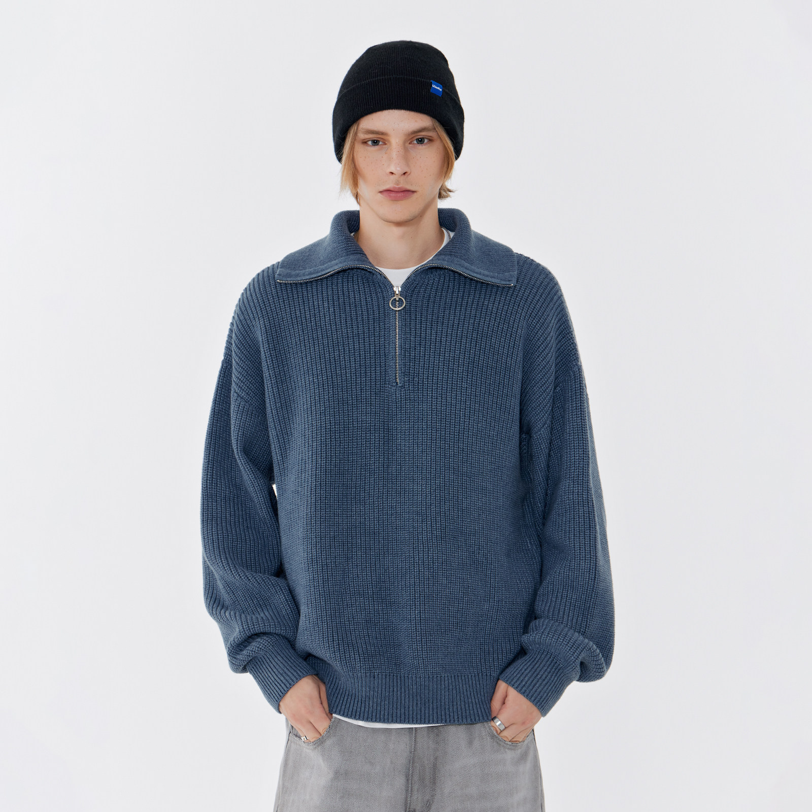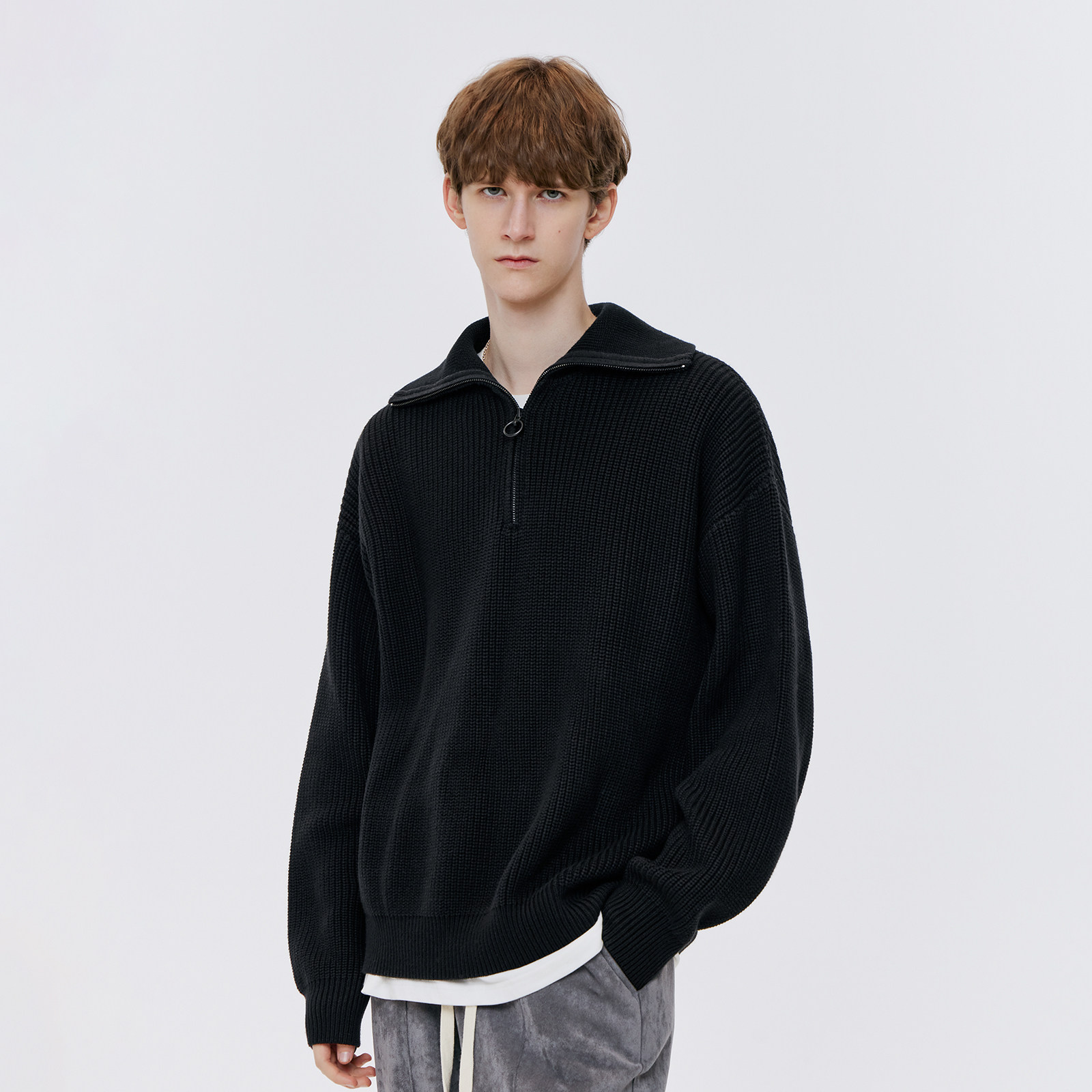 Демисезонный осенний свитер, ретро трикотажный кардиган с молнией, оверсайз, на молнии
