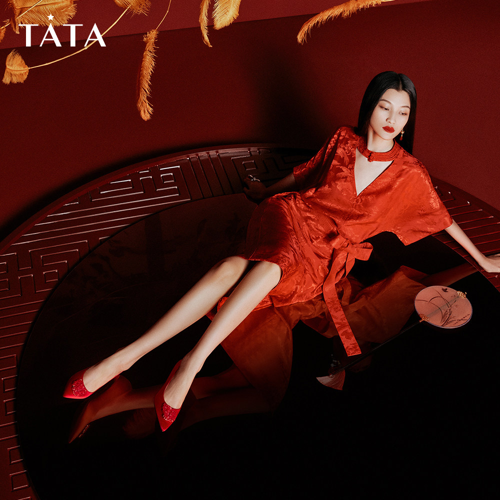 [Fengqi Wutong] Tata, ее ретро -красная свадебная обувь женская женская туфли с высокой высокой