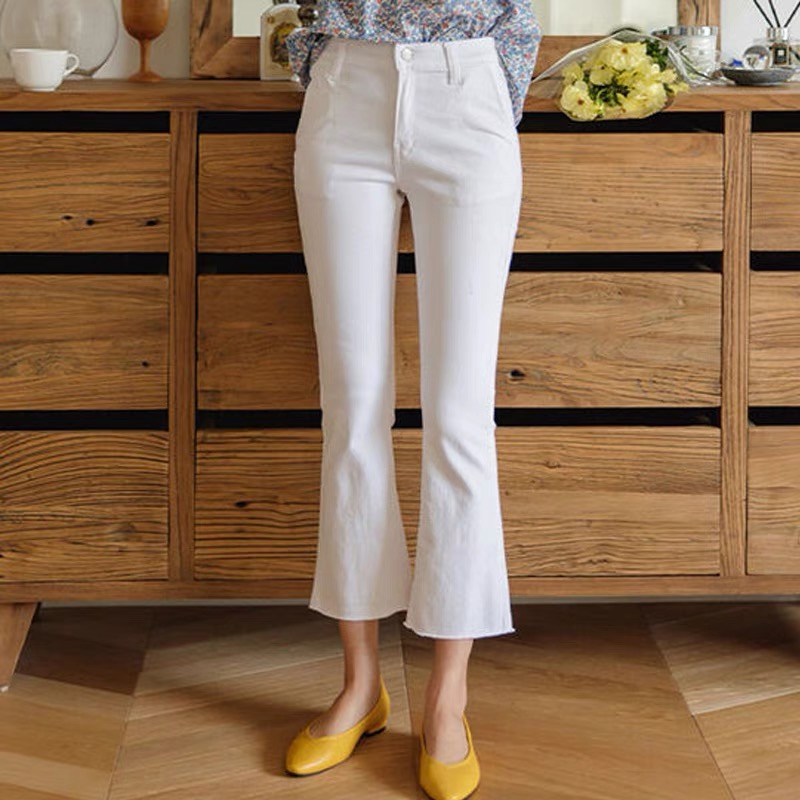 Белые осенние джинсы, штаны, штаны-клёш, новая коллекция, подходит для подростков