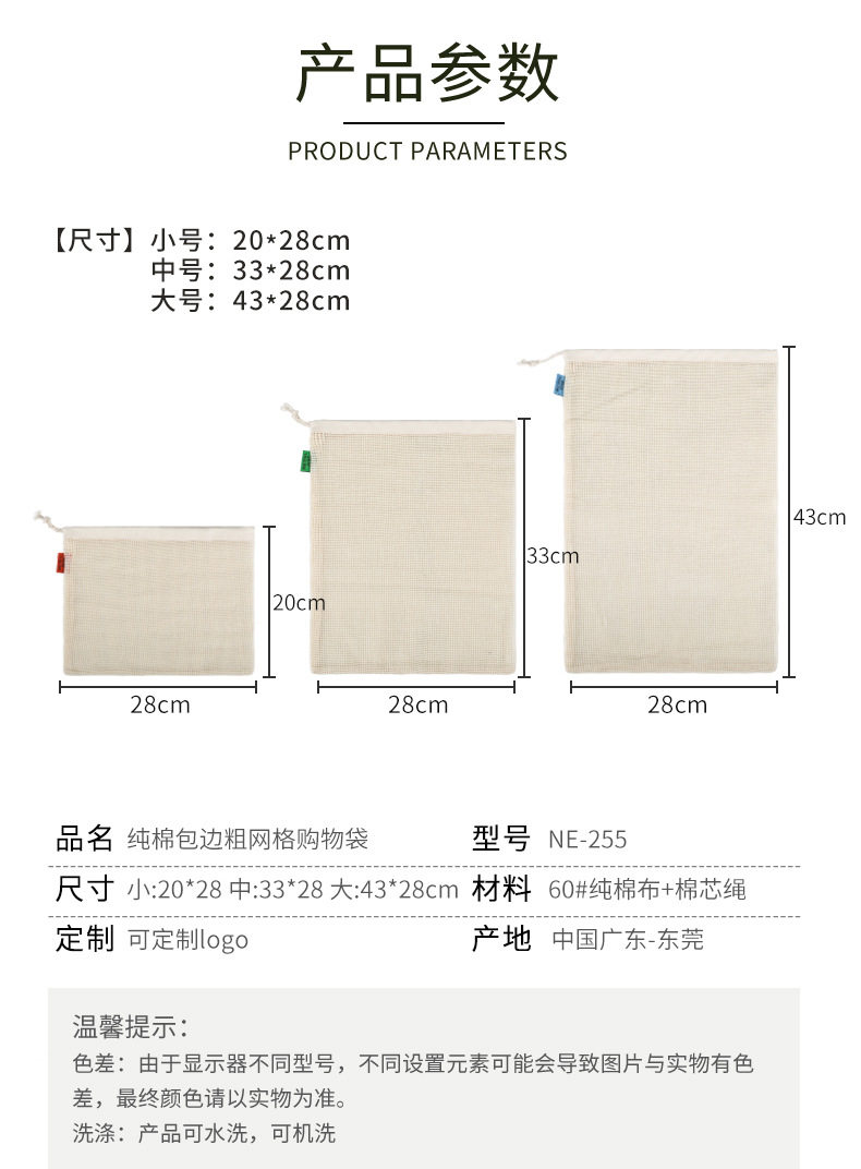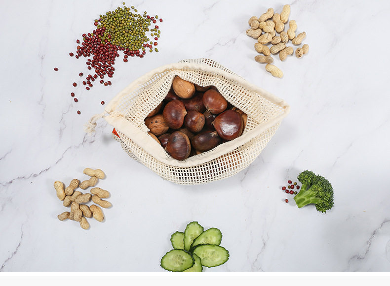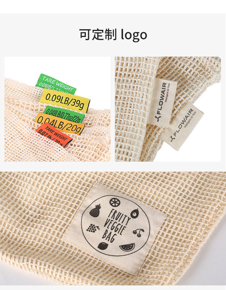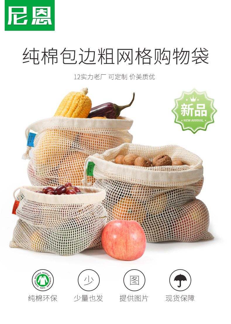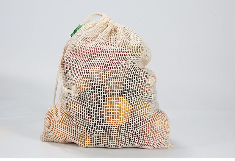 Хлопковая сетчатая сумка, лента, экологичный шоппер, натуральный мешочек на шнурке