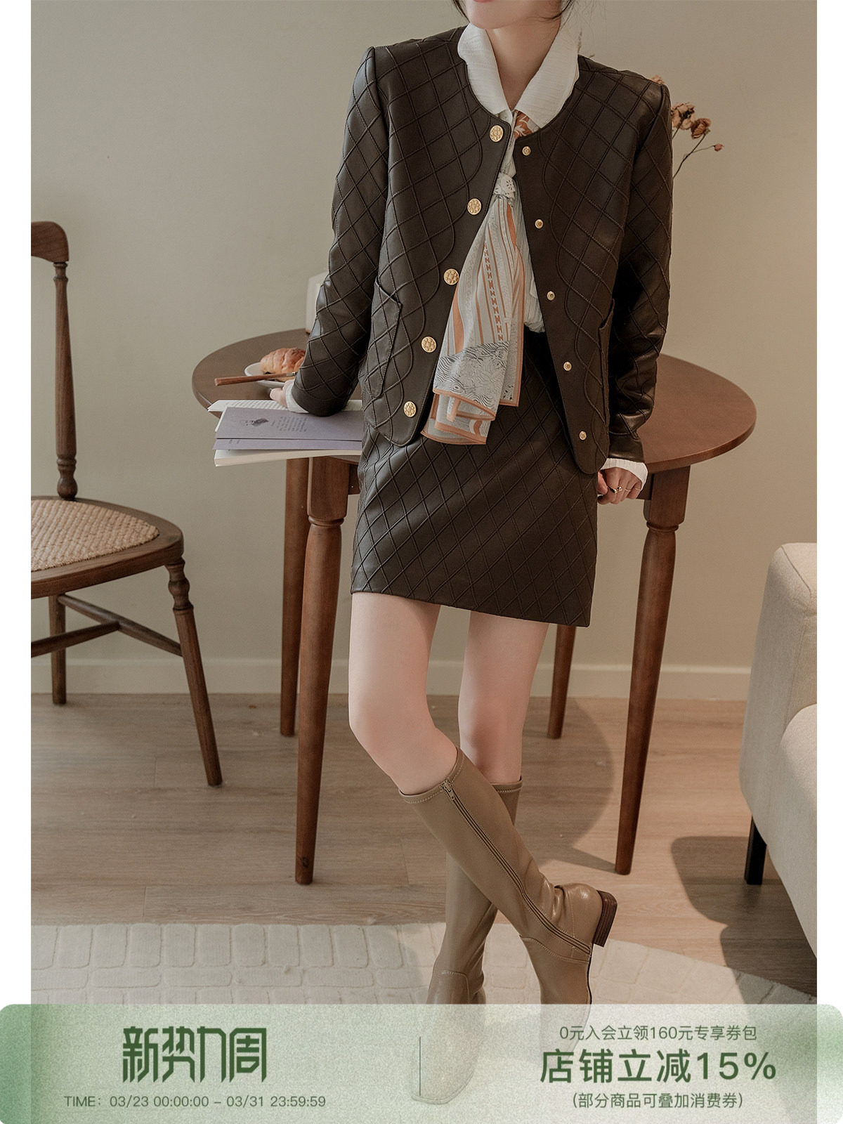 | Классификация цветов: | Коричневый пальто, Коричневая киао, Черная куртка, Черная юбка |