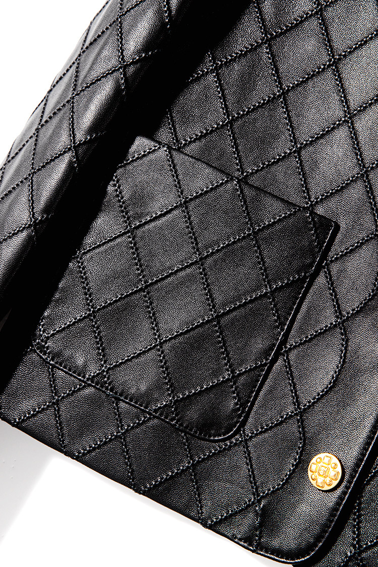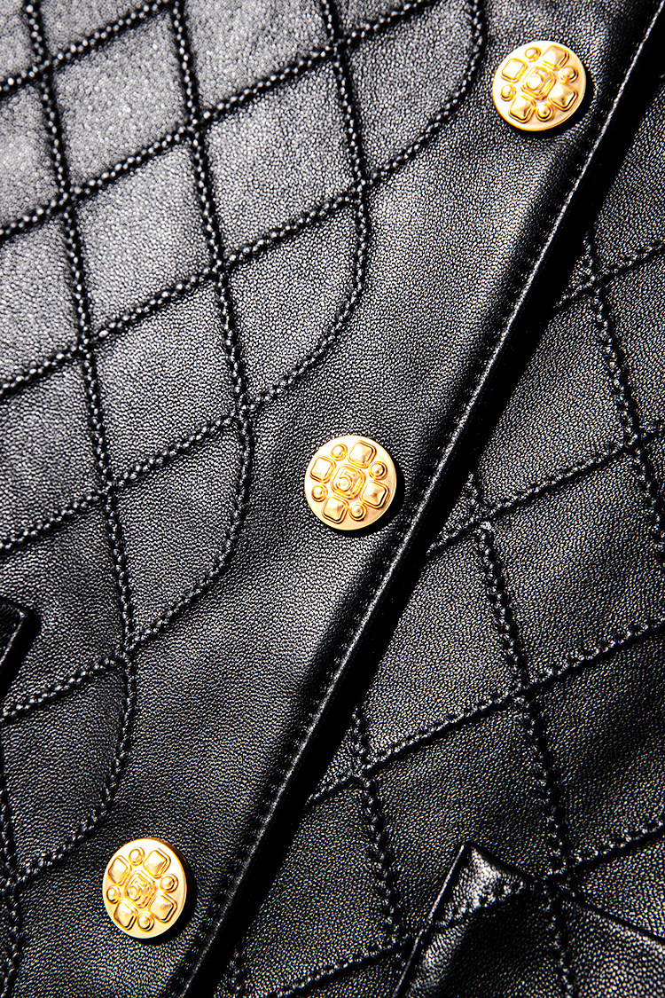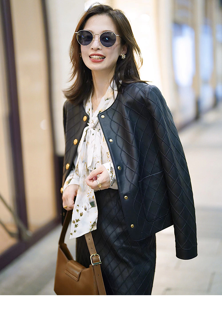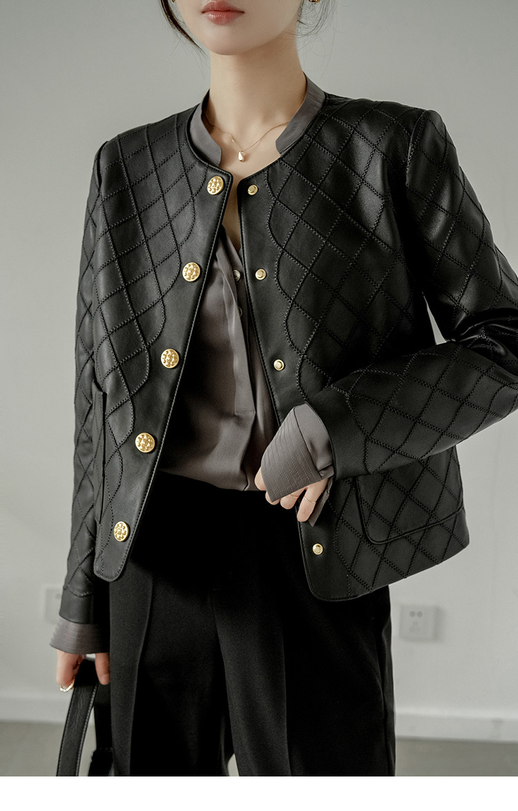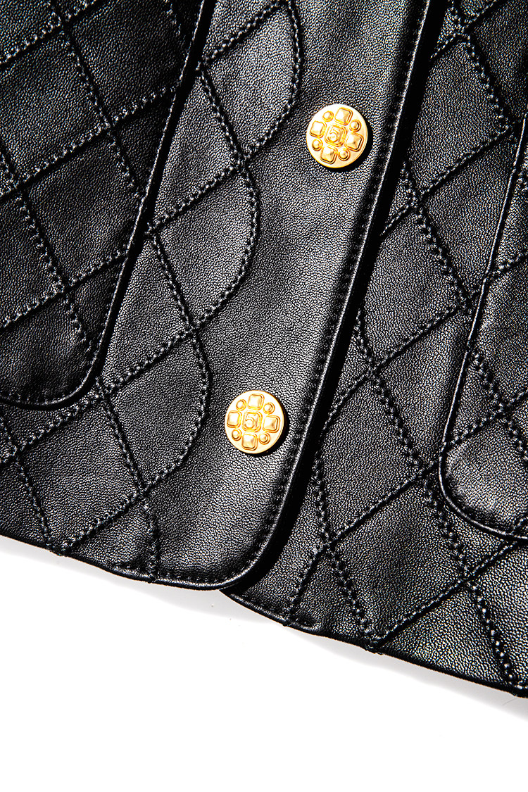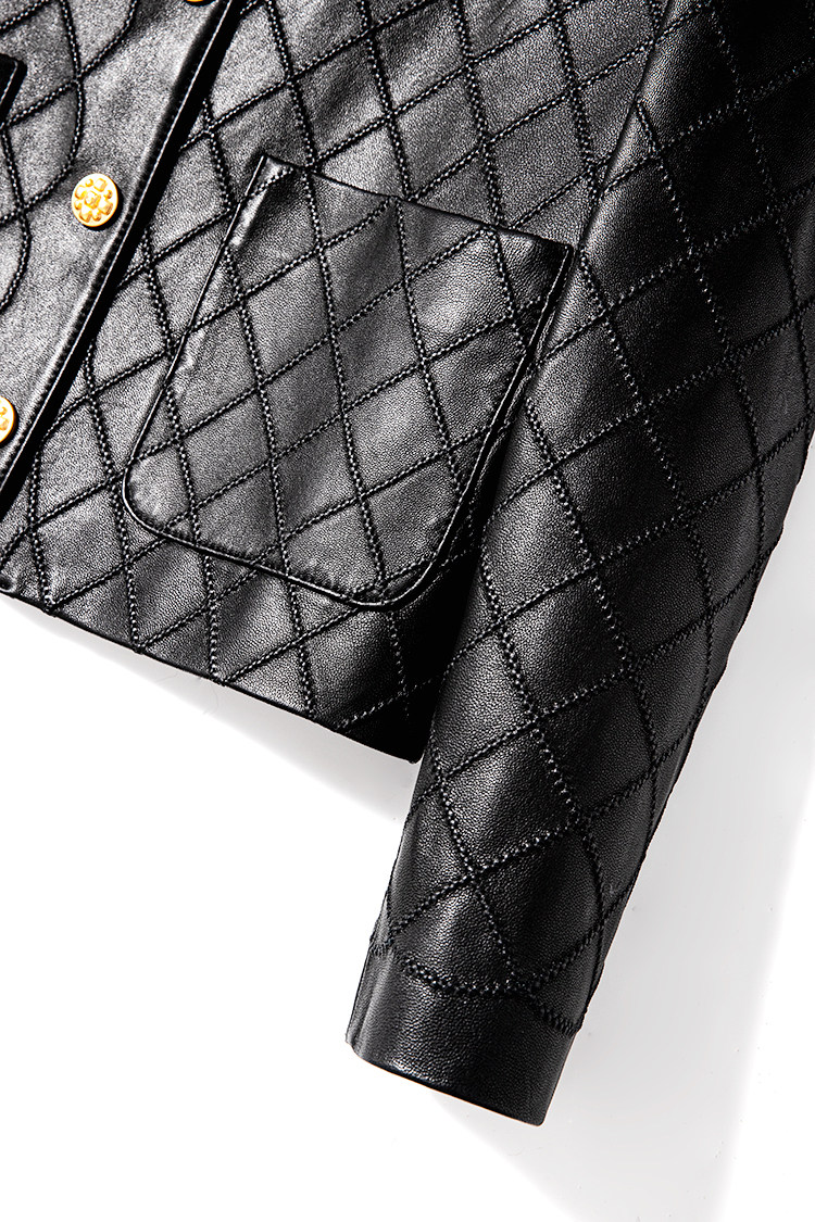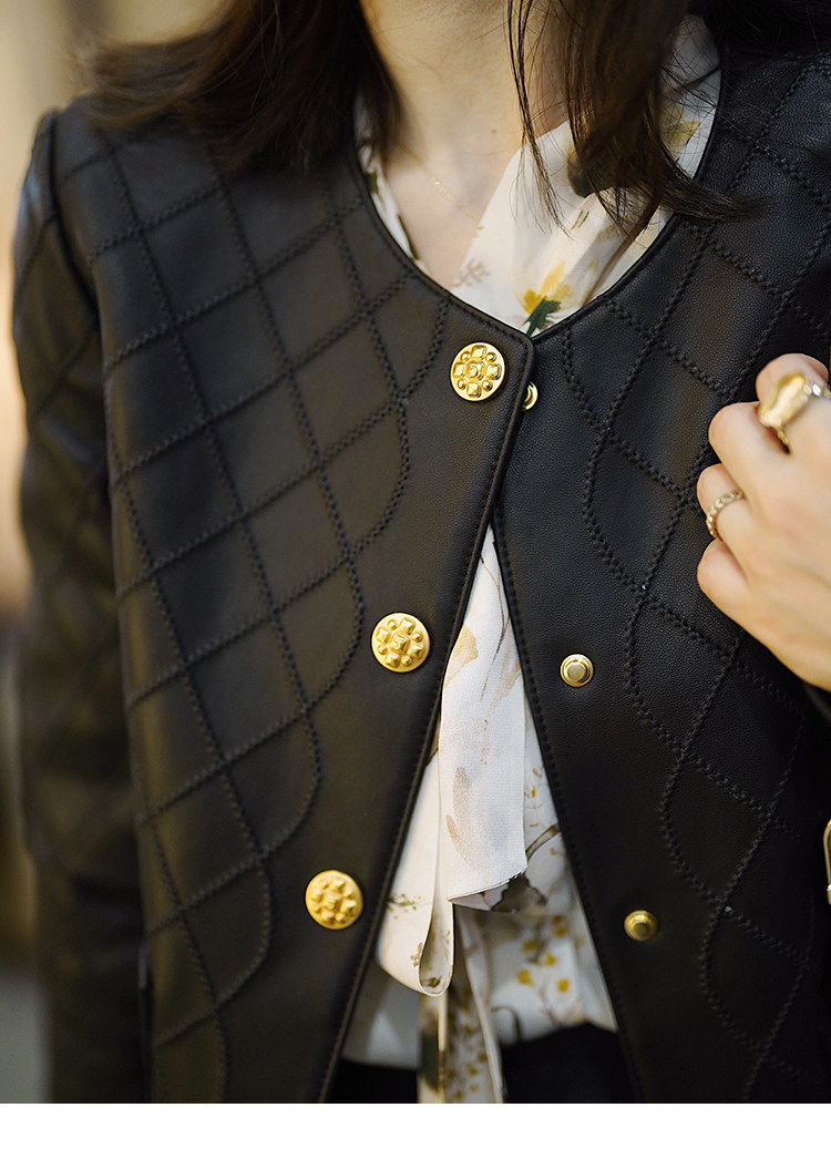 Ароматная кожаная куртка с ромбами Pumpkin Valley ~ дизайн ранней весны 100, черное полупальто из овчины для женщин PY0267
