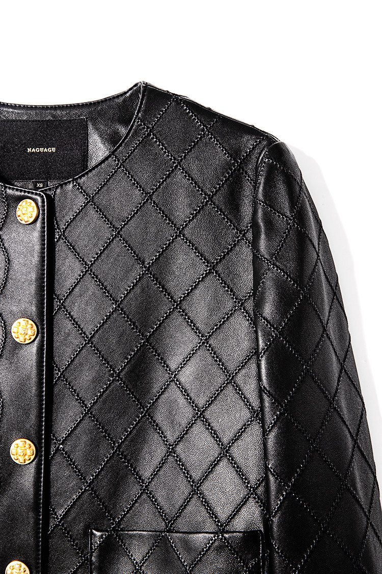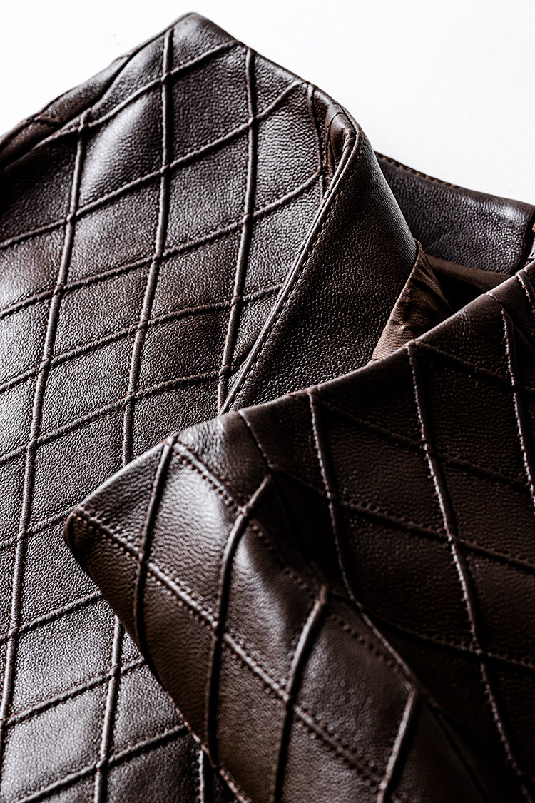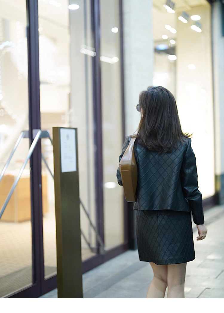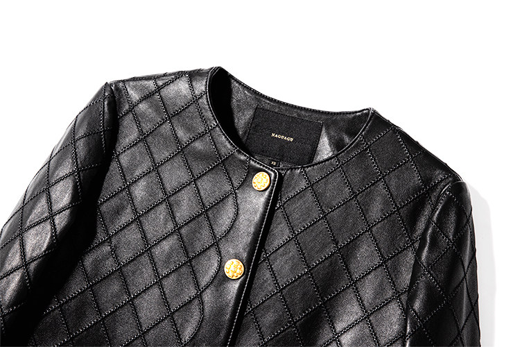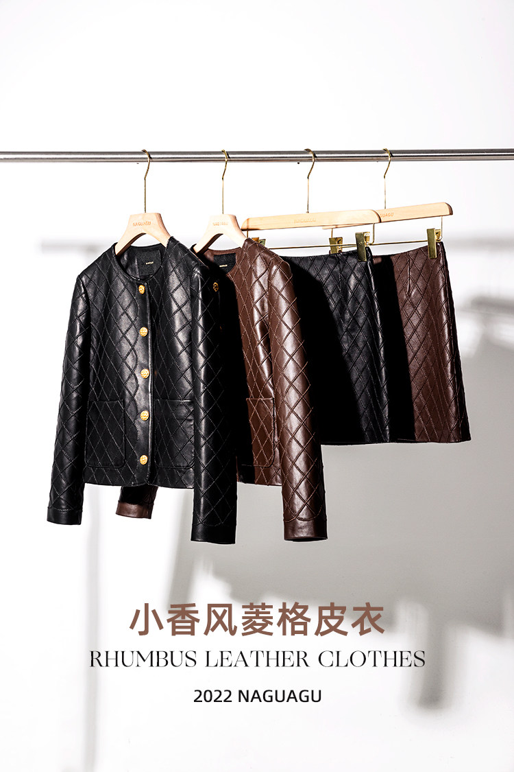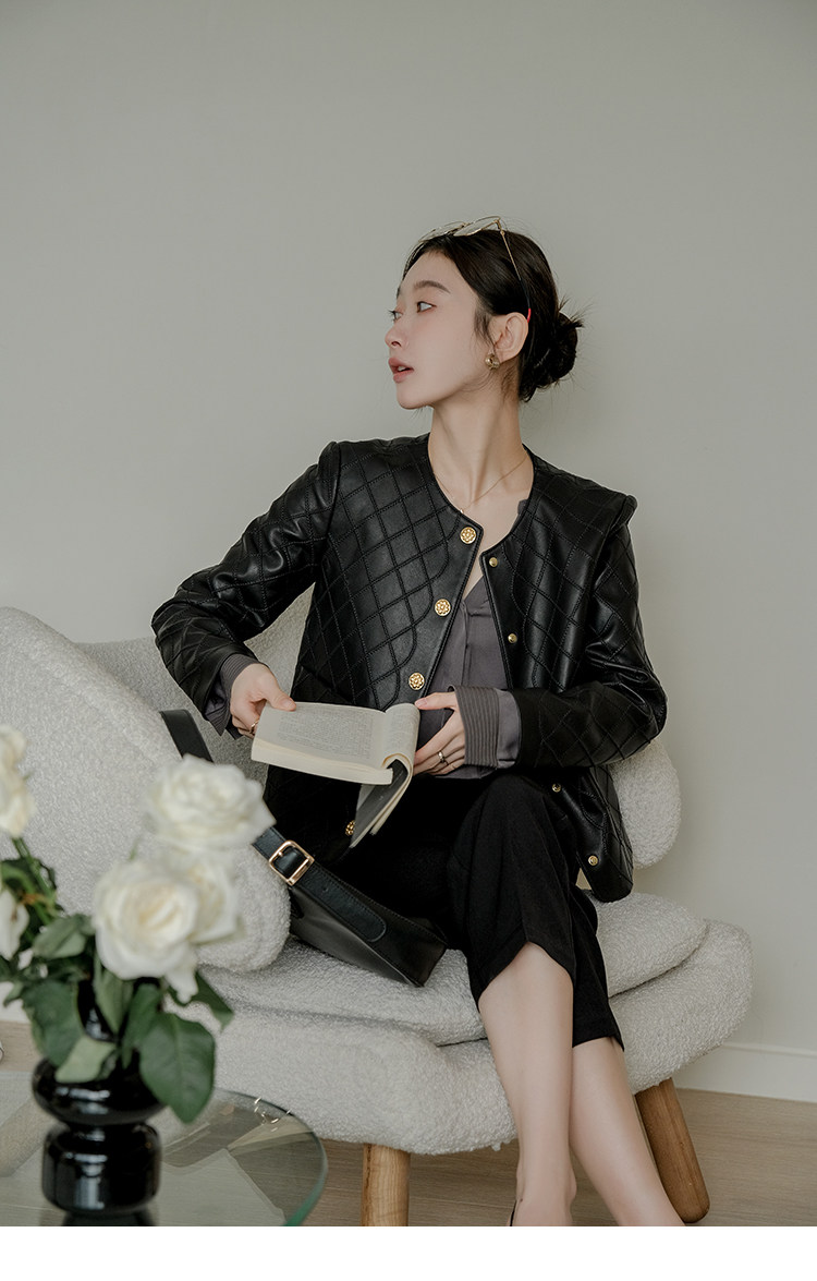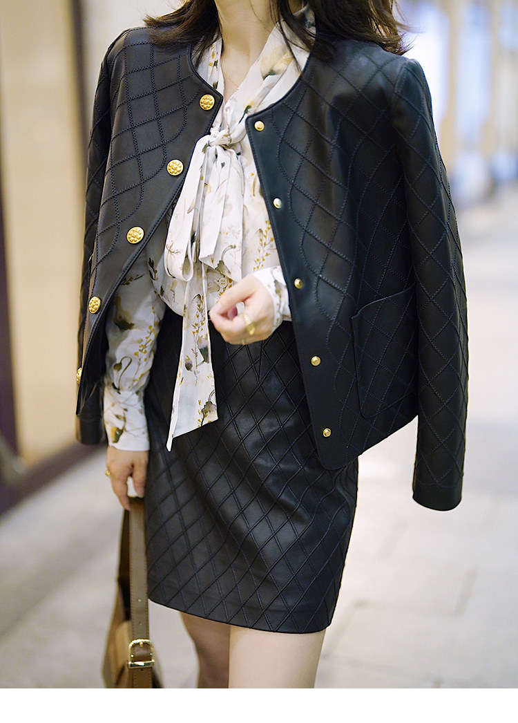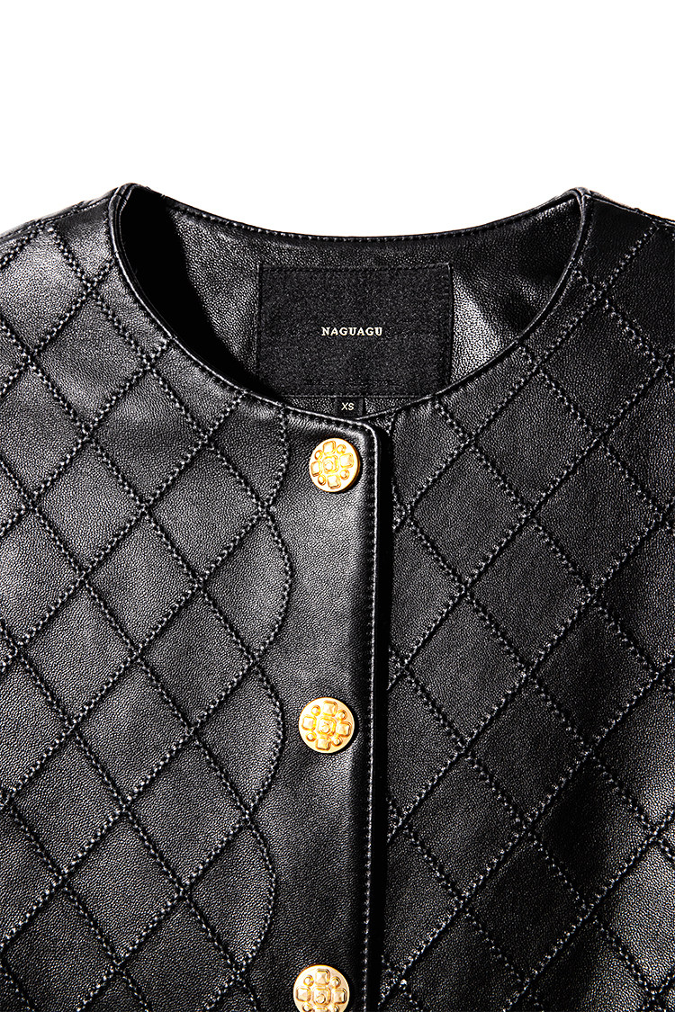 Ароматная кожаная куртка с ромбами Pumpkin Valley ~ дизайн ранней весны 100, черное полупальто из овчины для женщин PY0267