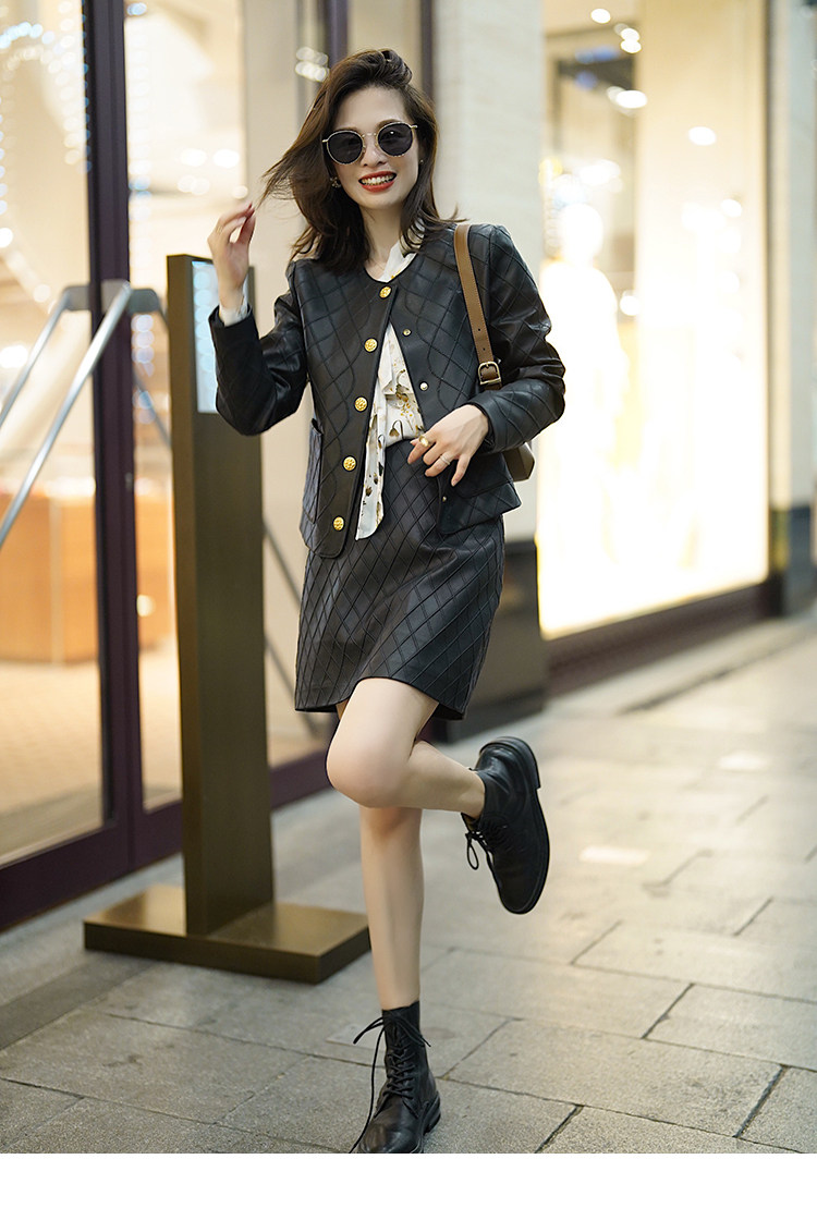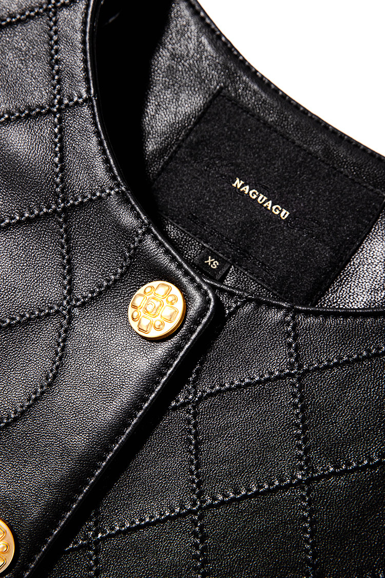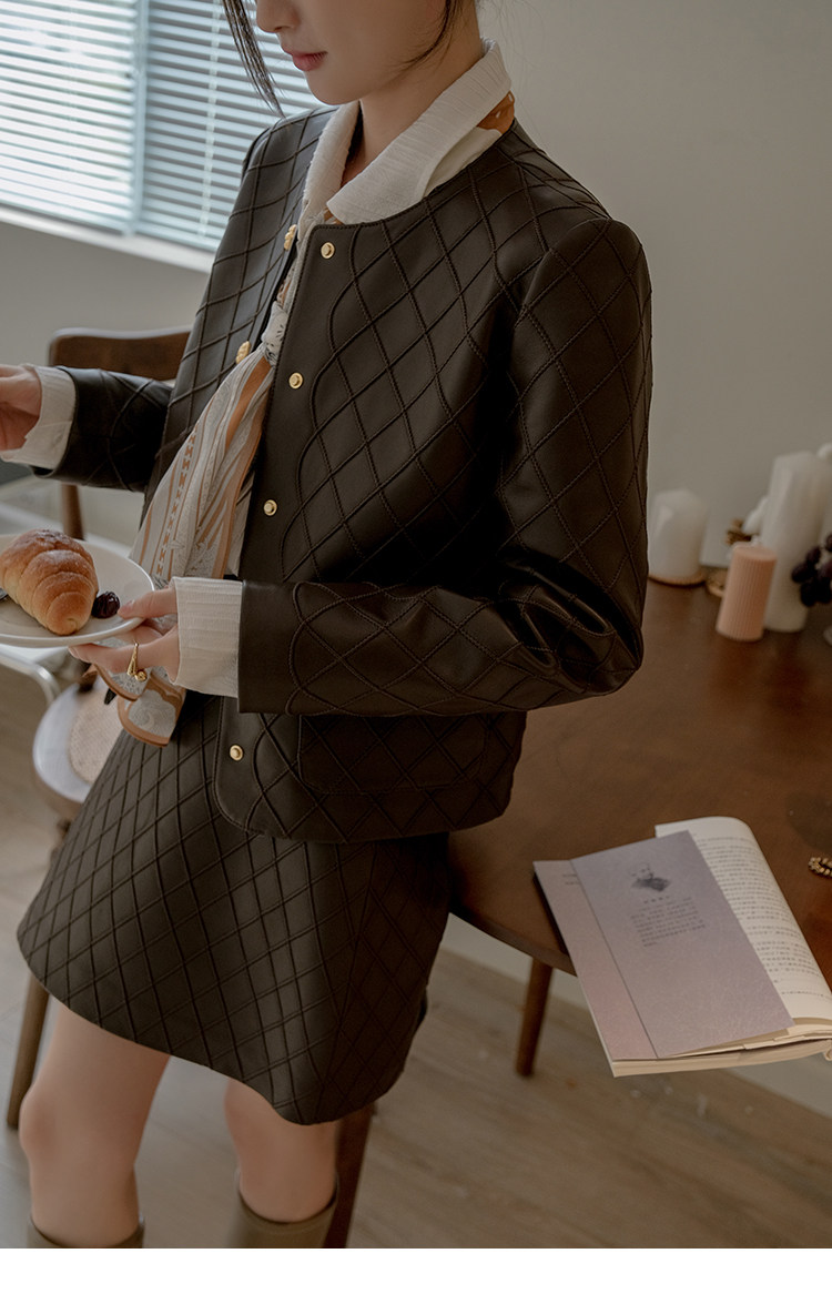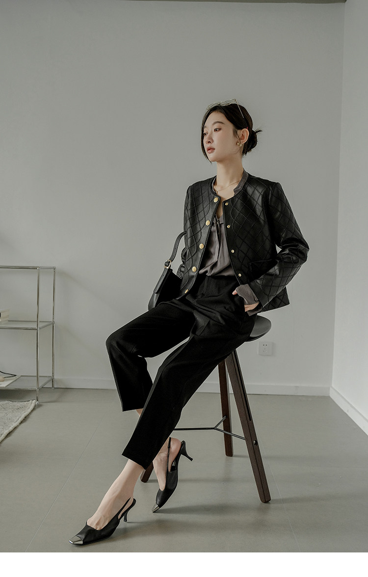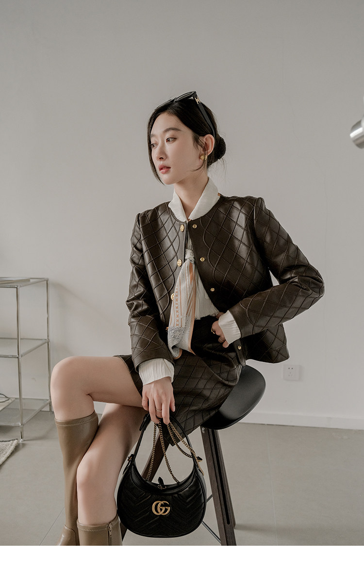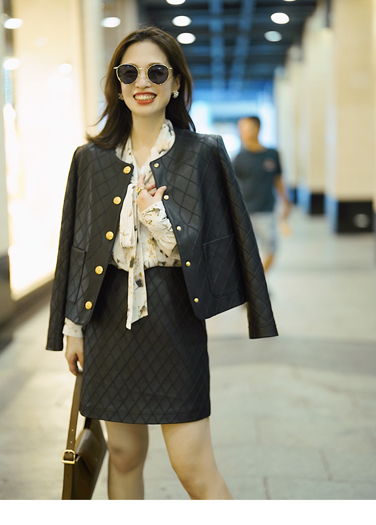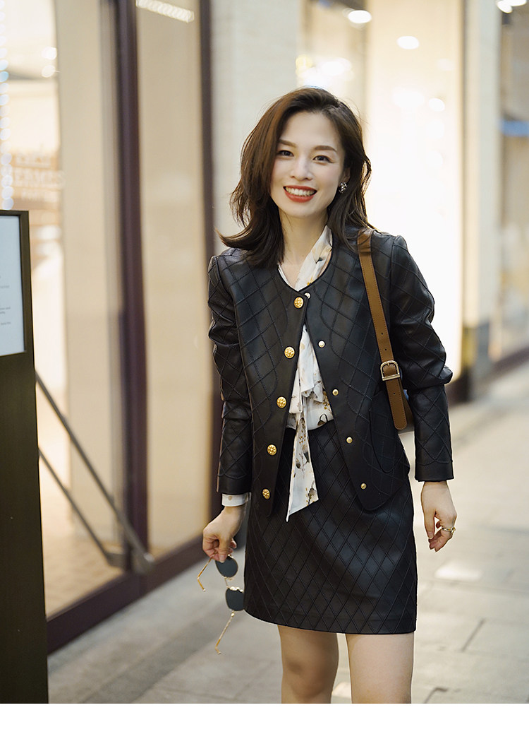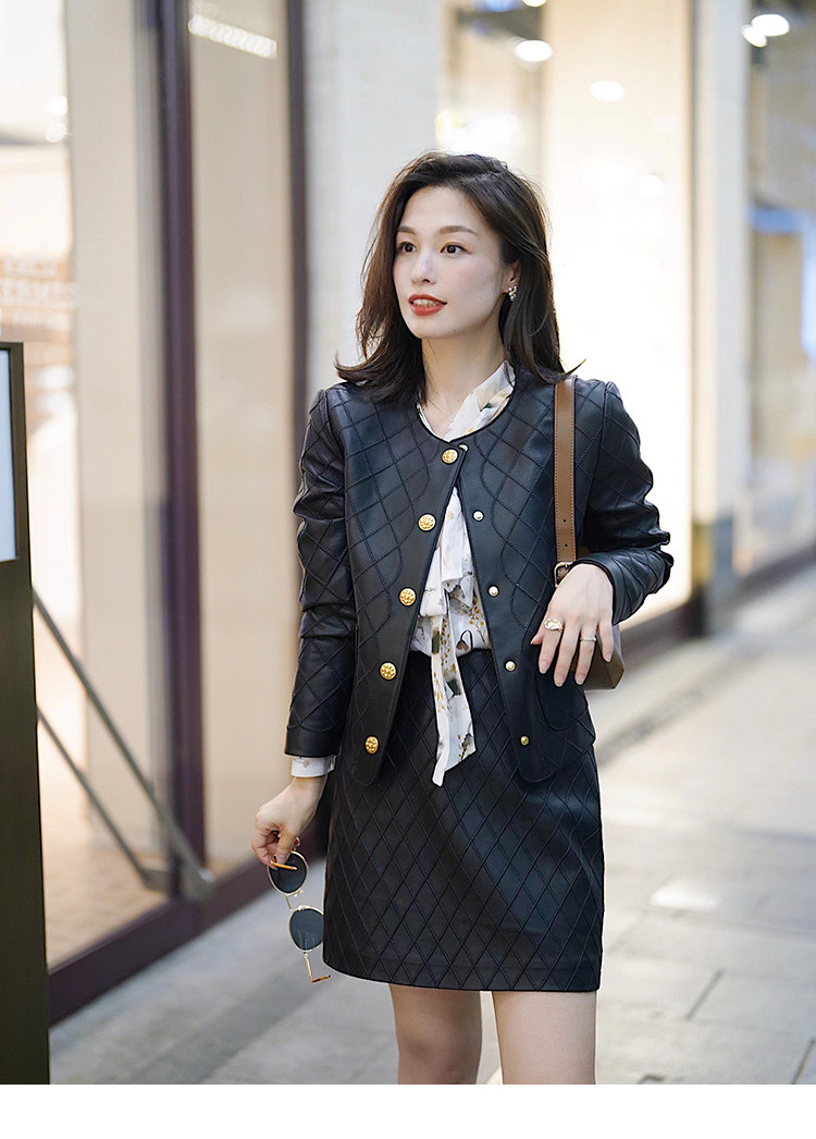 Ароматная кожаная куртка с ромбами Pumpkin Valley ~ дизайн ранней весны 100, черное полупальто из овчины для женщин PY0267