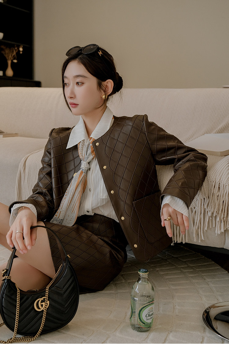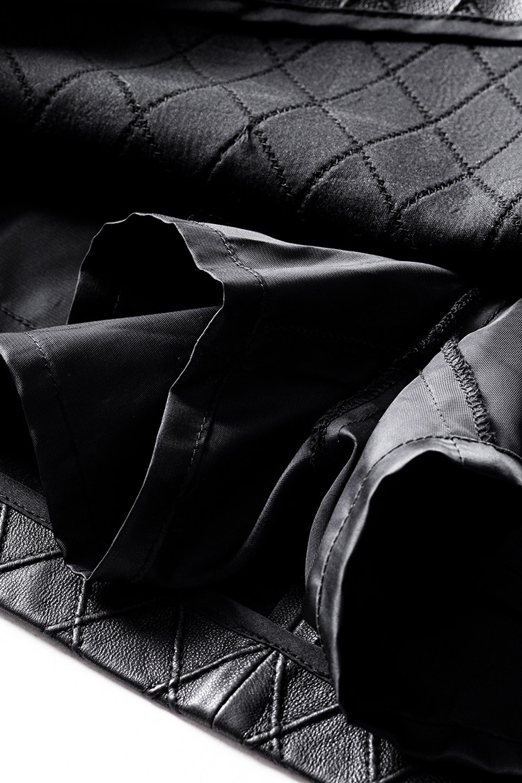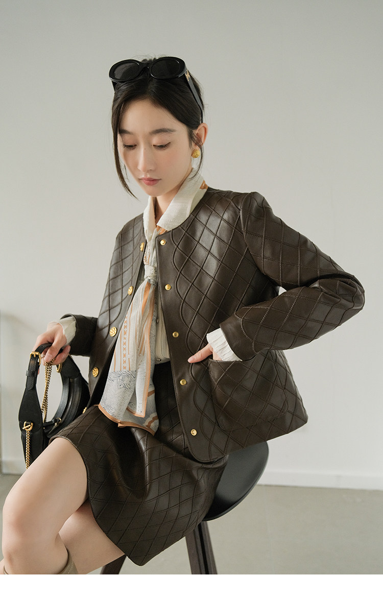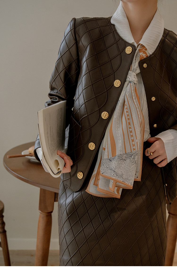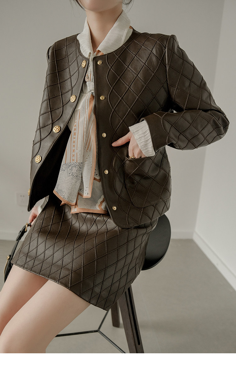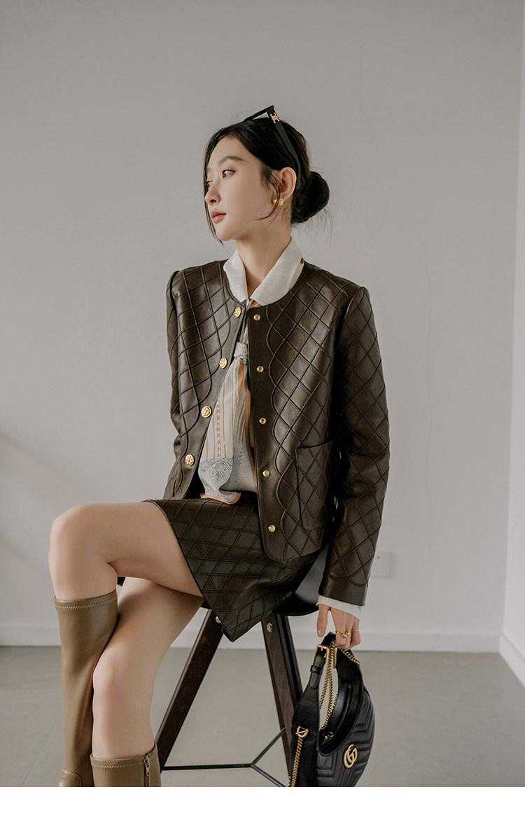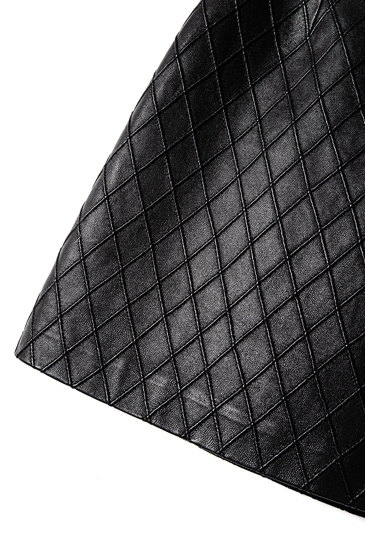 Ароматная кожаная куртка с ромбами Pumpkin Valley ~ дизайн ранней весны 100, черное полупальто из овчины для женщин PY0267