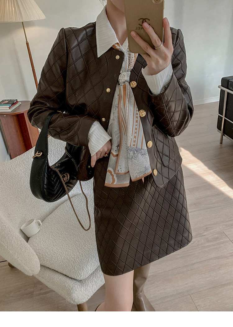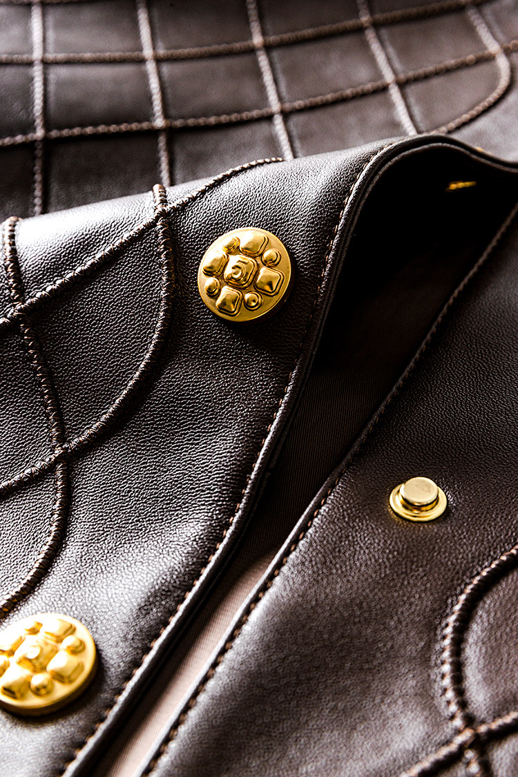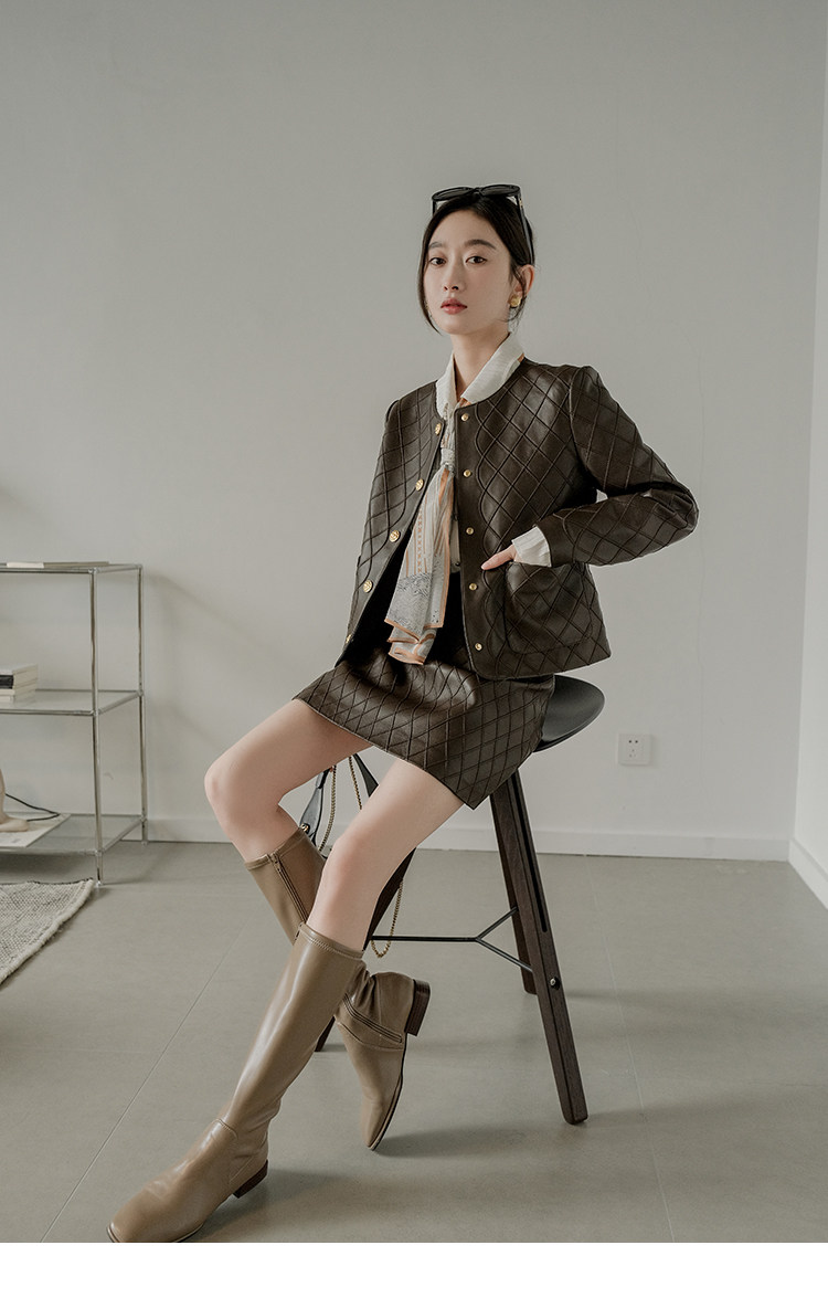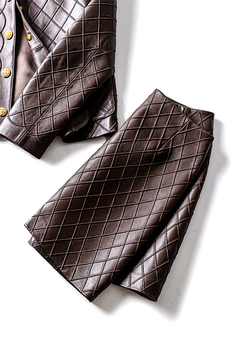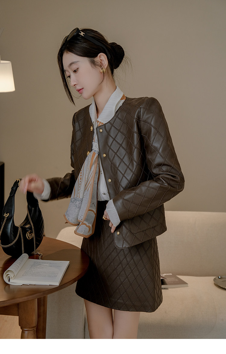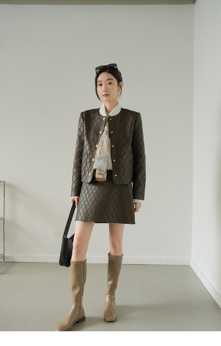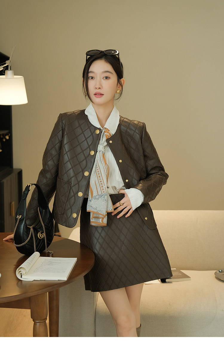 Ароматная кожаная куртка с ромбами Pumpkin Valley ~ дизайн ранней весны 100, черное полупальто из овчины для женщин PY0267