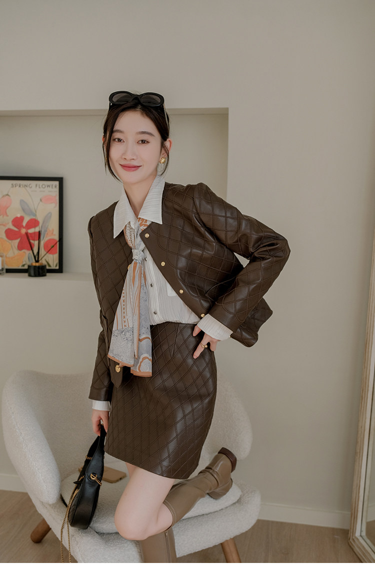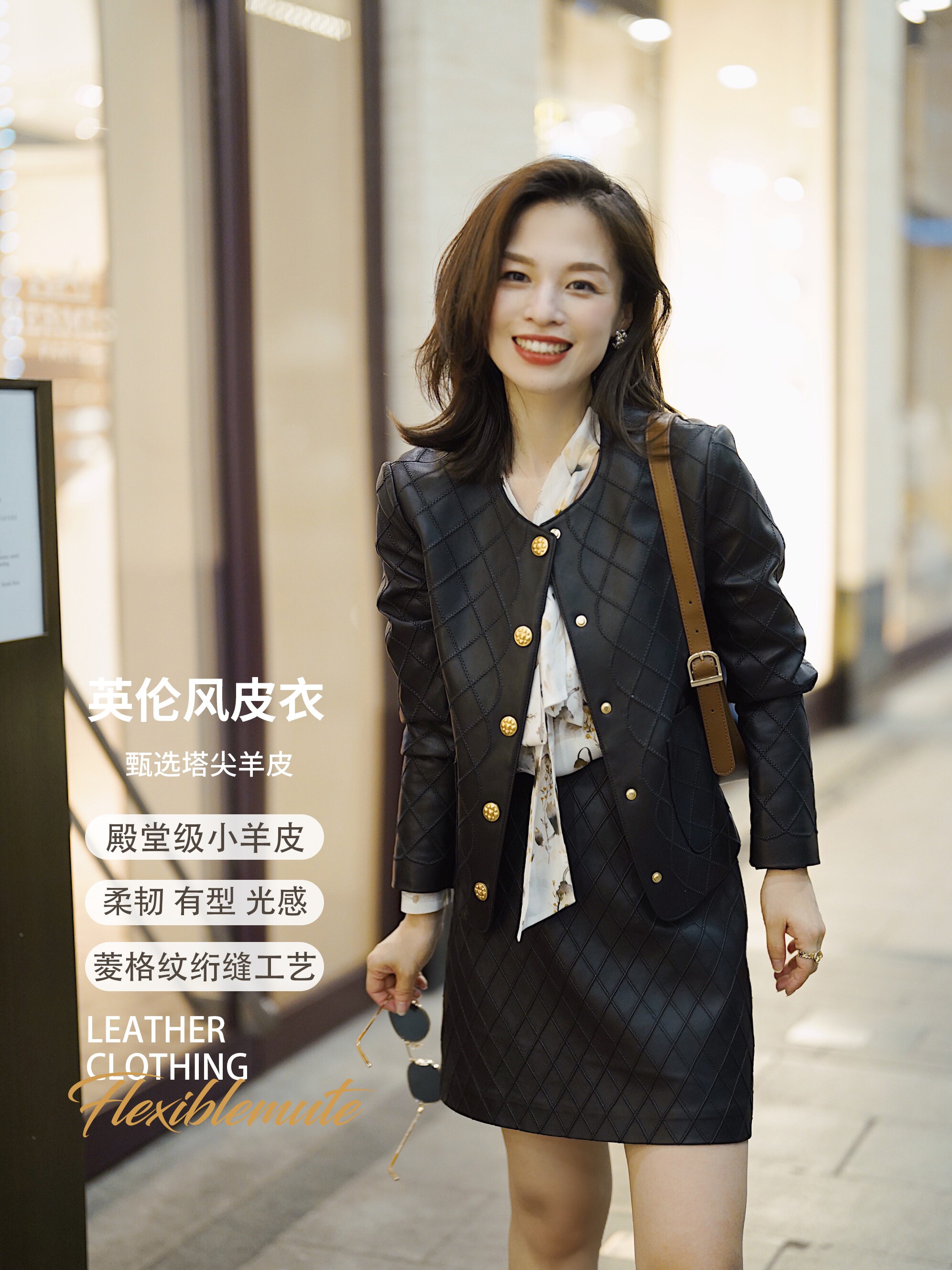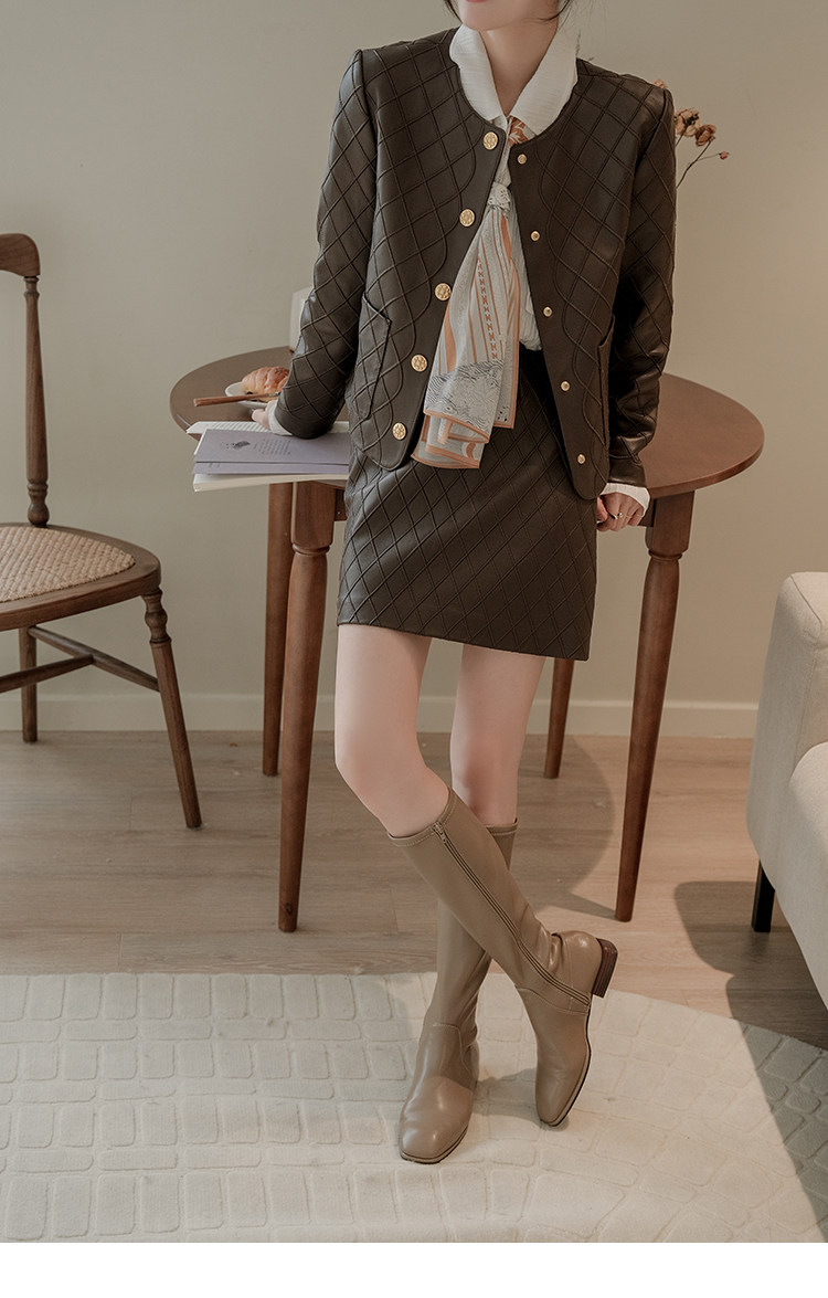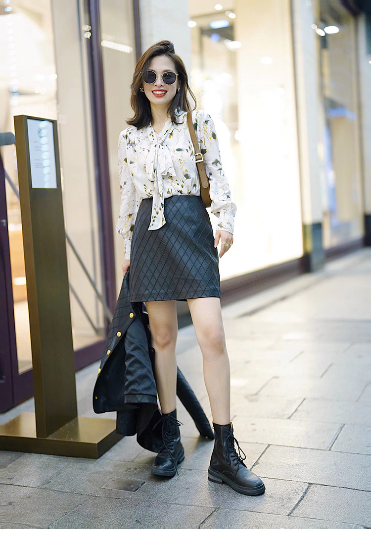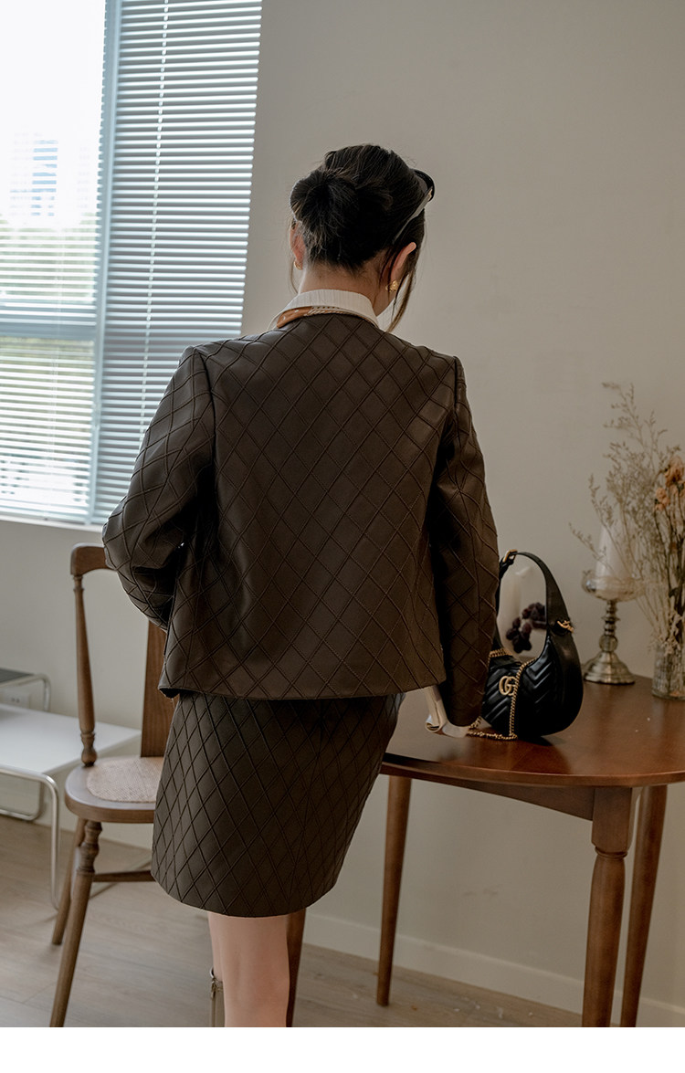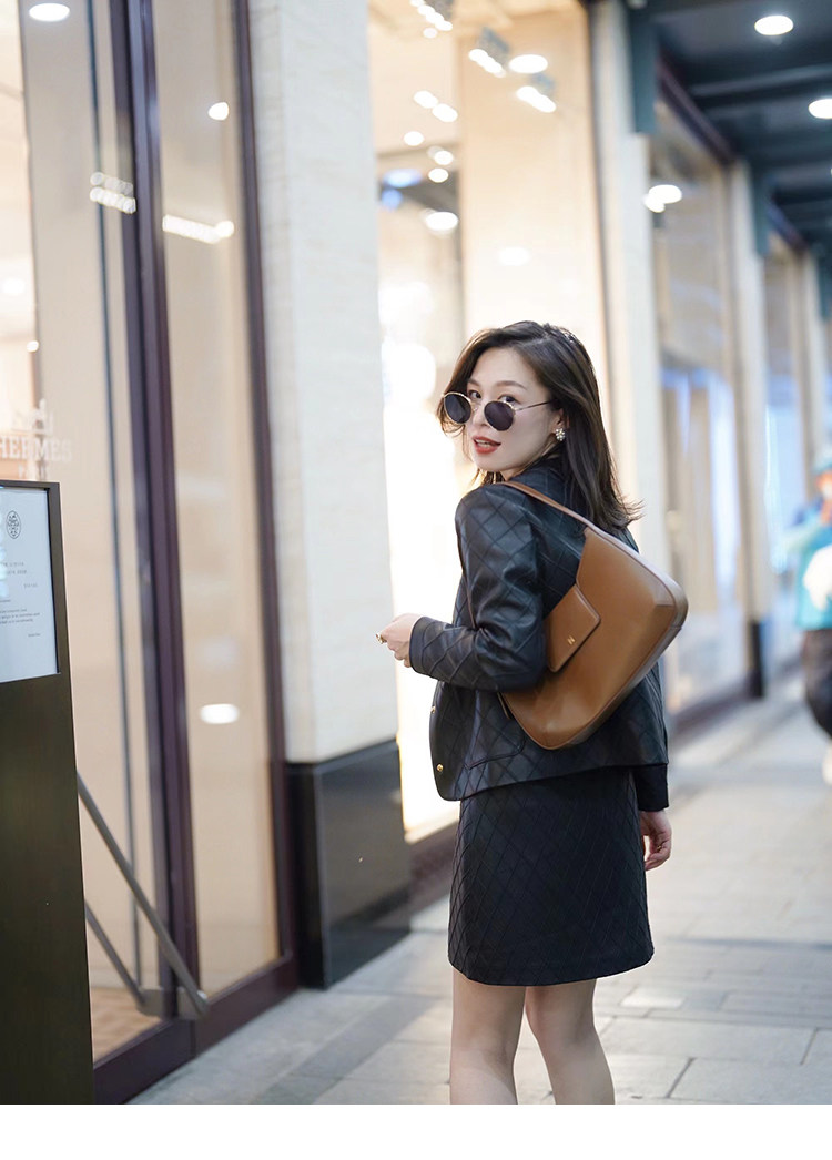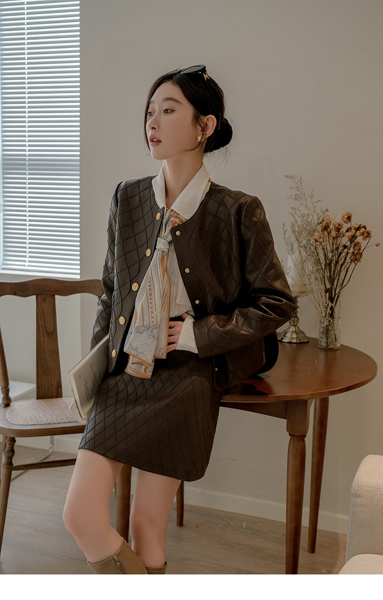 Ароматная кожаная куртка с ромбами Pumpkin Valley ~ дизайн ранней весны 100, черное полупальто из овчины для женщин PY0267