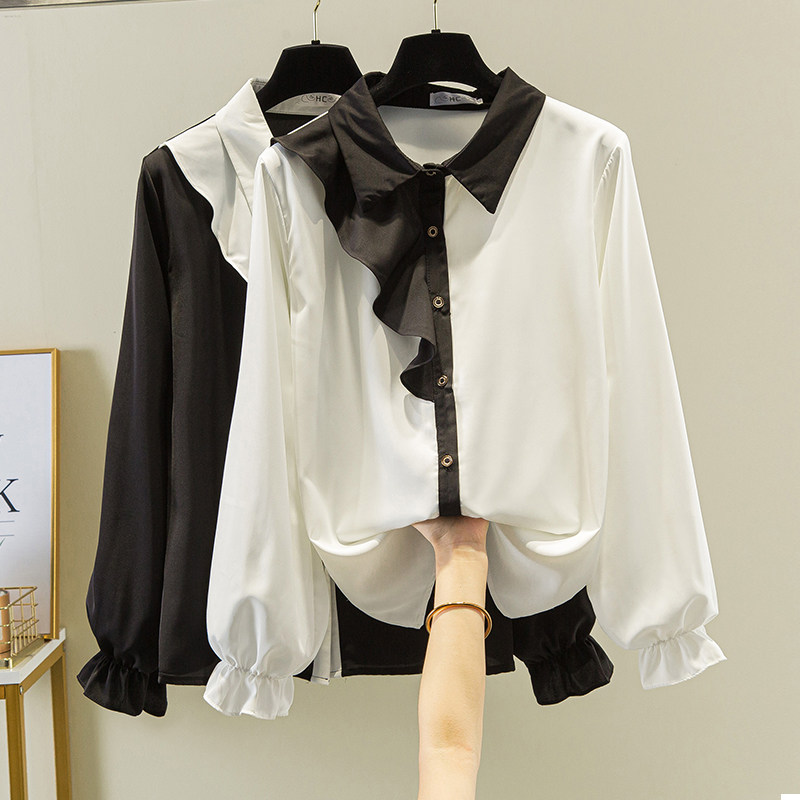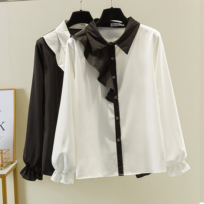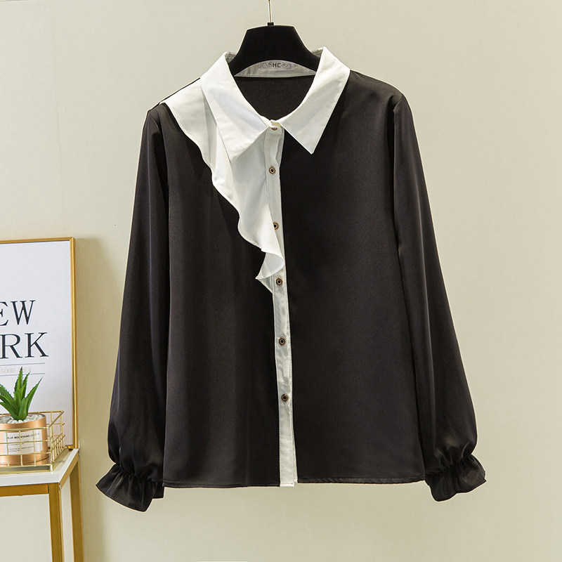Шифоновая рубашка, воротник поло, большой размер, коллекция 2022, осенняя