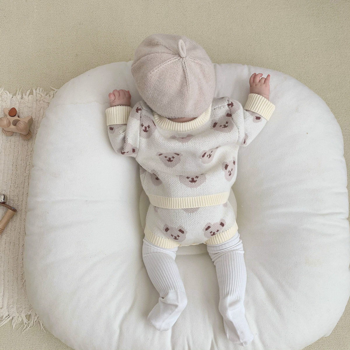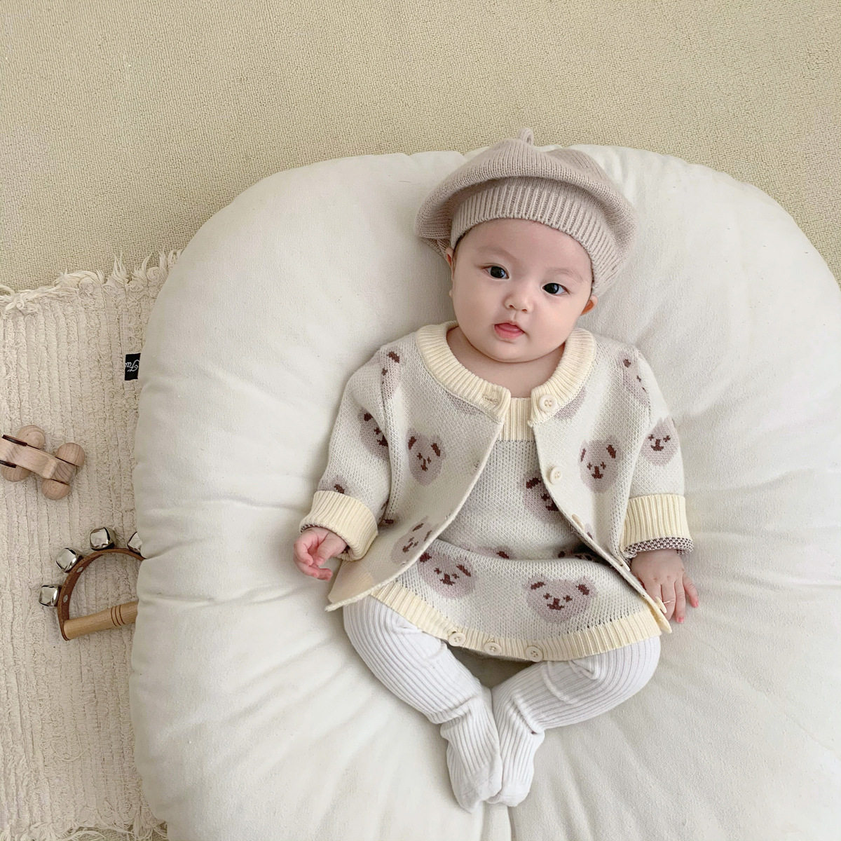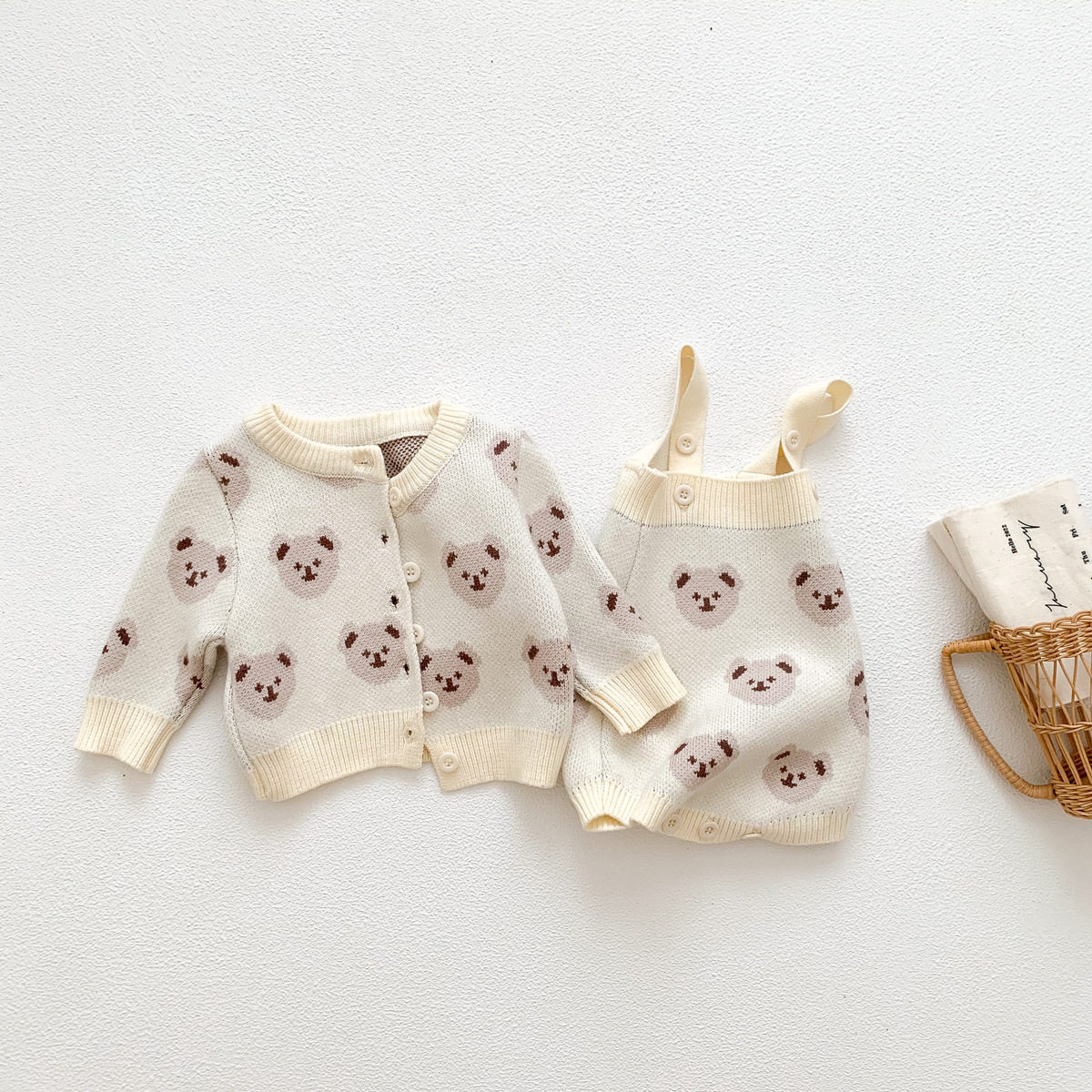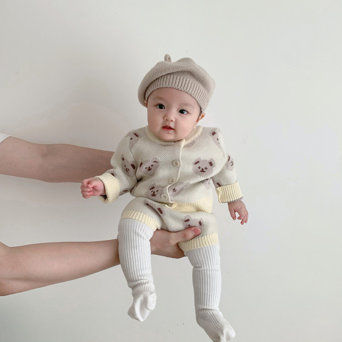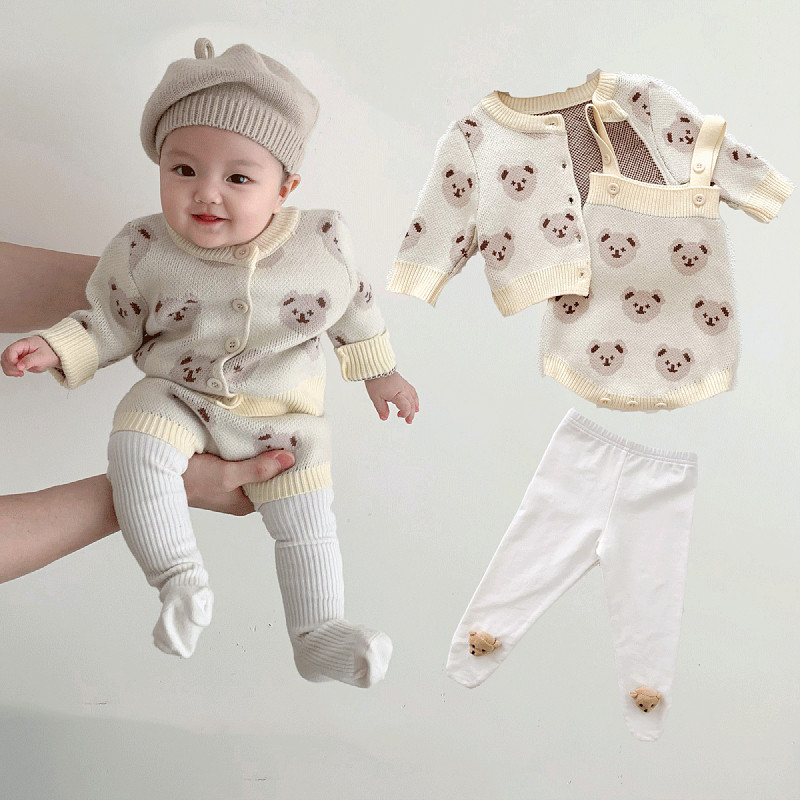 Детская демисезонная трикотажная шерстяная куртка, детское боди, зимний комплект для новорожденных, с медвежатами