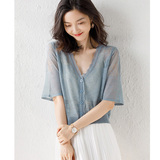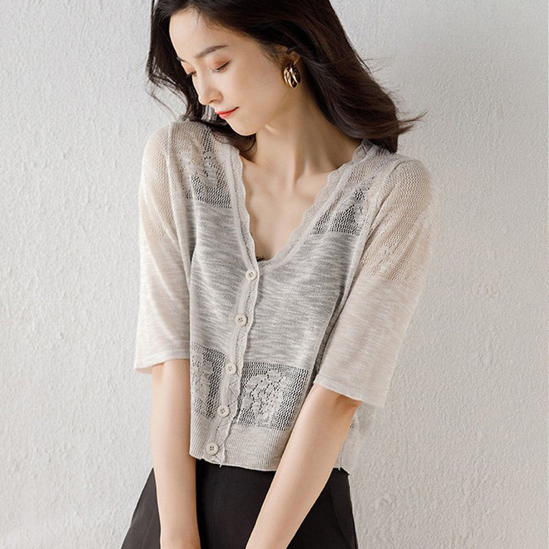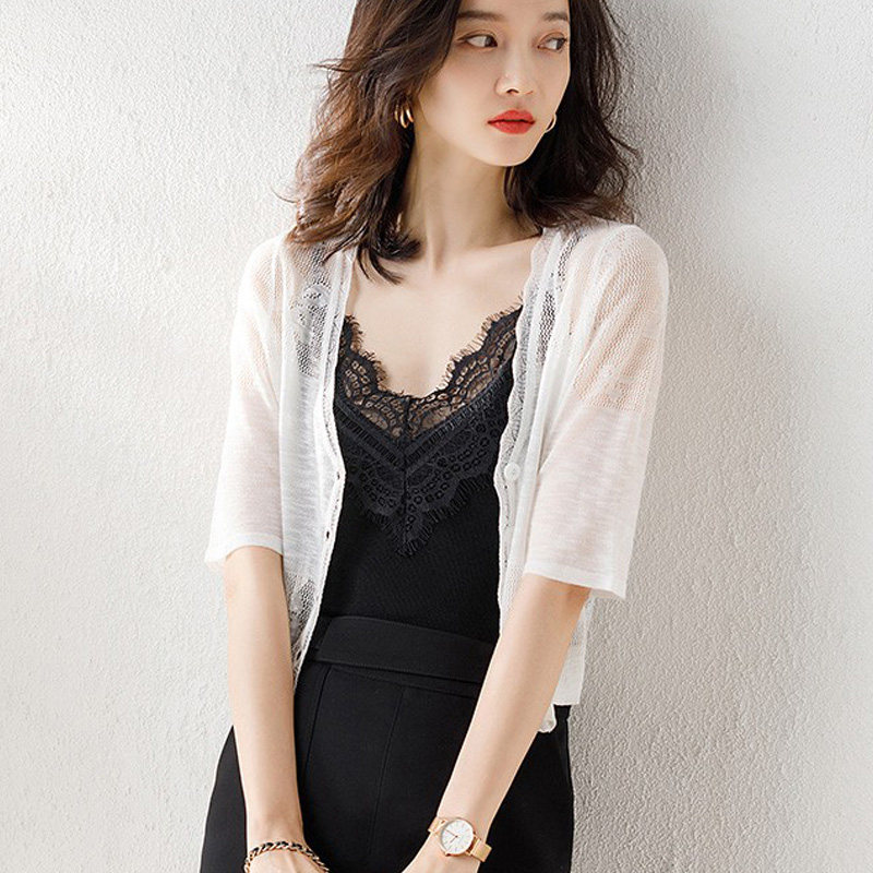 Короткий шелковый летний кардиган, тонкое платье-комбинация, накидка, куртка, одежда для защиты от солнца