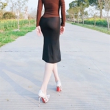 Новые сексуальные женщины Ультра -тонкая ледяная шелковая перспектива домой крутая юбка -юбка с тугим эластичной юбкой