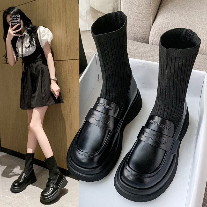 Martens, эластичные черные короткие сапоги на платформе в английском стиле для кожаной обуви, в британском стиле, коллекция 2022