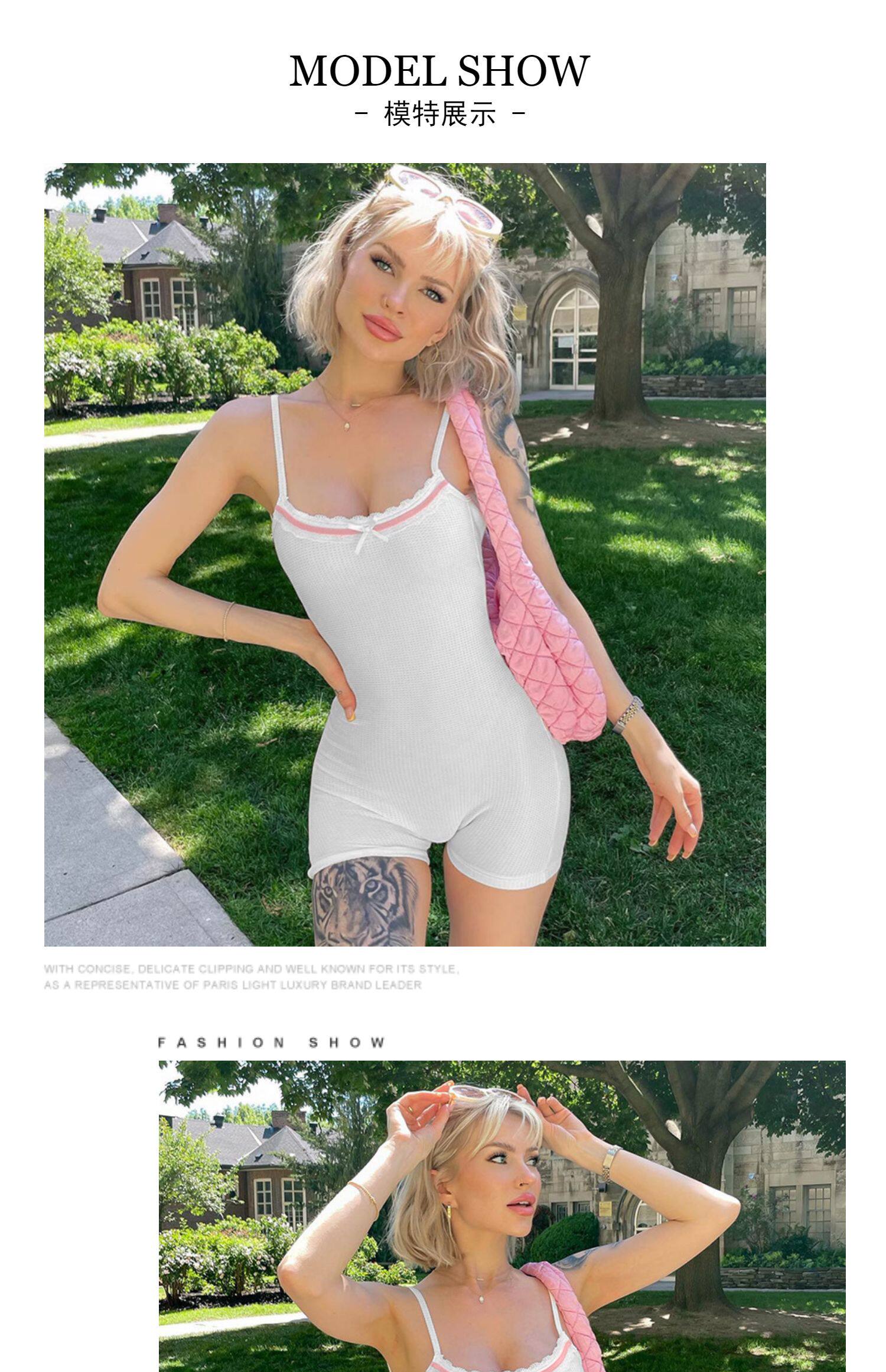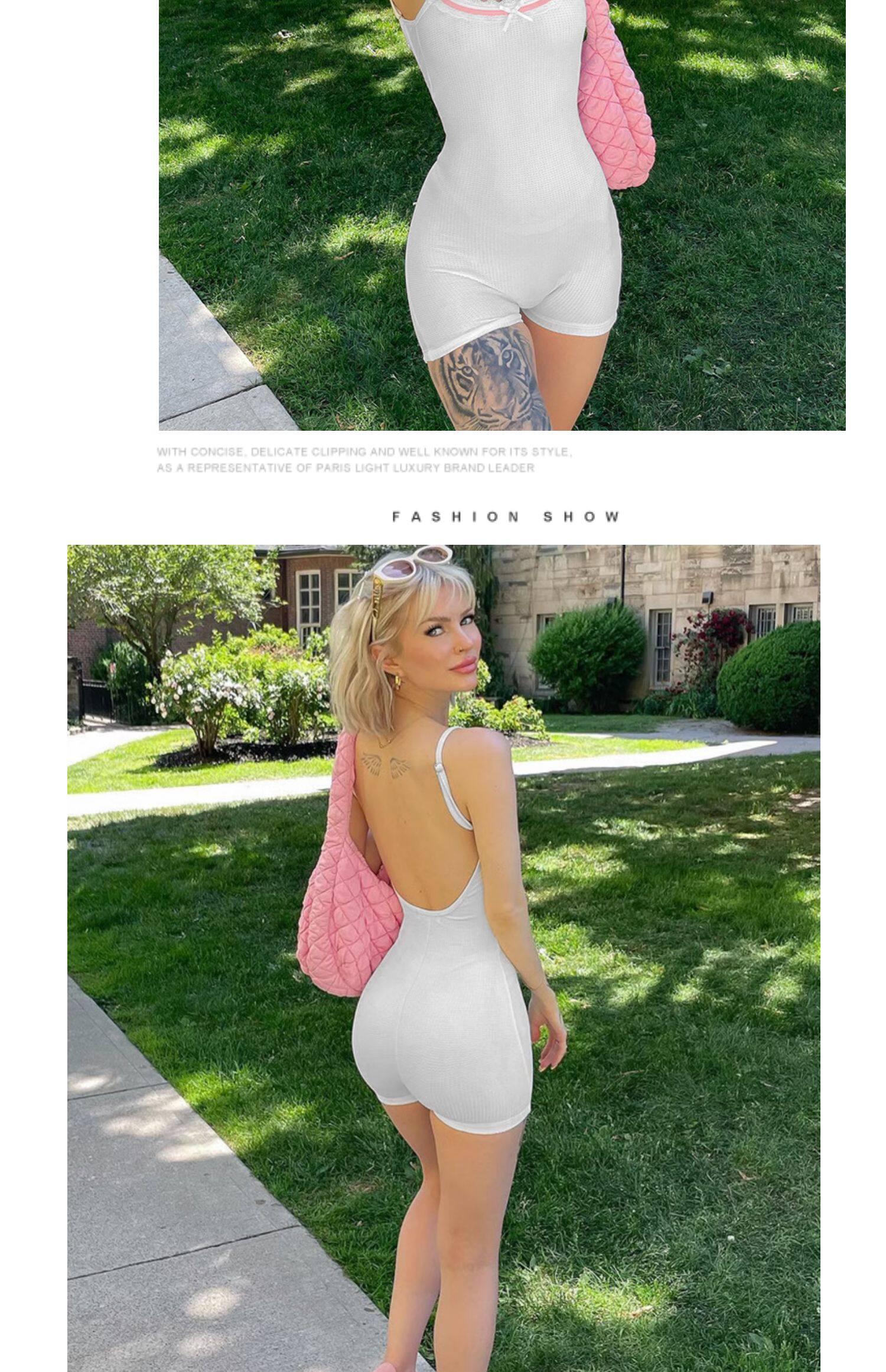 Белые шорты, майка топ с бантиком, комбинезон, европейский стиль, облегающий крой