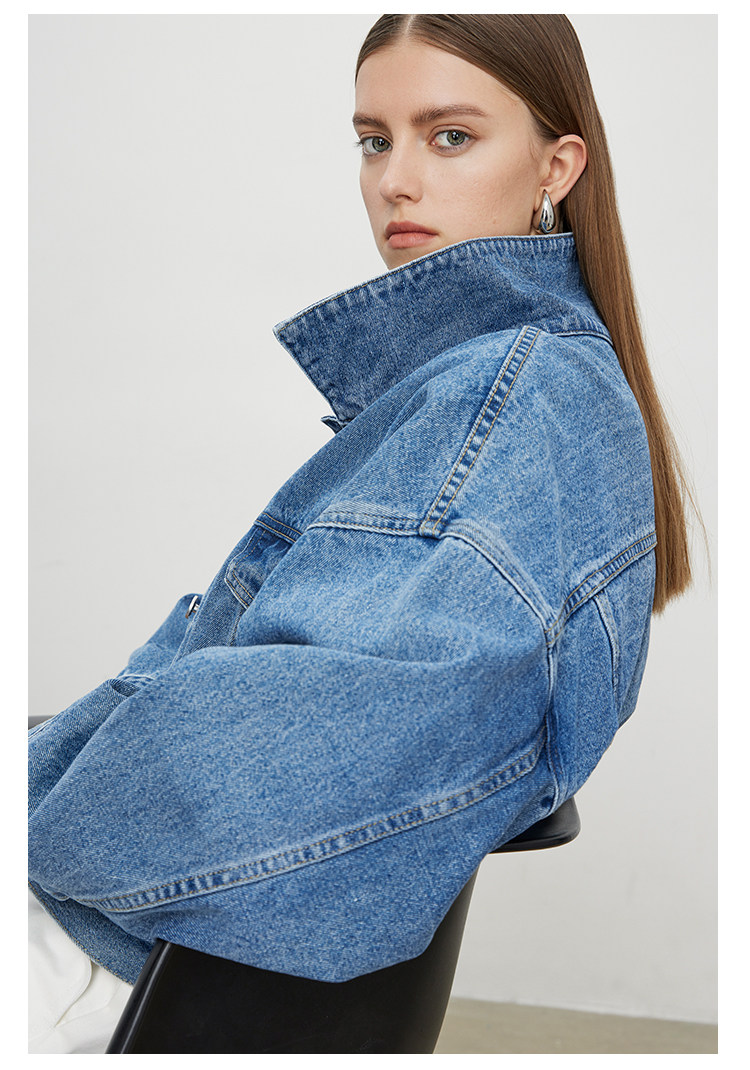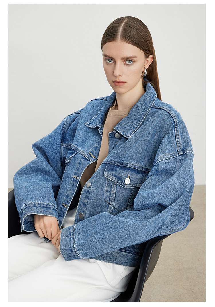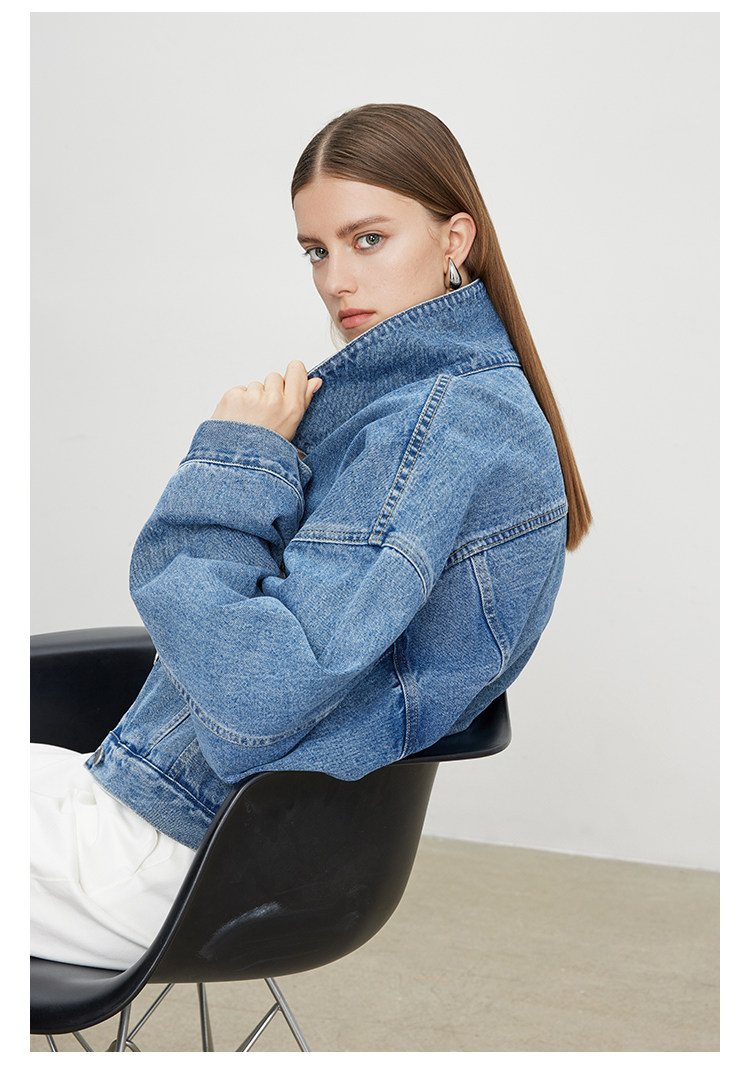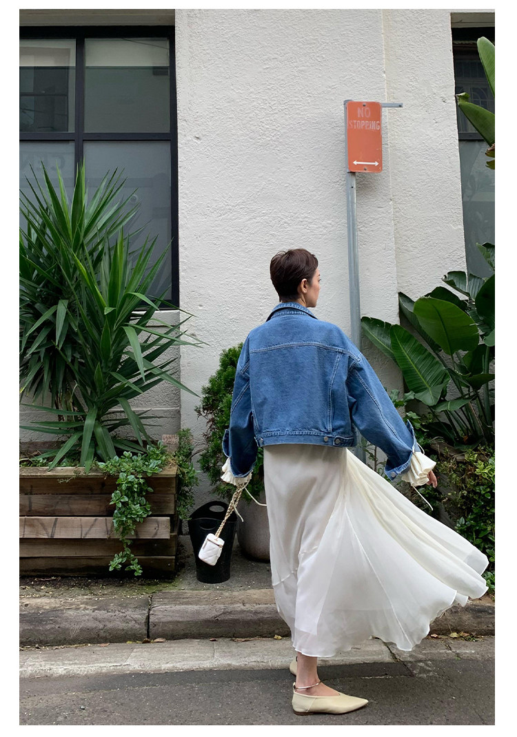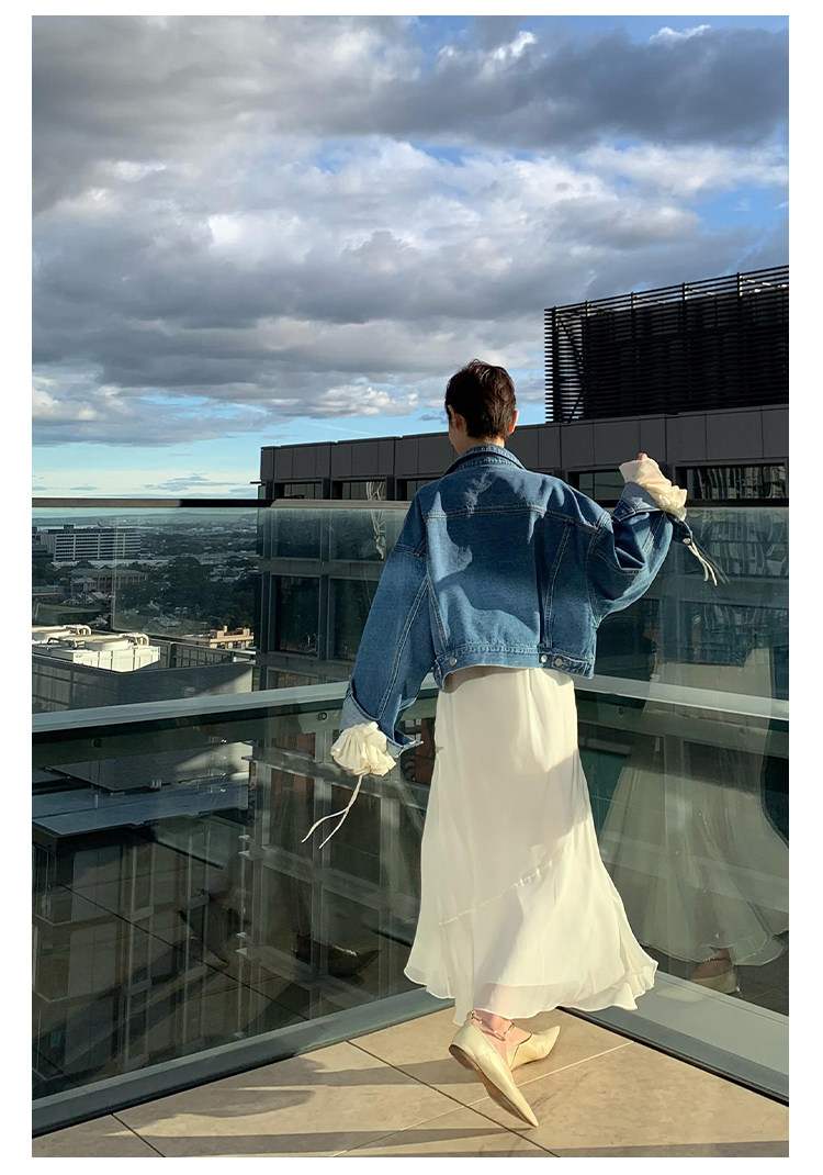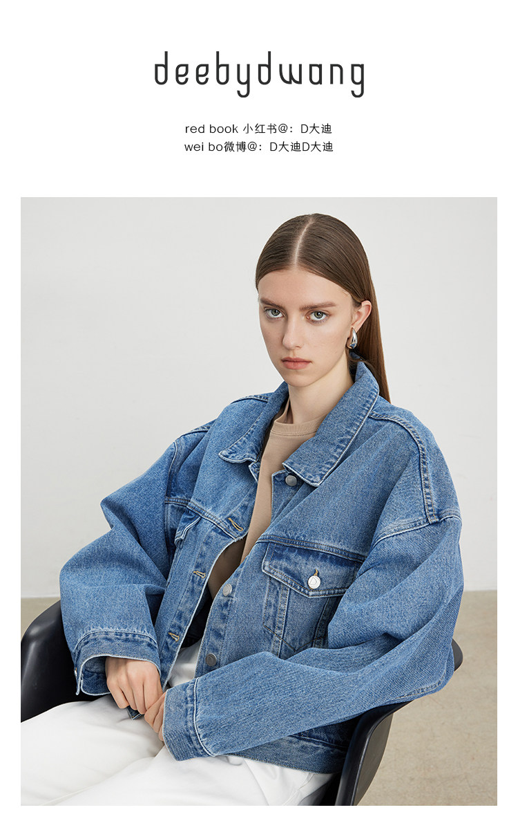 Deebydwang модный BF Wind High -end tsui хлопковая джинсовая джинсовая джинсовая ткань свободный силуэт расклешенный рукав высокий короткий джинсовый курт