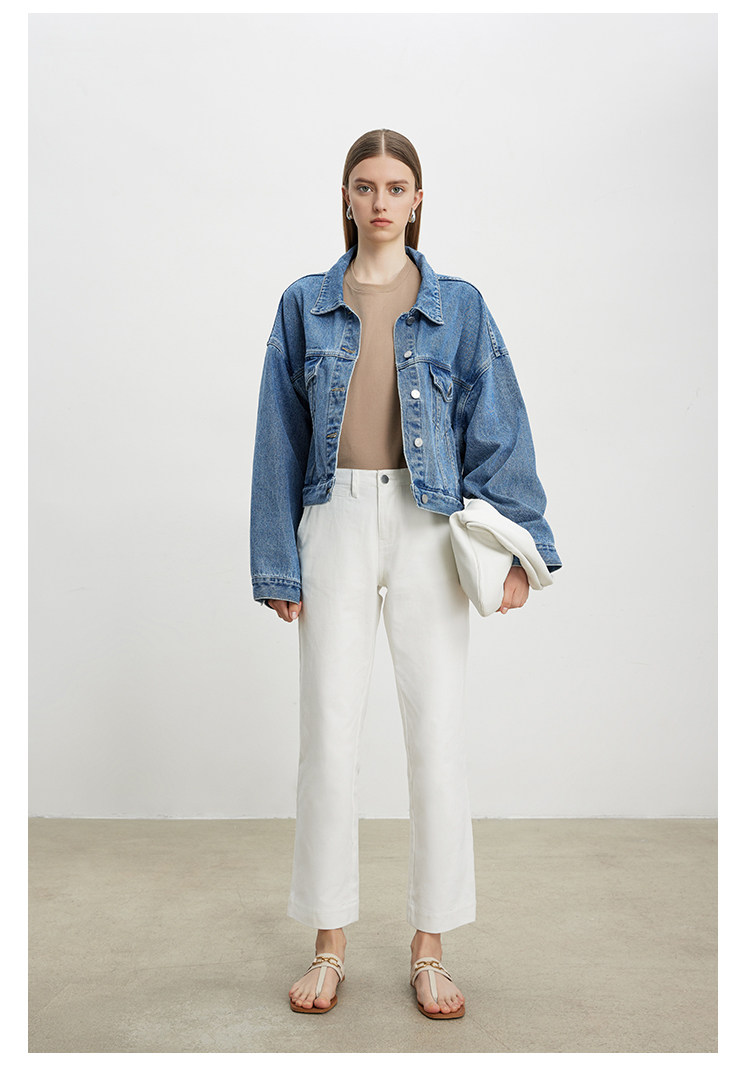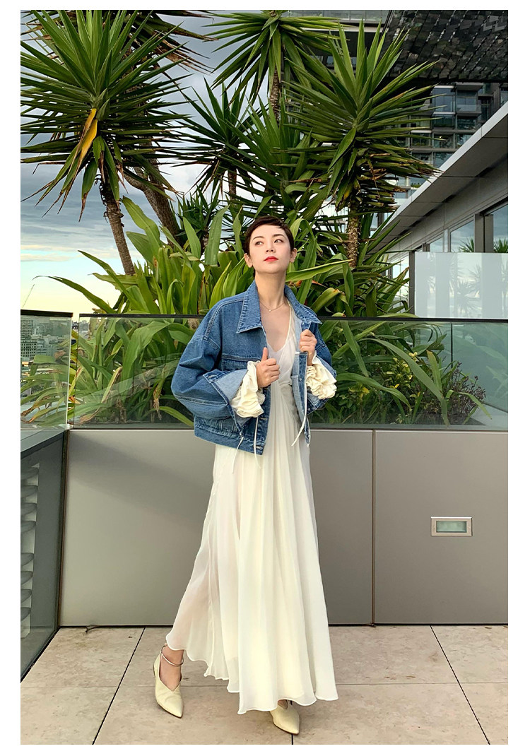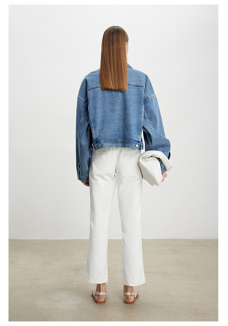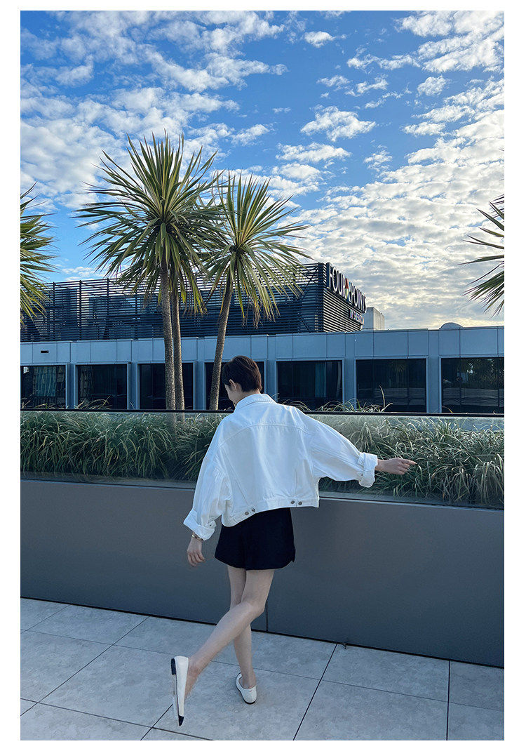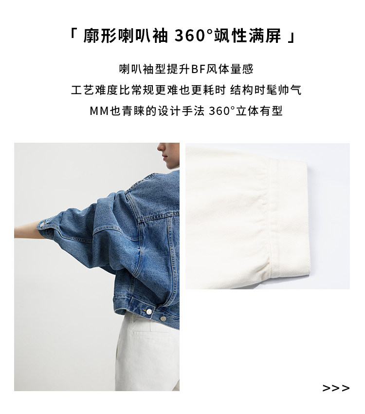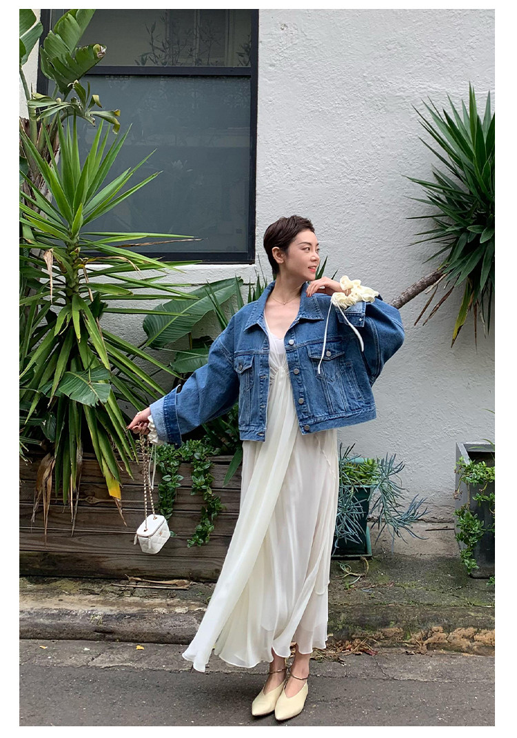 Deebydwang модный BF Wind High -end tsui хлопковая джинсовая джинсовая джинсовая ткань свободный силуэт расклешенный рукав высокий короткий джинсовый курт