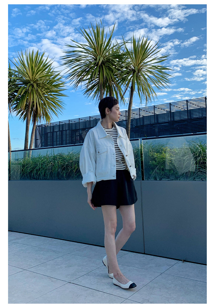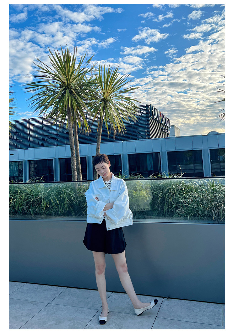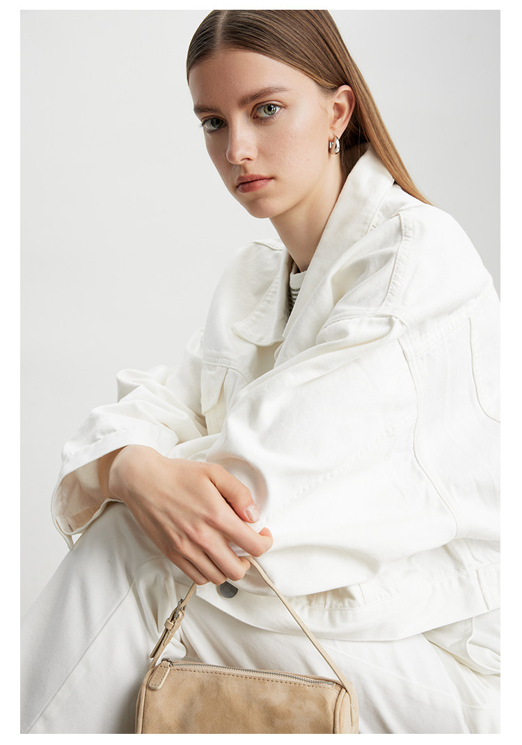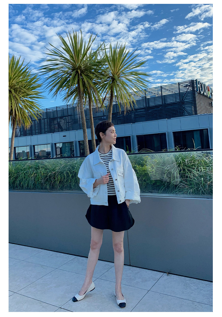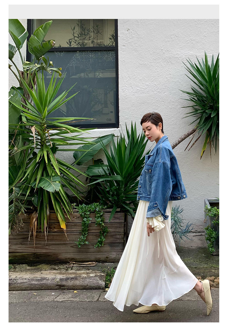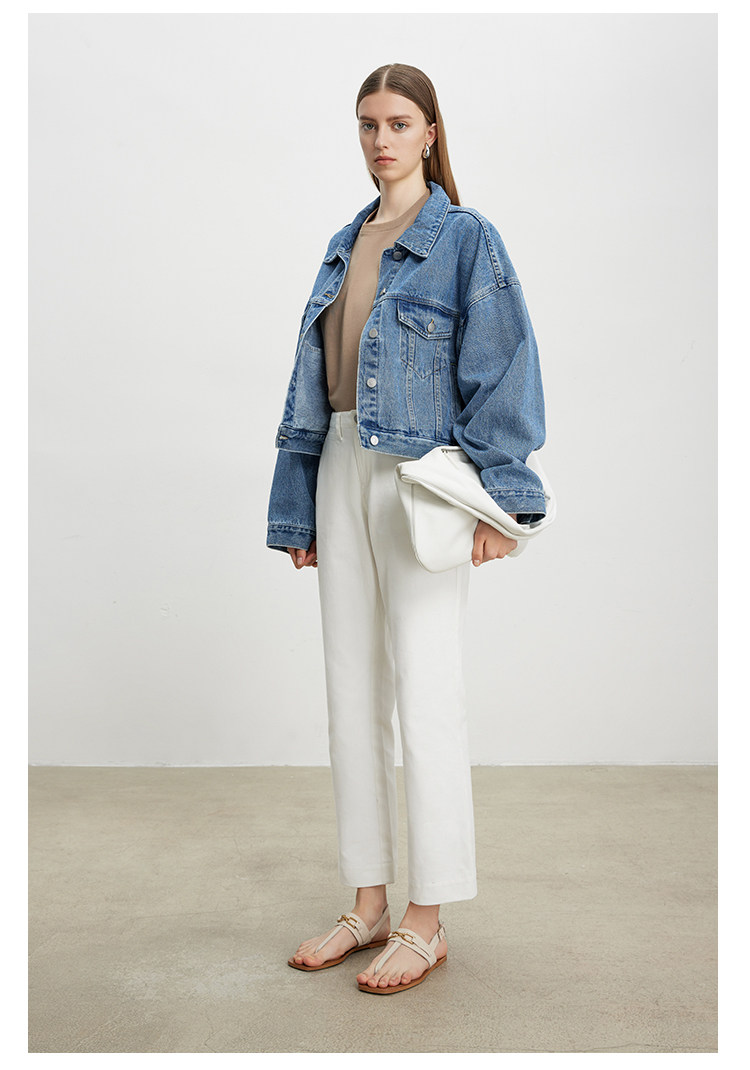 Deebydwang модный BF Wind High -end tsui хлопковая джинсовая джинсовая джинсовая ткань свободный силуэт расклешенный рукав высокий короткий джинсовый курт