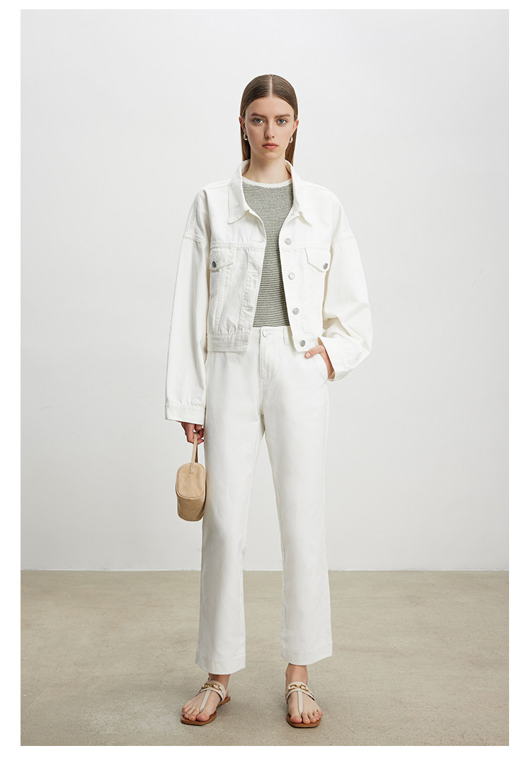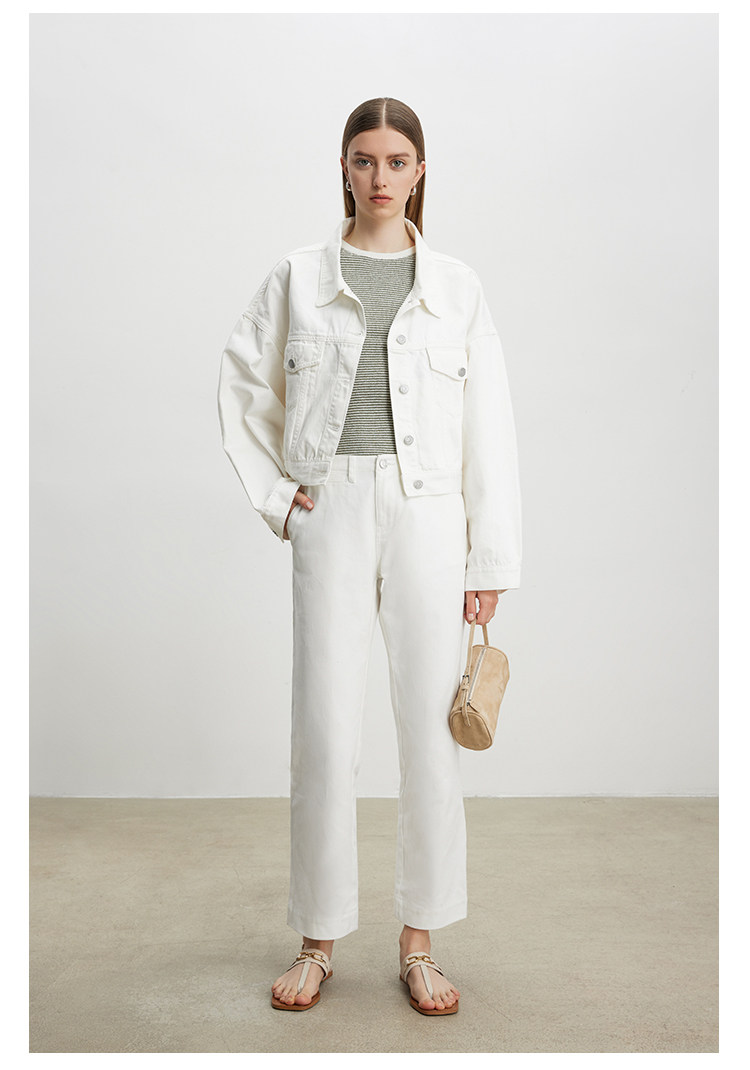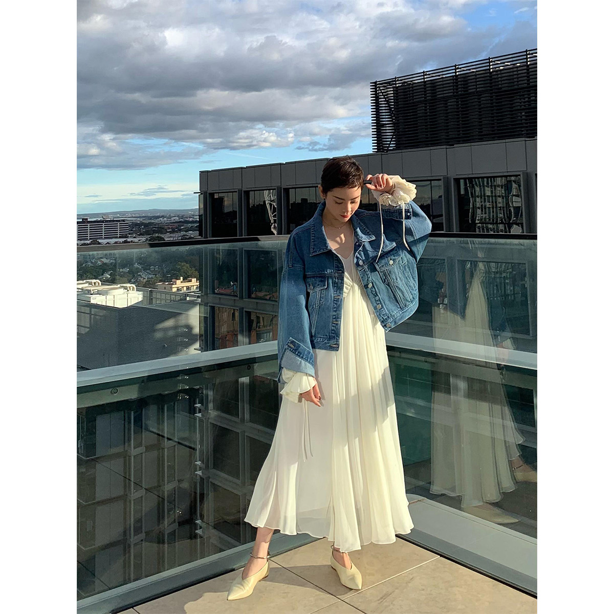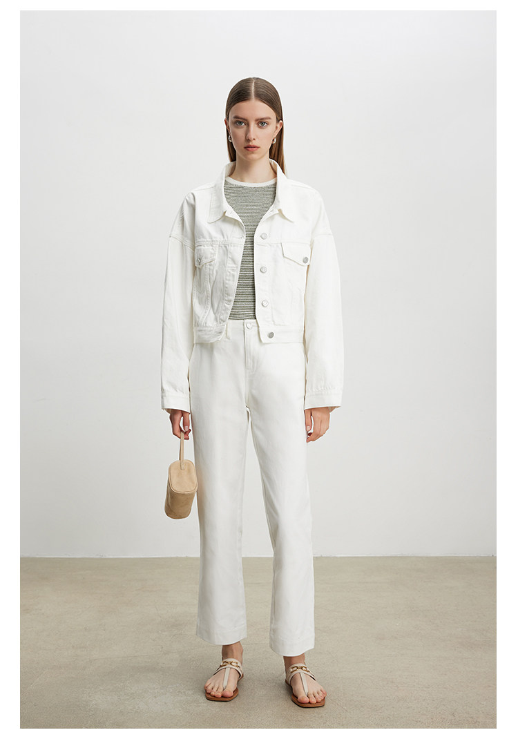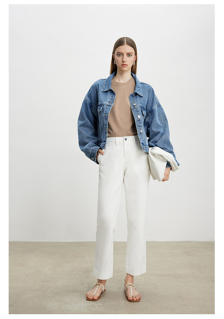 Deebydwang модный BF Wind High -end tsui хлопковая джинсовая джинсовая джинсовая ткань свободный силуэт расклешенный рукав высокий короткий джинсовый курт