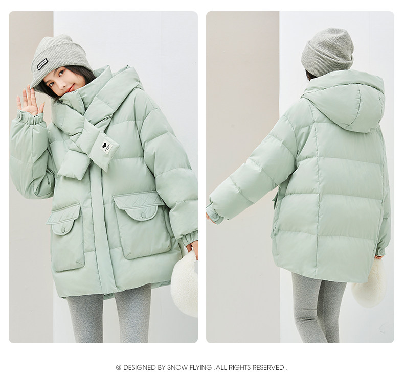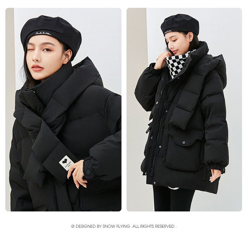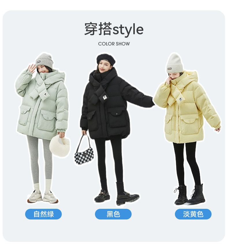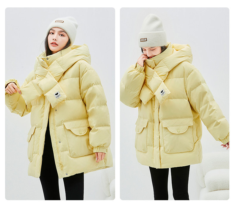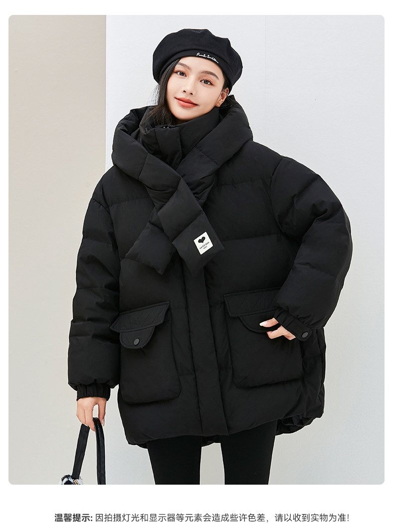 Демисезонный милый удерживающий тепло шарф с капюшоном, пуховик, куртка, в корейском стиле, свободный крой, длина миди