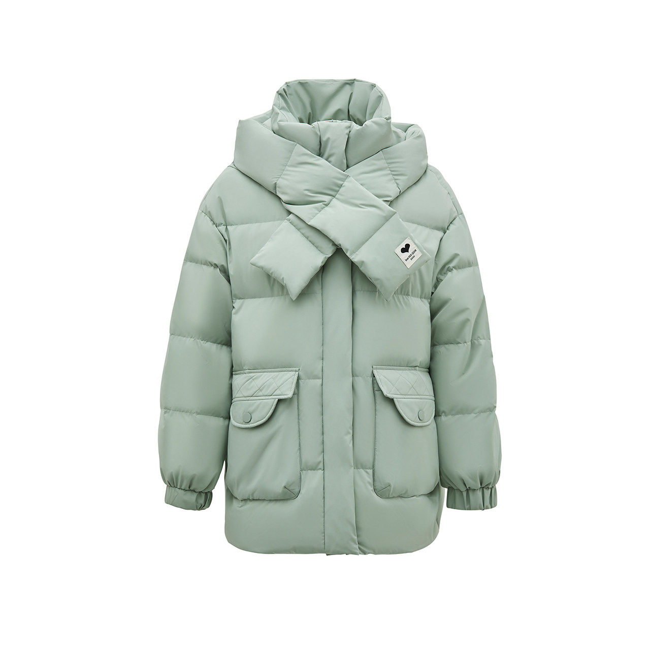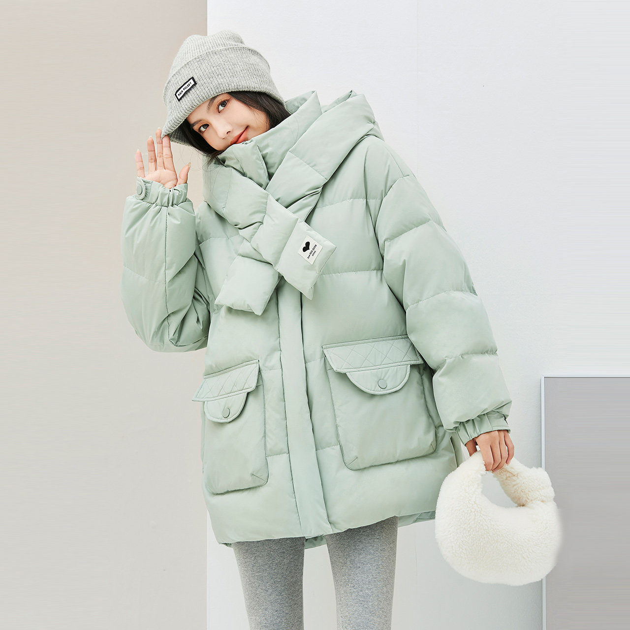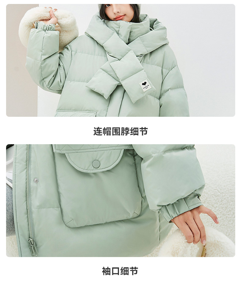 Демисезонный милый удерживающий тепло шарф с капюшоном, пуховик, куртка, в корейском стиле, свободный крой, длина миди