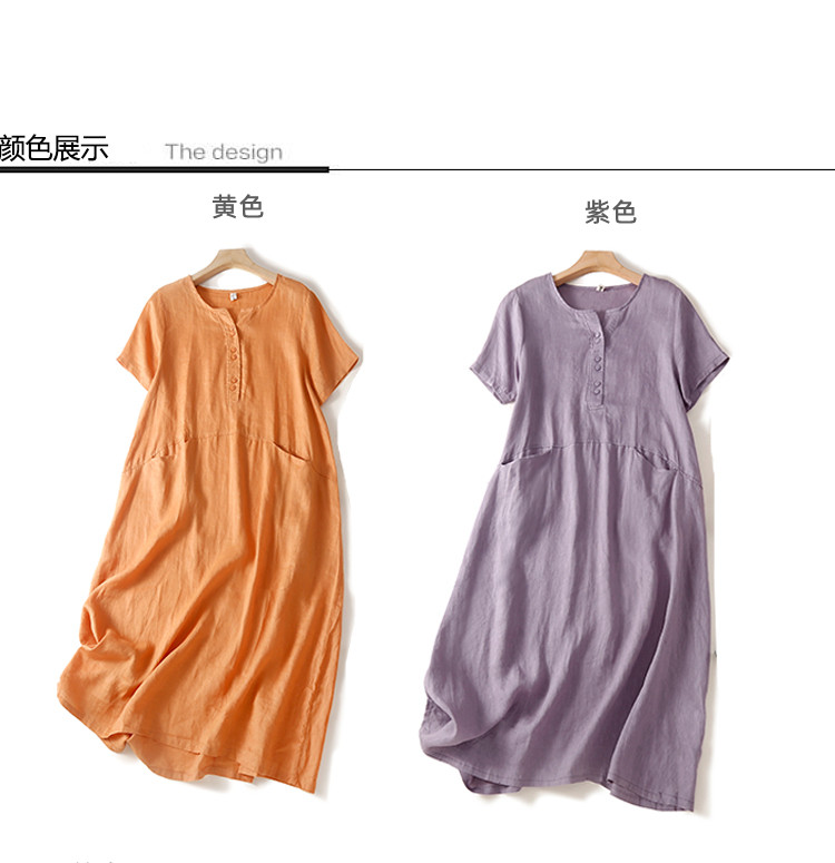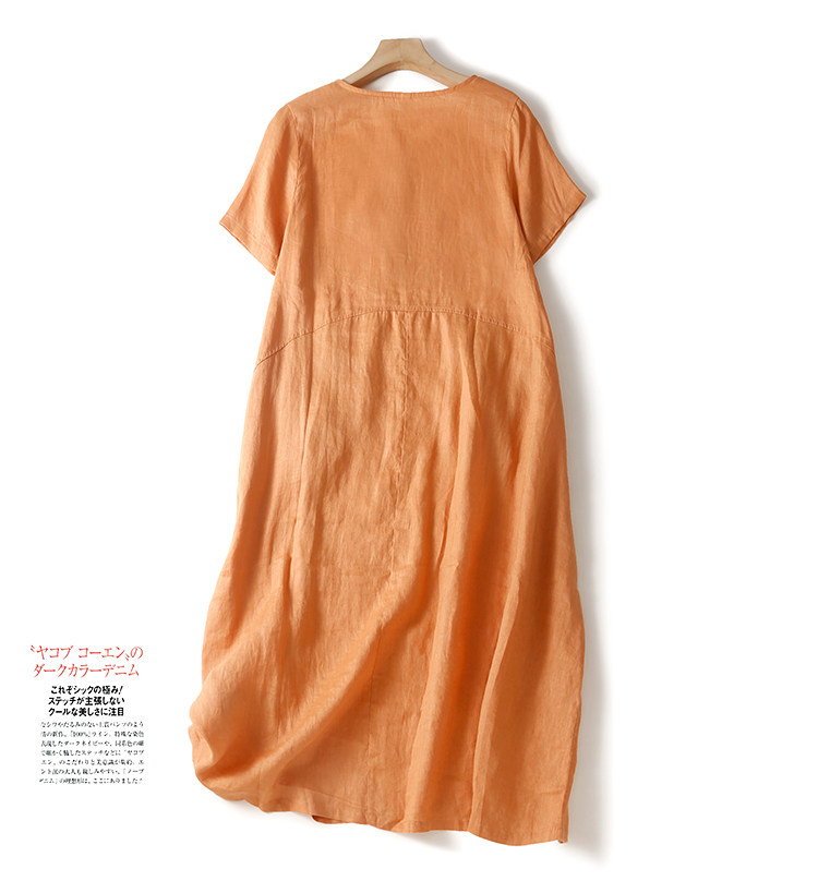 Японское ретро платье, длинная юбка, короткий рукав, свободный крой, большой размер, средней длины