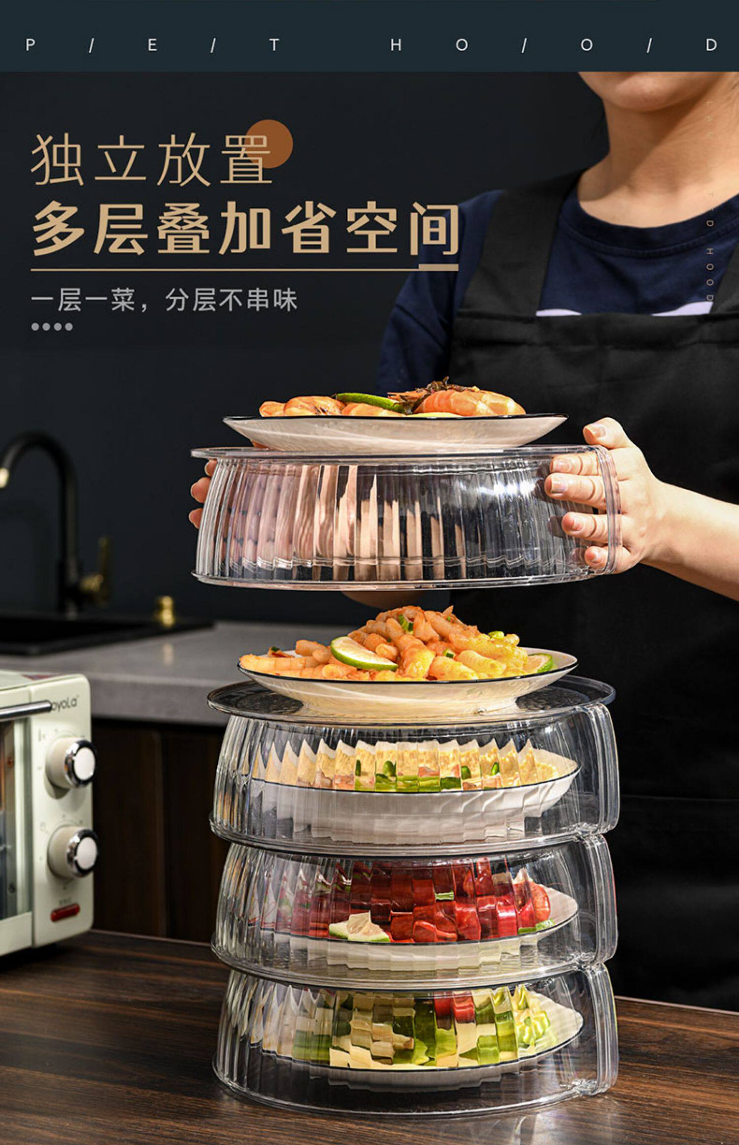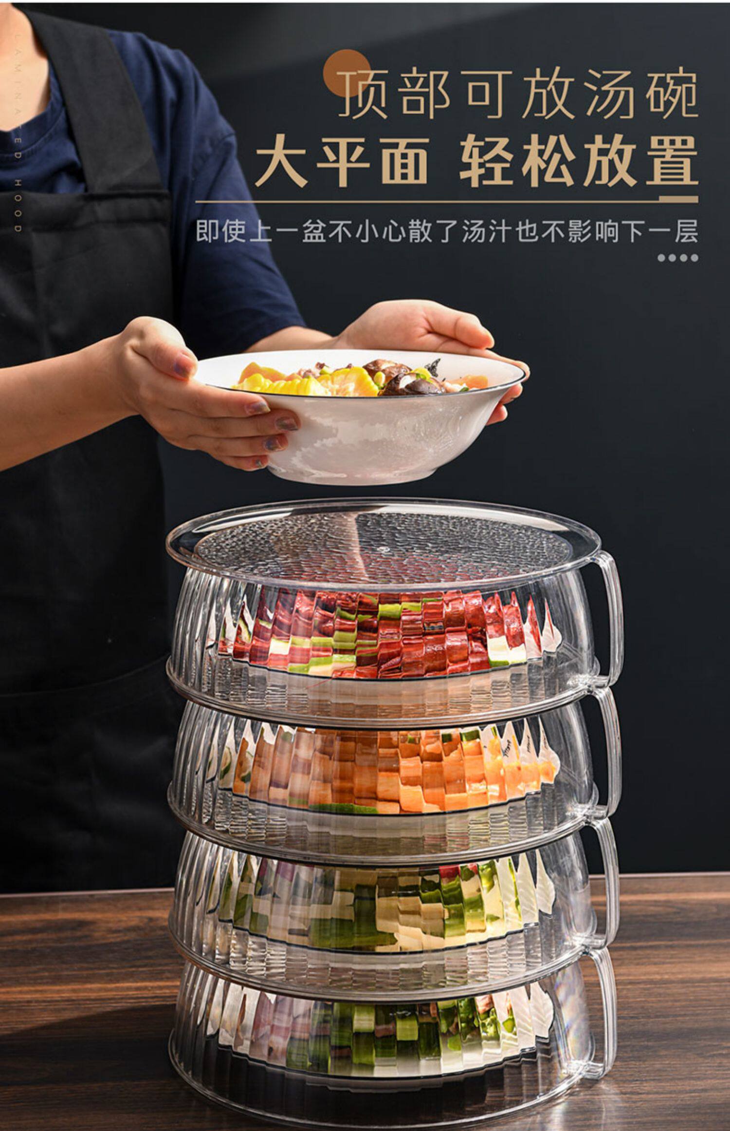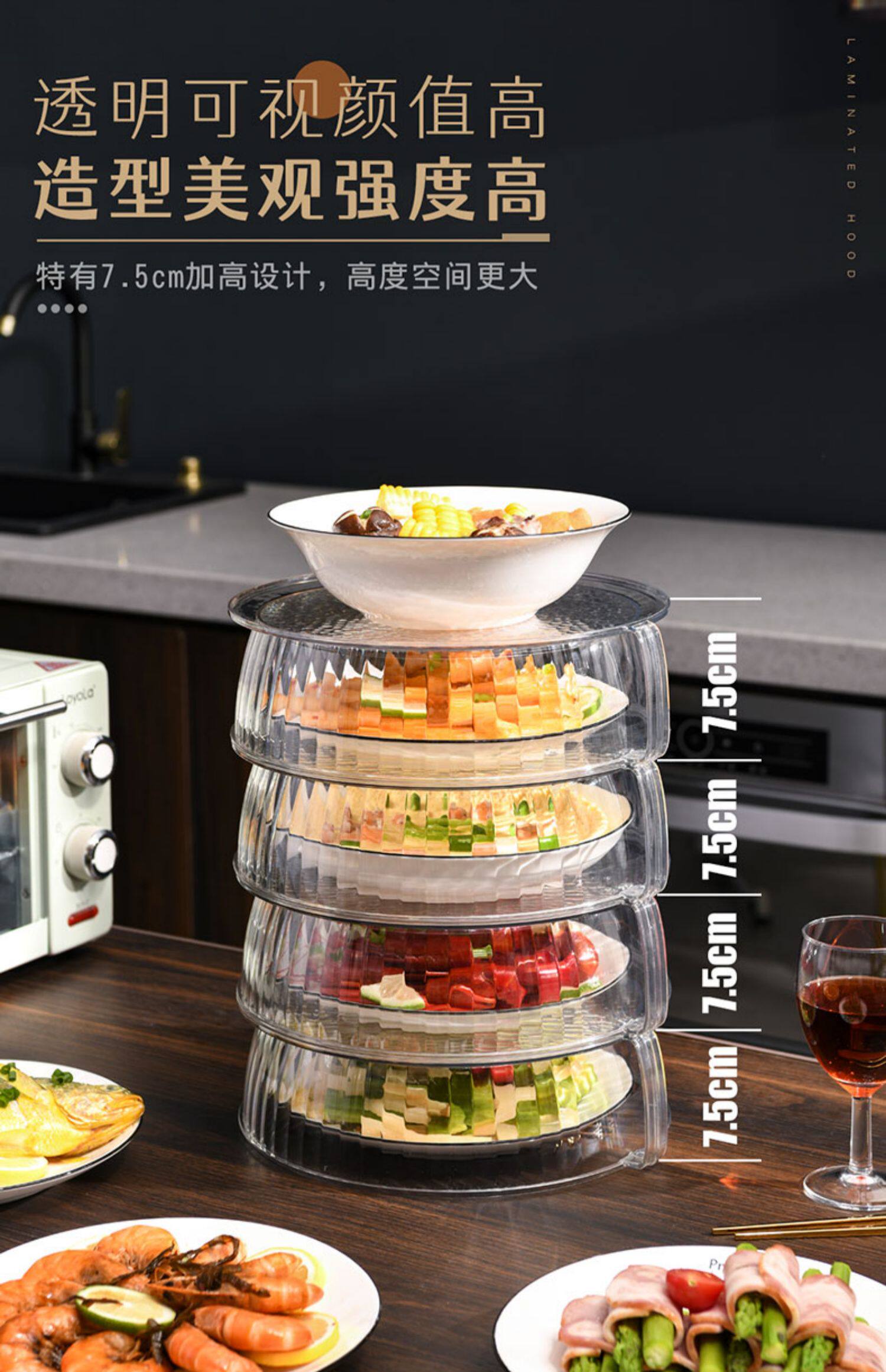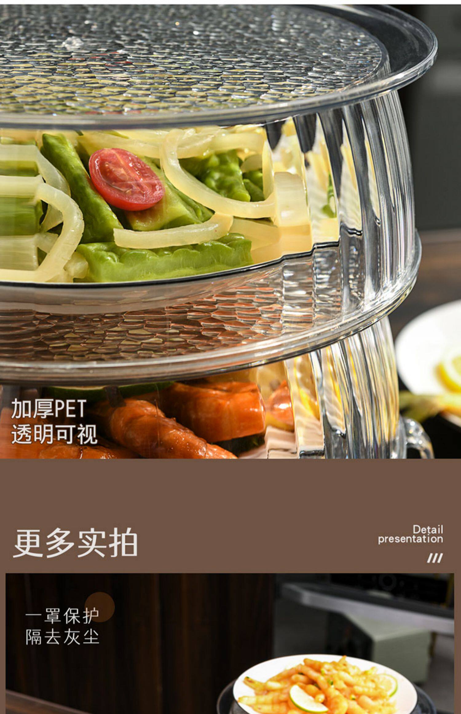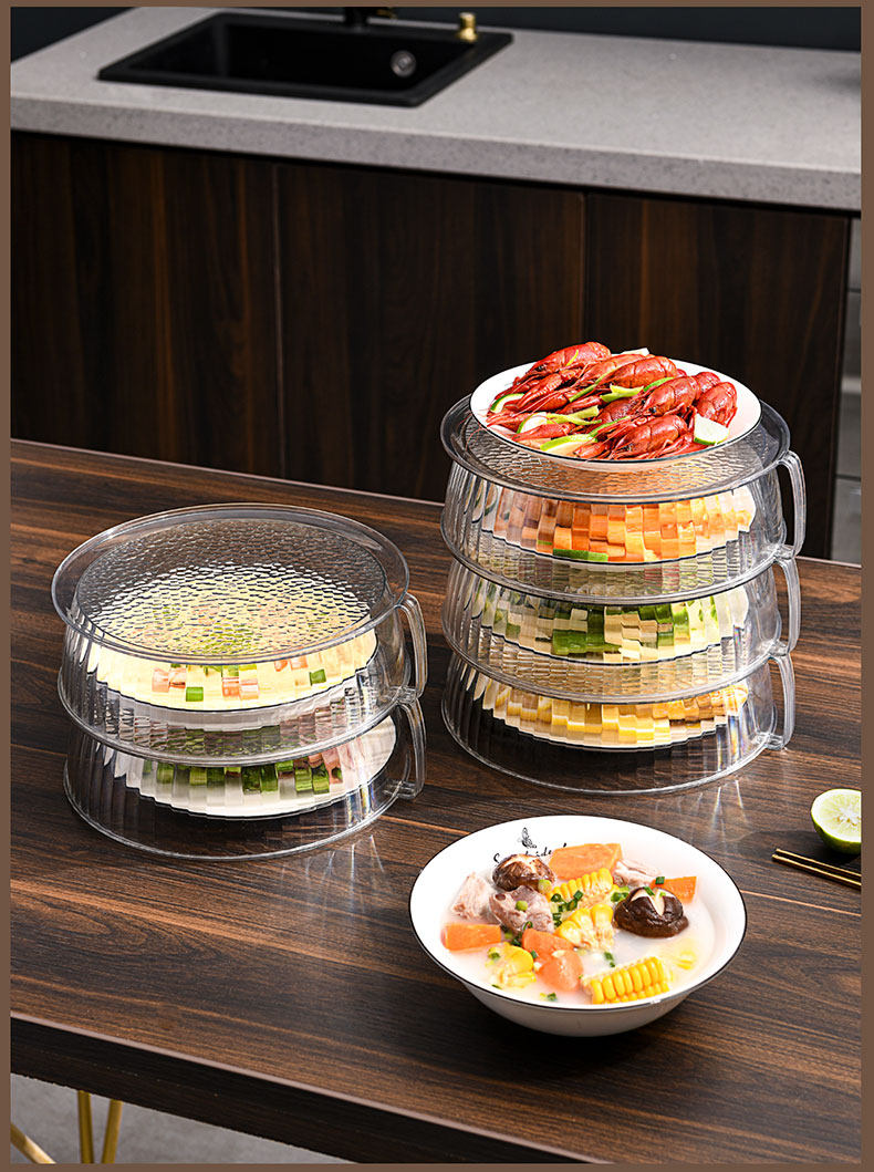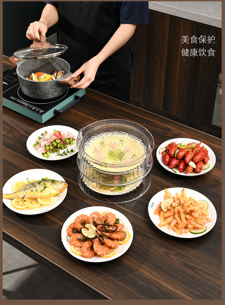 Теплоизоляция, покрывающая овощные капюшоны дома на кухнях на столовой крышке, покрываемое покрываемое пыль, покрытые пыли, еда, еда, многослойная стойка для хранения