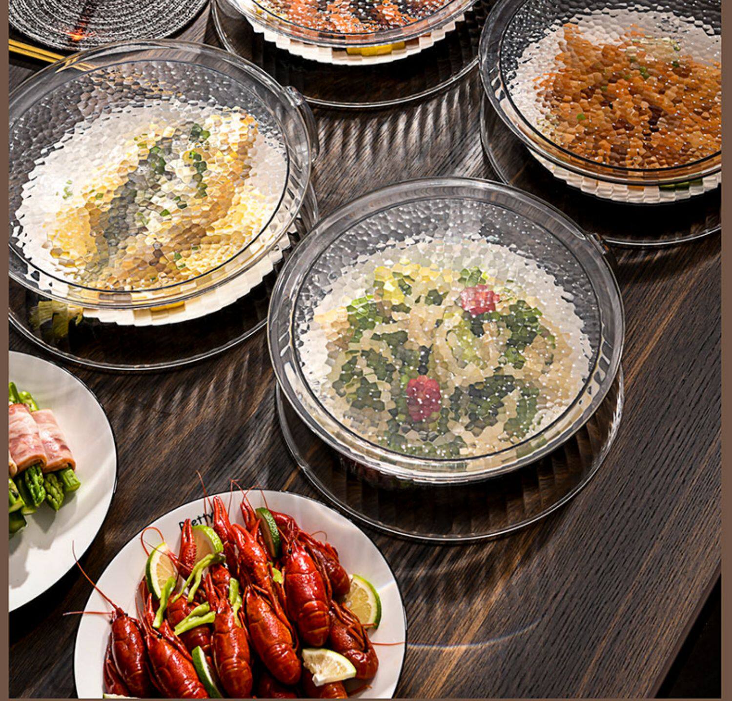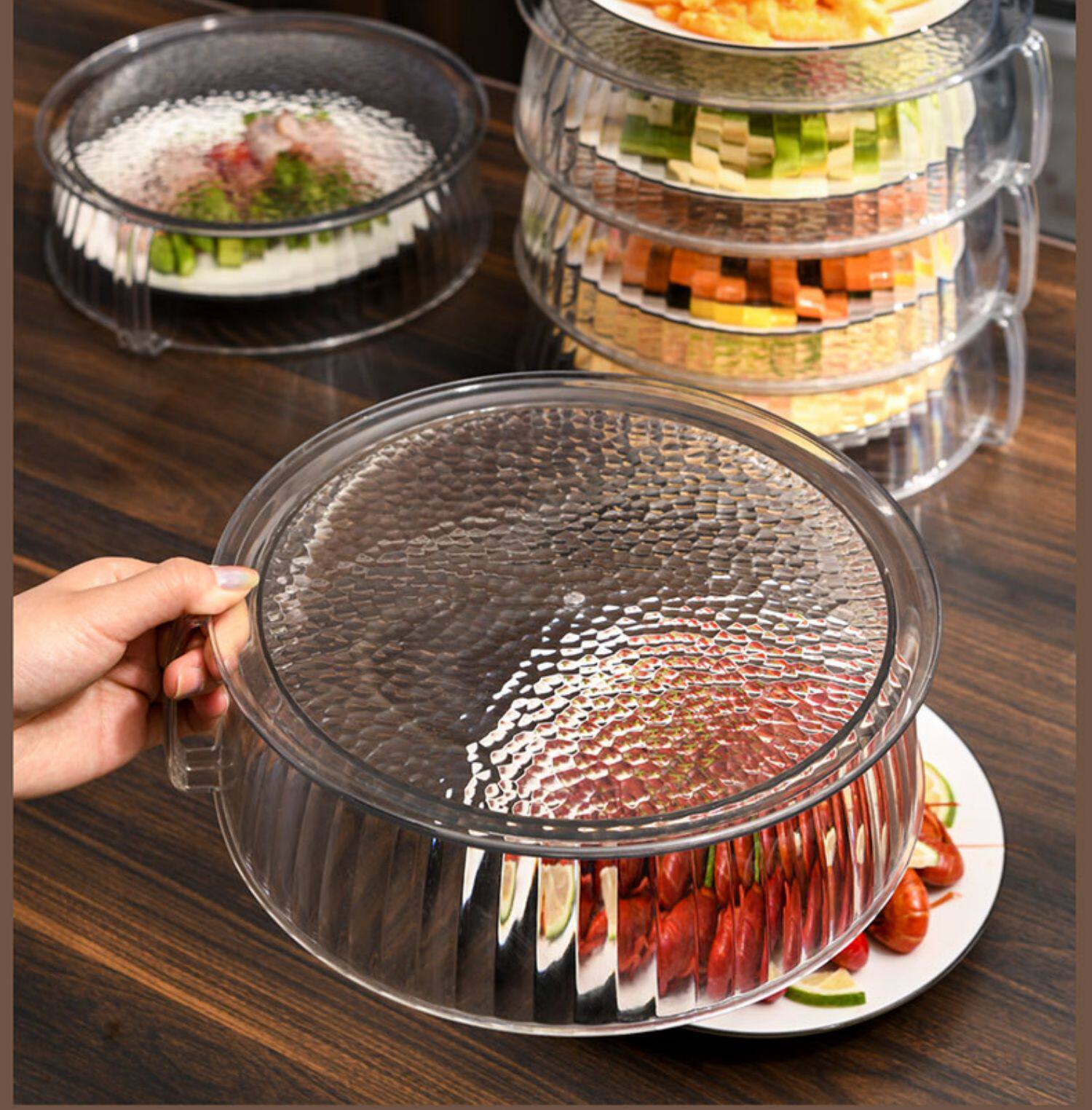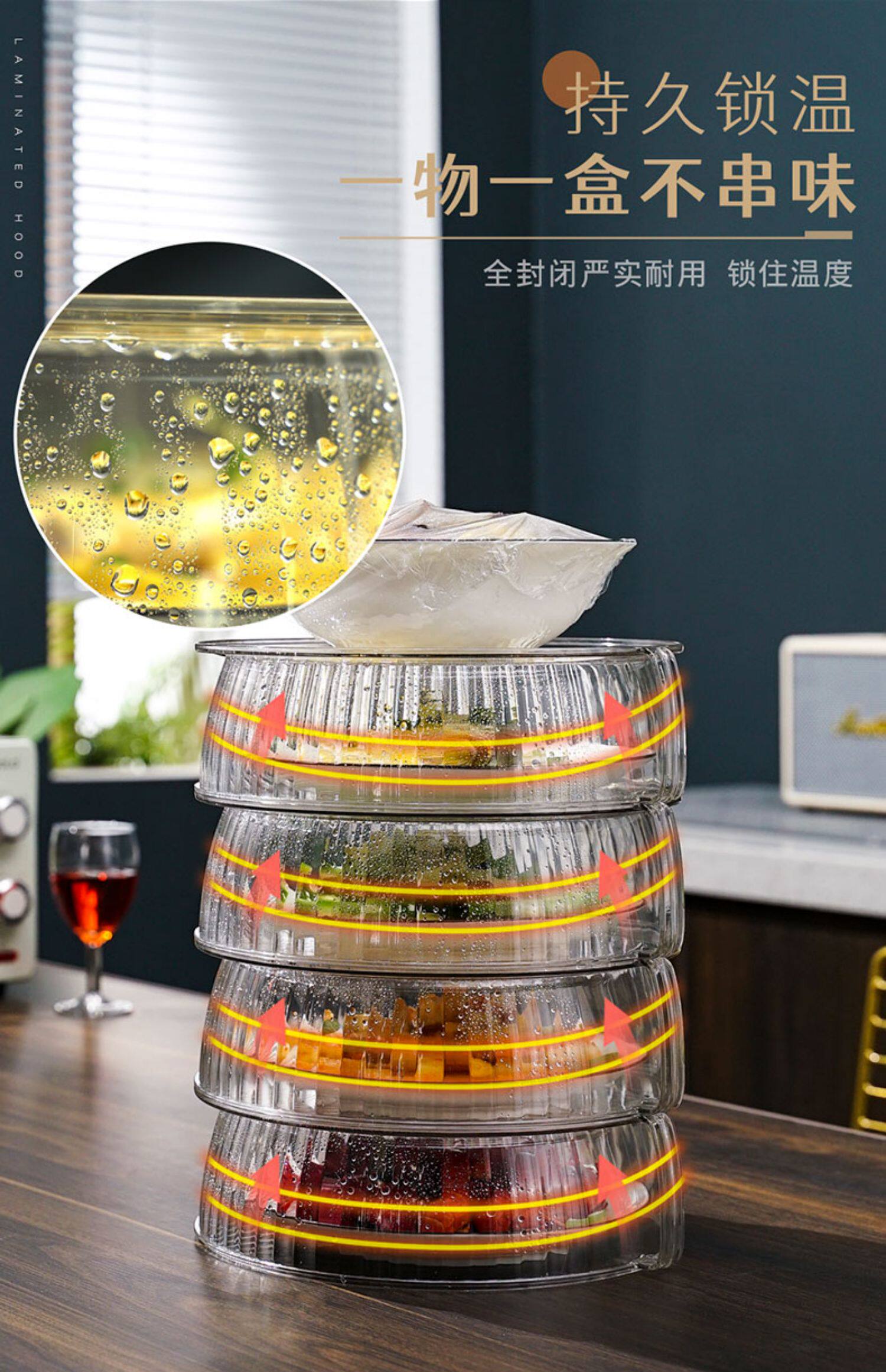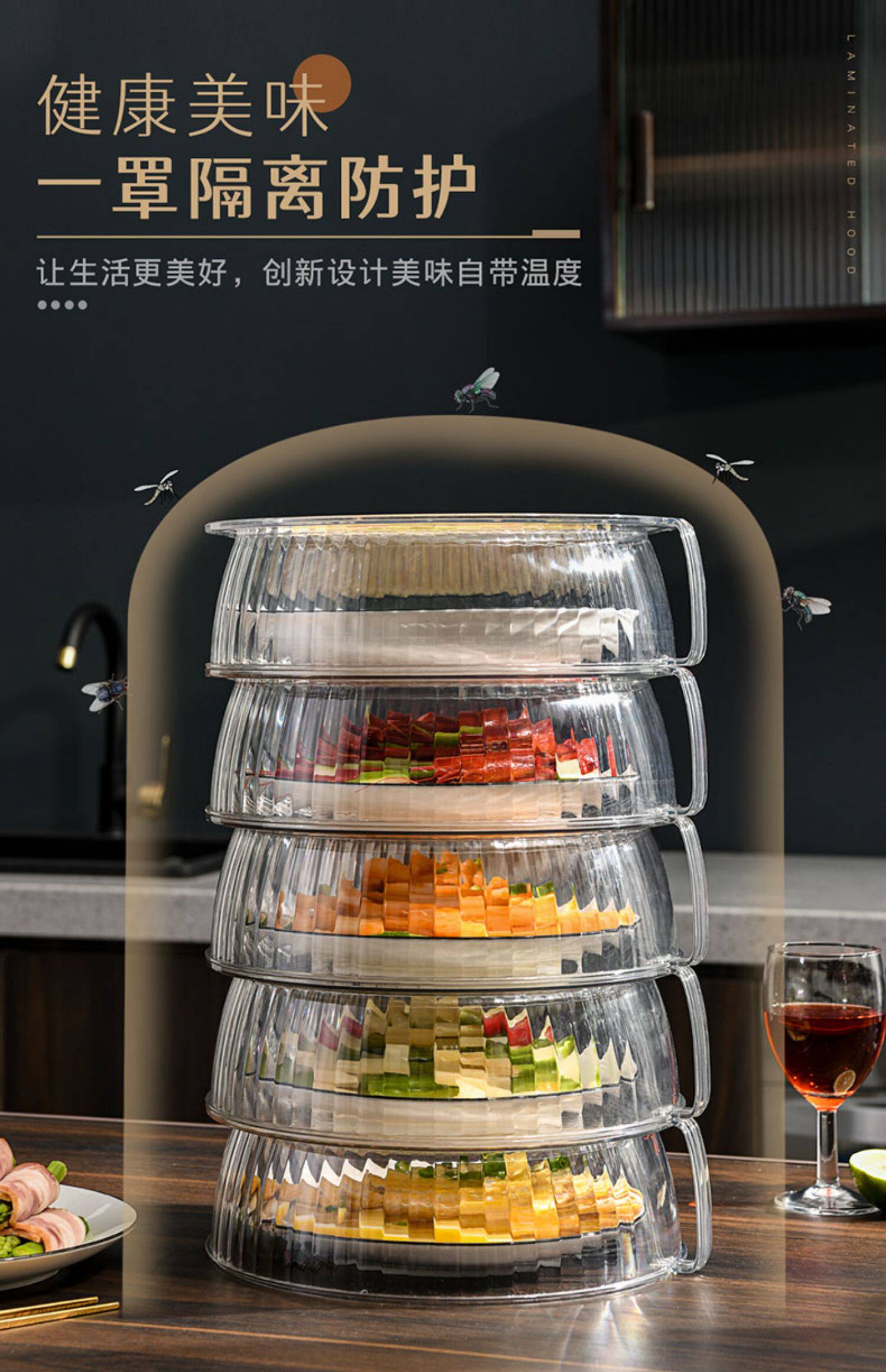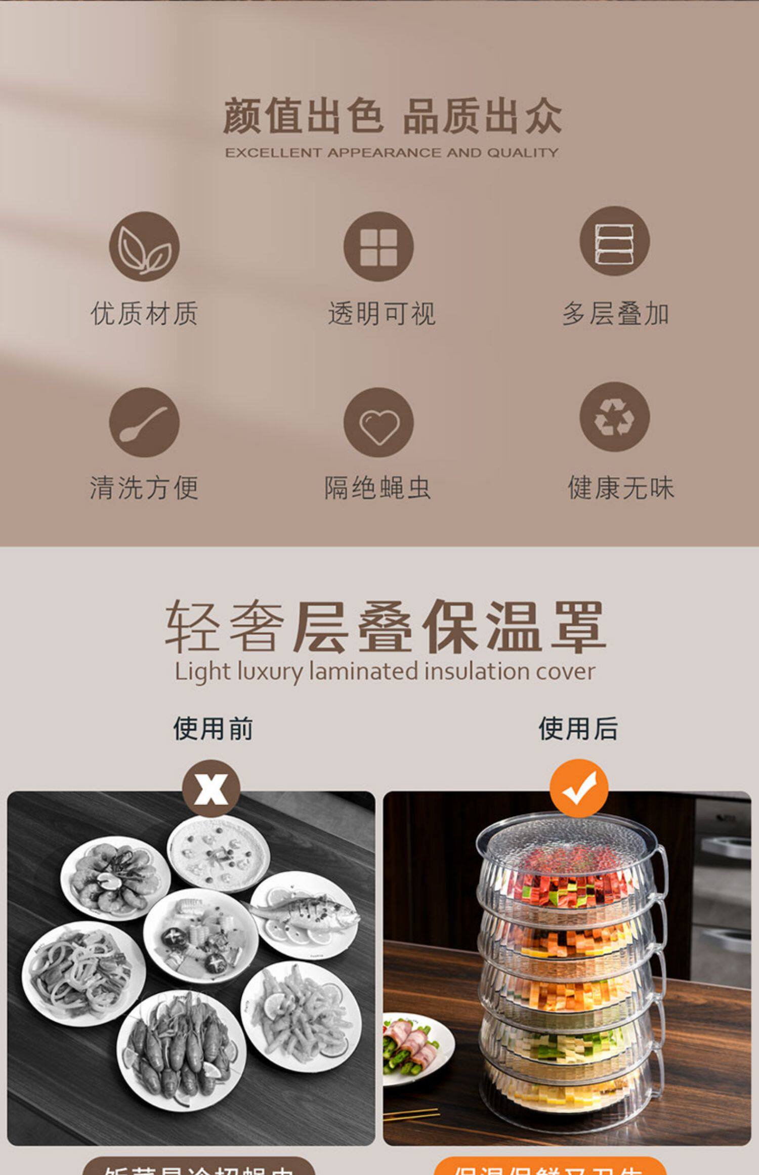 Теплоизоляция, покрывающая овощные капюшоны дома на кухнях на столовой крышке, покрываемое покрываемое пыль, покрытые пыли, еда, еда, многослойная стойка для хранения