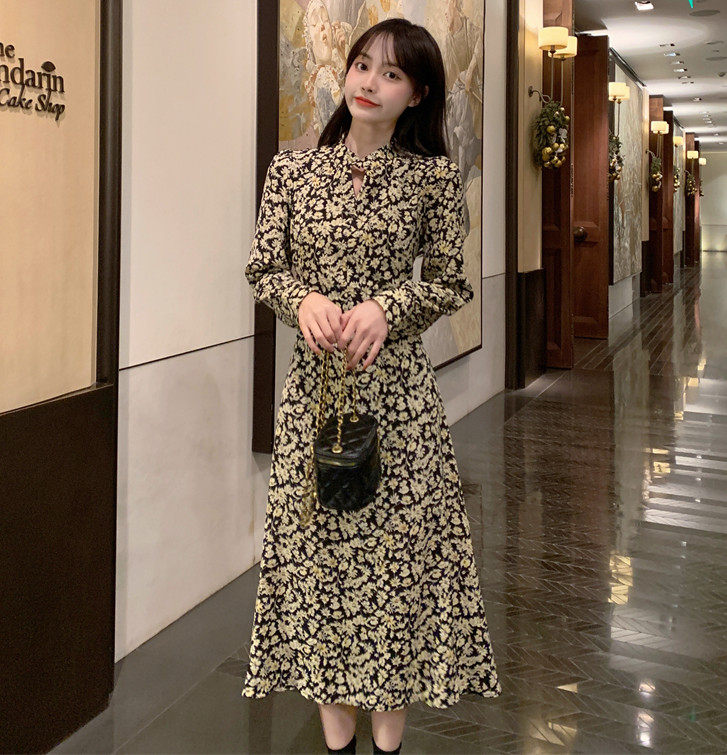 Шифоновый лонгслив, осеннее осеннее платье, изысканный стиль, французский стиль, большой размер, высокая талия