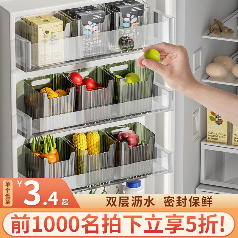 Коробка для хранения с боковой дверью холодильника содержит и разобралась с внутренней свежей коробкой из артефакта дверей пищи -Распространенная коробка для хранения чеснока имбирного чеснока кухня