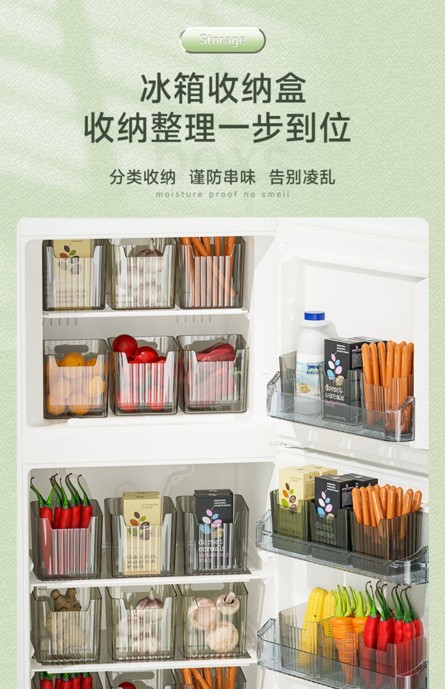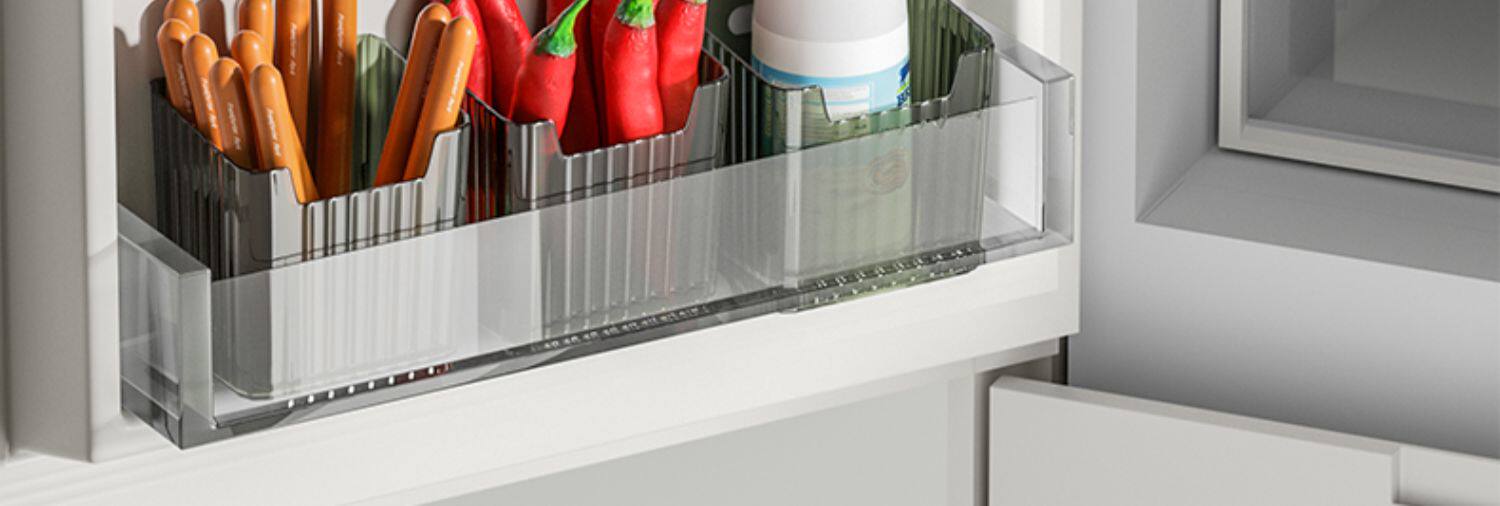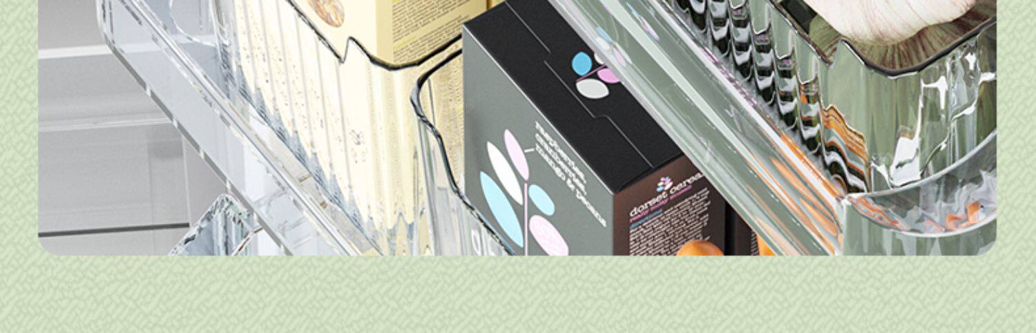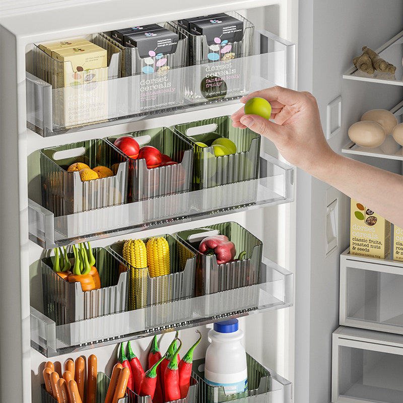 - Десять прозрачных [подходящих для боковой двери холодильника и внутри холодильника]
