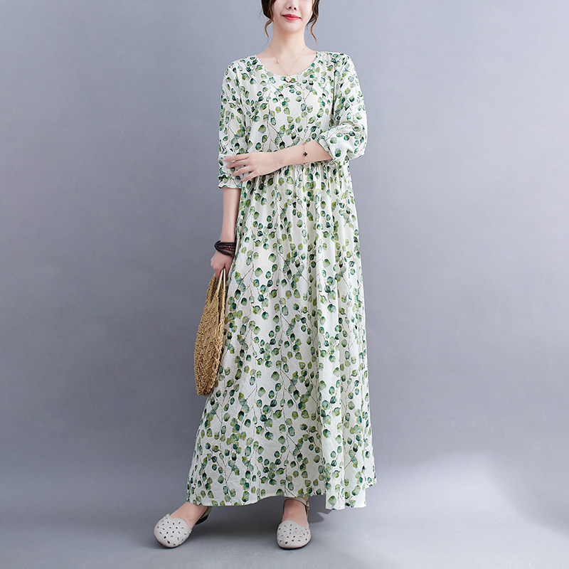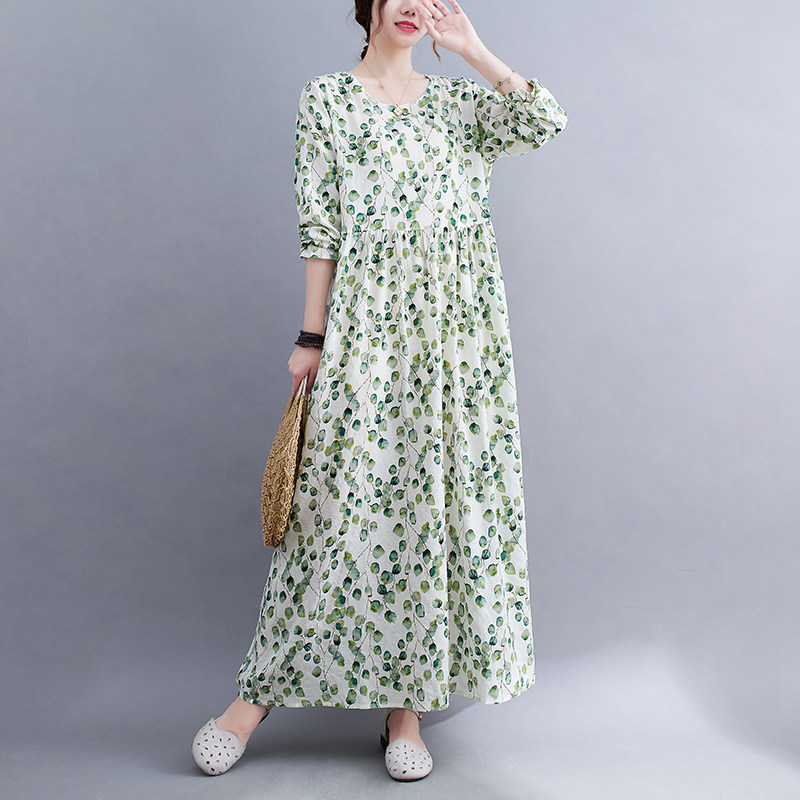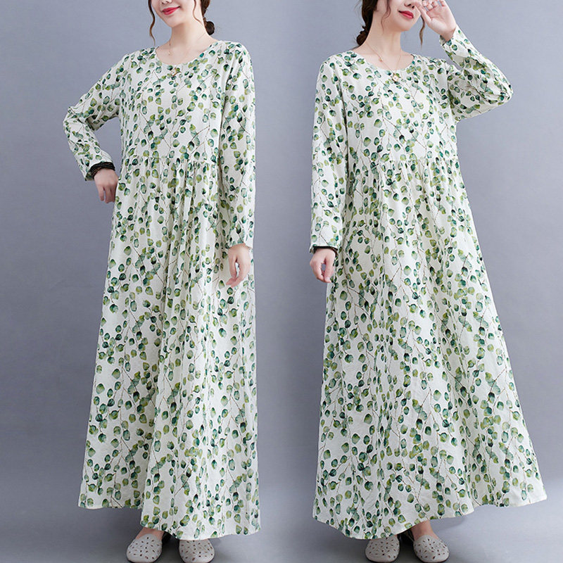 Лонгслив с круглым воротником, платье, длинная юбка, в западном стиле, осенний, большой размер, свободный крой
