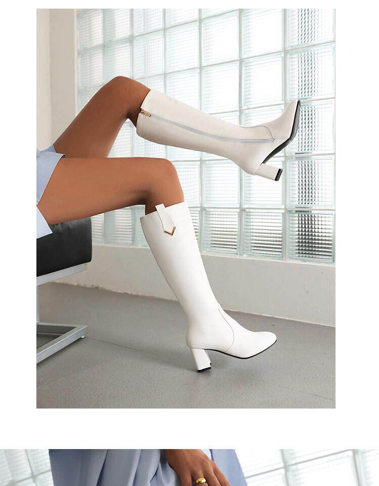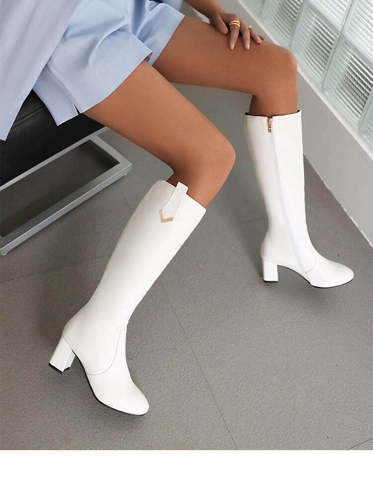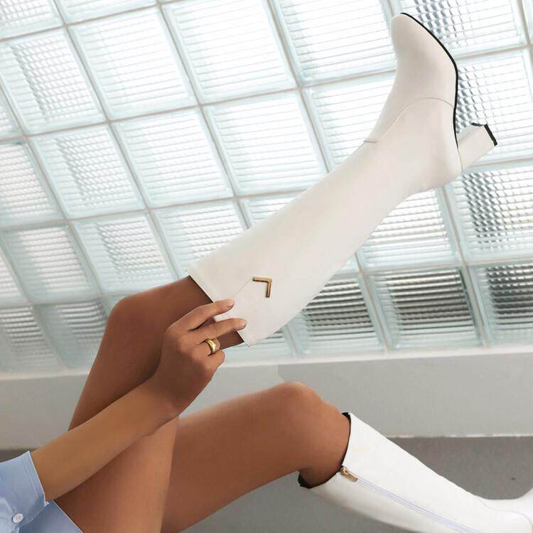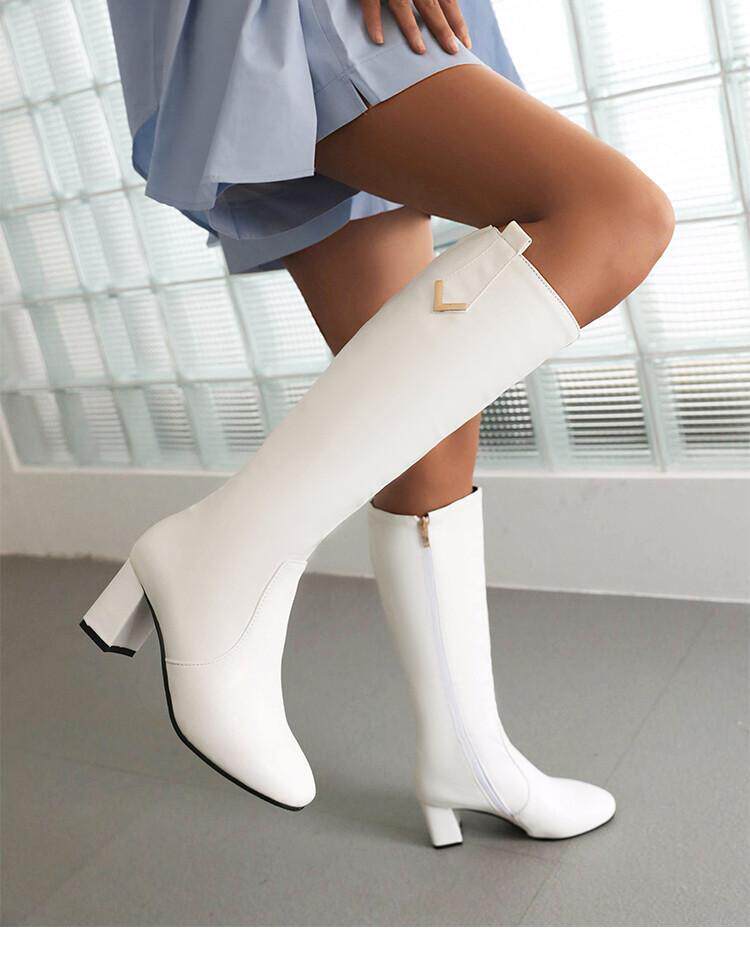Белые демисезонные высокие сапоги, коллекция 2022