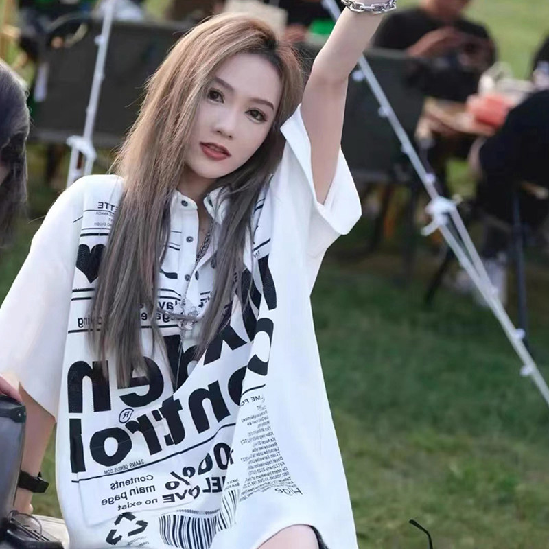 Белая летняя длинная футболка polo, оверсайз, короткий рукав, с рукавом, средней длины