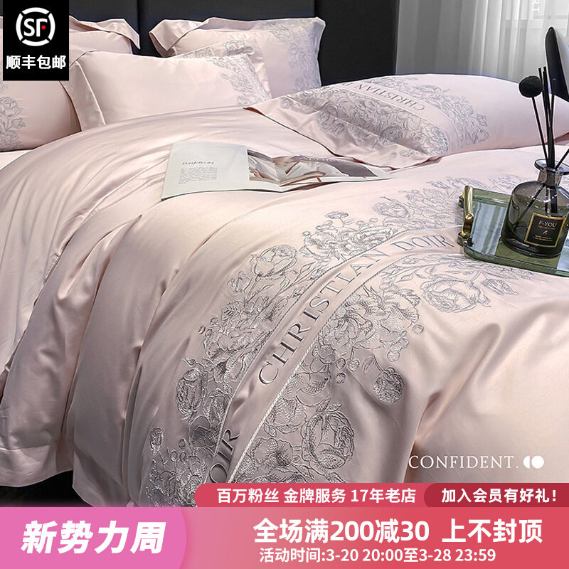 Элитный комплект, хлопковый пододеяльник, французский стиль, 4 предмета, с вышивкой, легкий роскошный стиль, постельные принадлежности