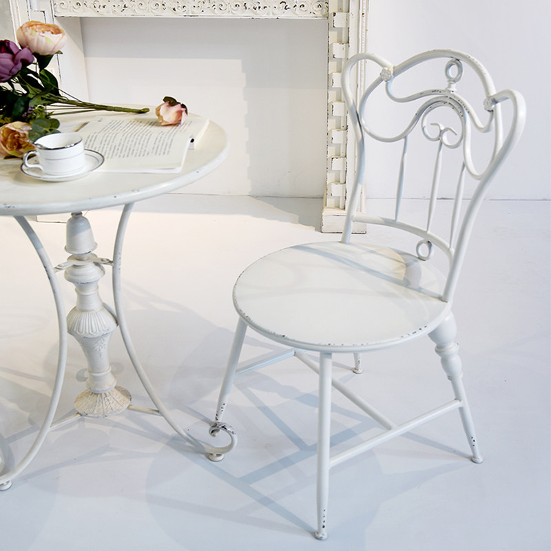 Садовый стул на открытом воздухе сад Железный Арт -Стол и стул лысые в белом цвете в качестве старого повседневного стула одностороннего поручника задним креслом
