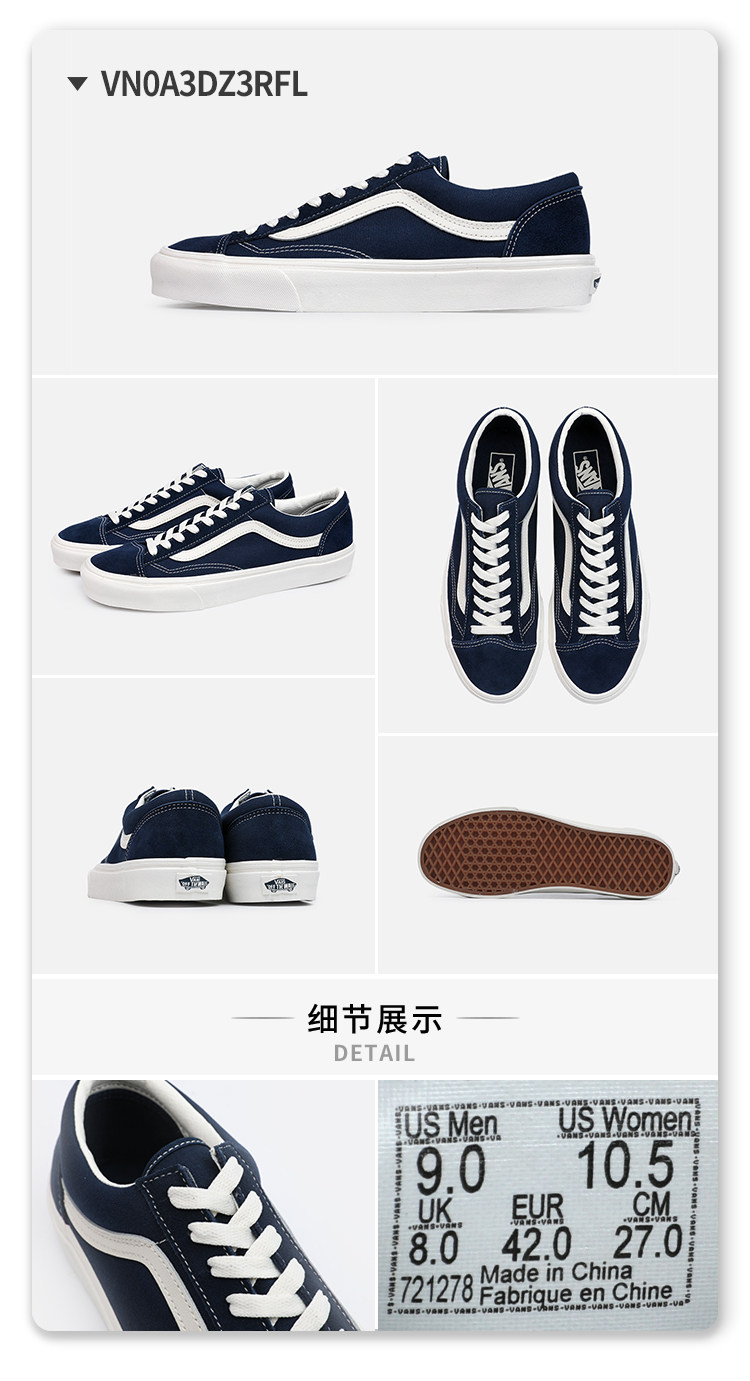 Vans Van Style 36 темно -синий Quan Zhilong одинаковые низко -топ -кроссовки VN0A3DZ3RFL
