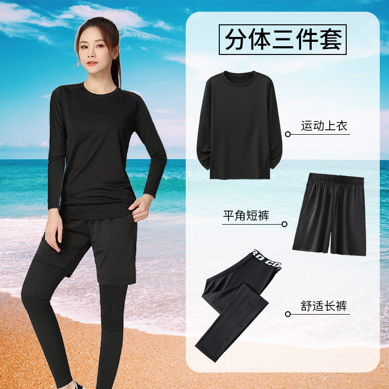 Раздельный летний купальник, вместительные и большые штаны, лонгслив для школьников и студентов для плавания, нарукавники, комплект, защита от солнца, большой размер