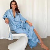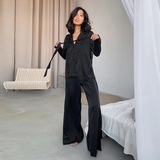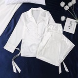 Новый сплошной цвет шелк тонкие рубашки срезанные брюки.
