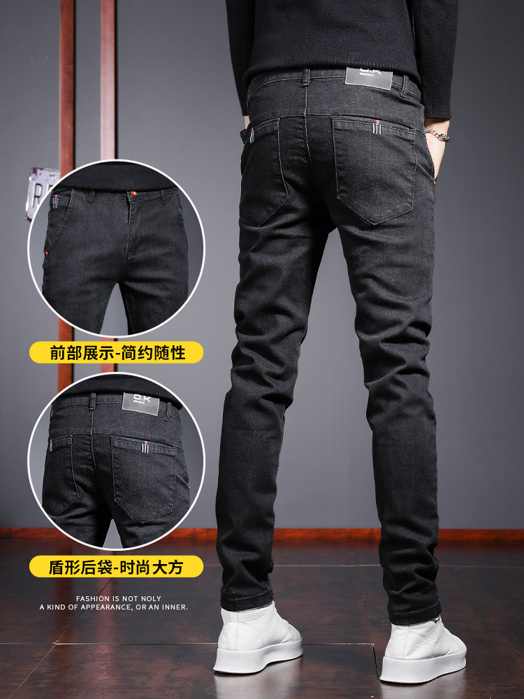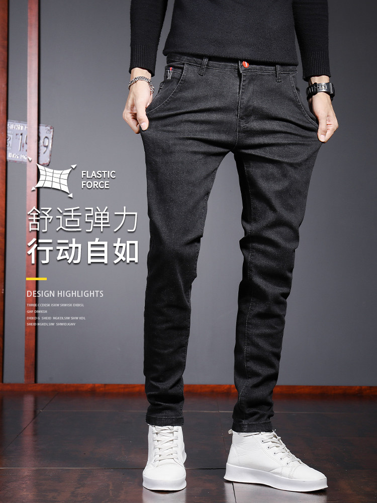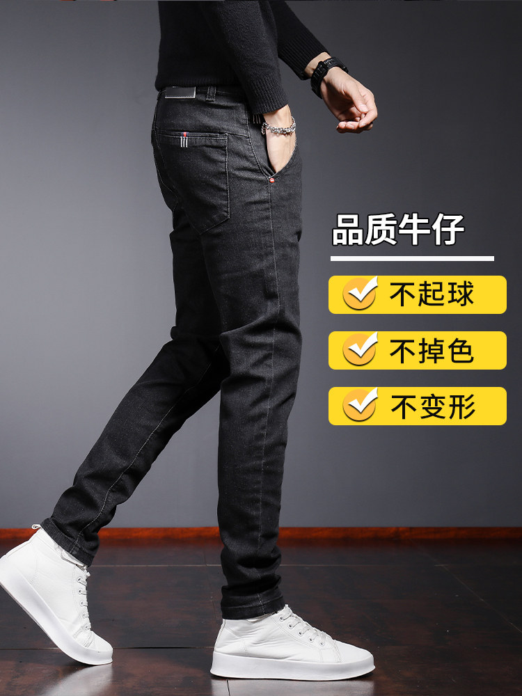 Мужские черные трендовые джинсы, демисезонные штаны для отдыха, осенние, облегающий крой