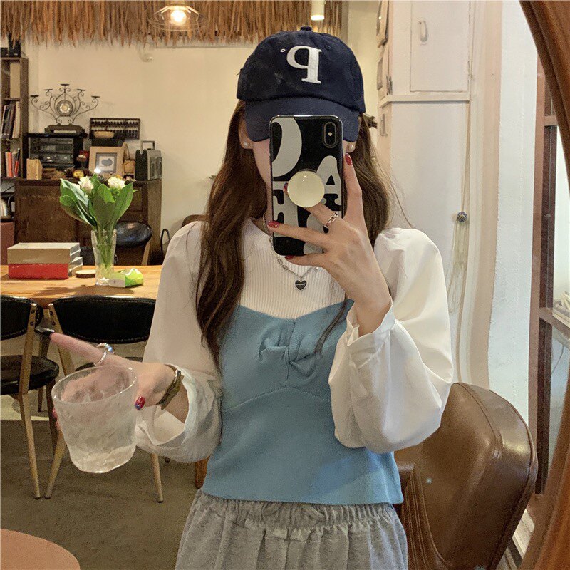 Рубашка, трикотажный универсальный лонгслив, короткий комплект, большой размер, осенняя, по фигуре, в западном стиле