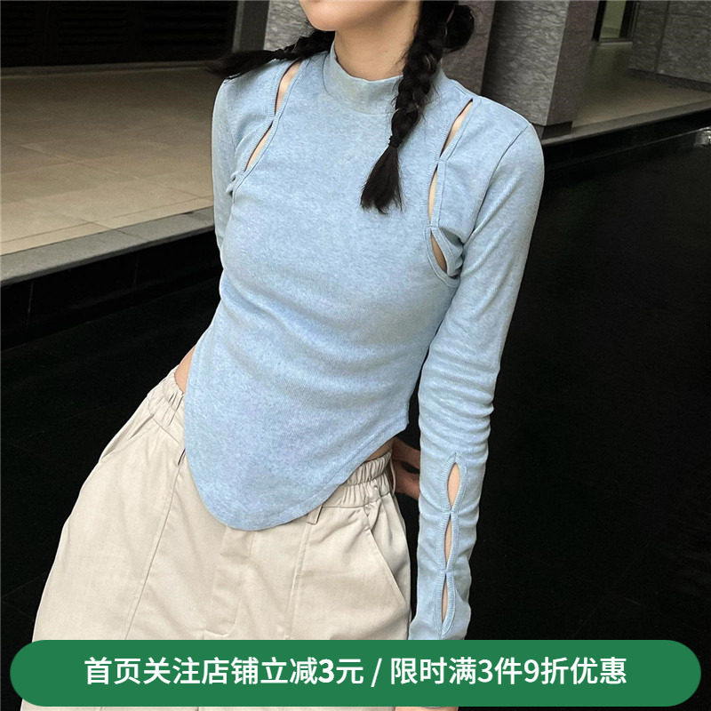 Сексуальная дизайнерская модная футболка, лонгслив, тренд сезона, облегающий крой