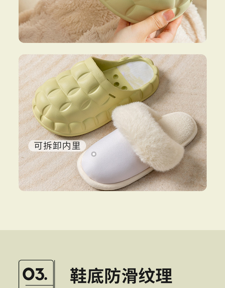 Съемные тапочки, зимняя нескользящая флисовая обувь
