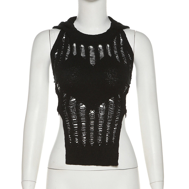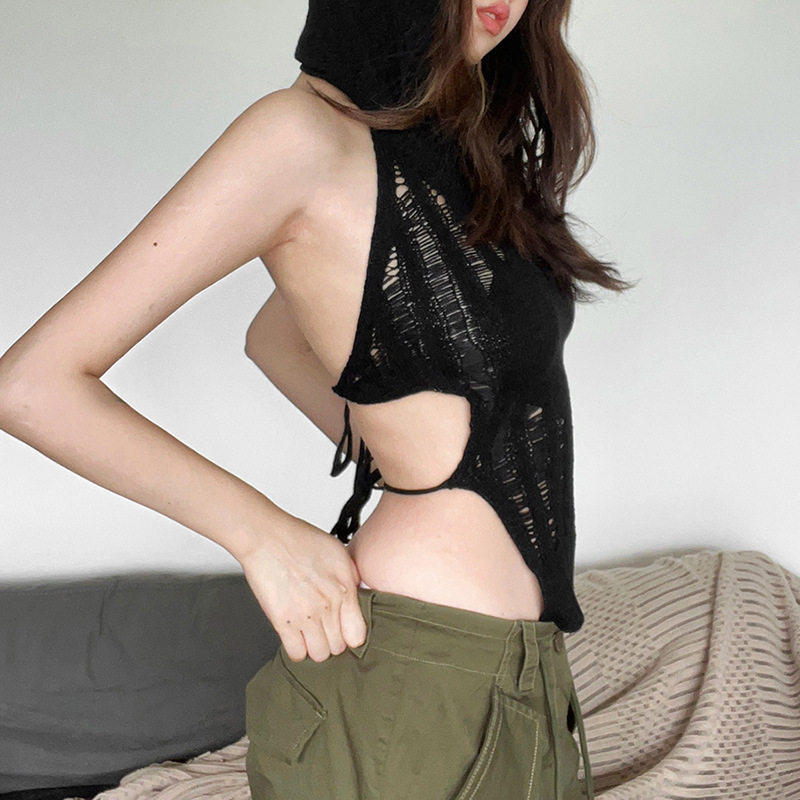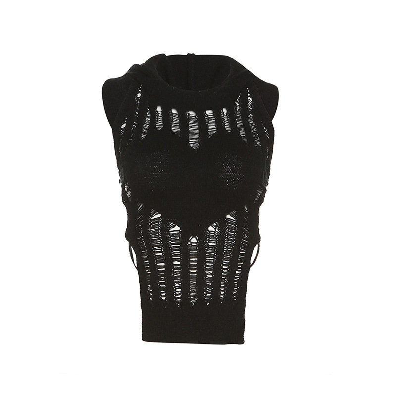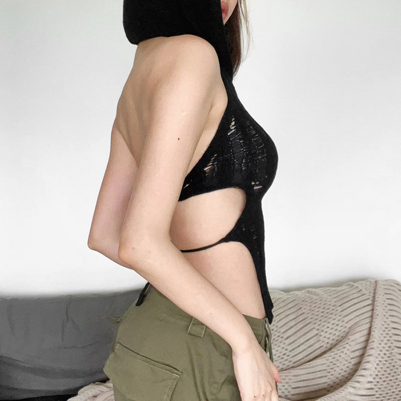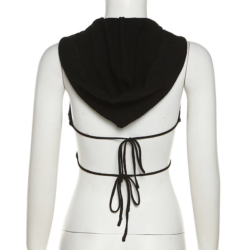 Небольшая дизайнерская майка топ без рукавов с капюшоном, европейский стиль, с открытой спиной, тренд сезона