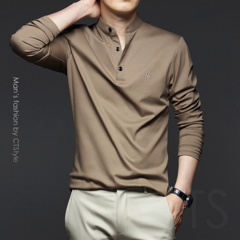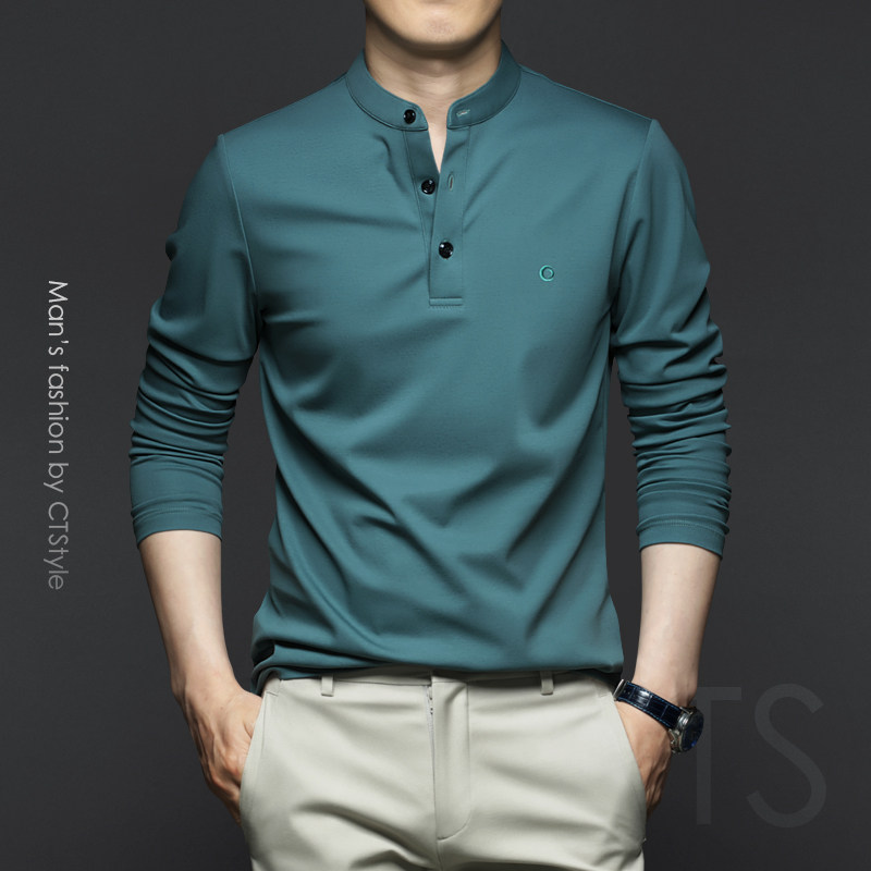 Хлопковый цветной тонкий базовый приятный телу лонгслив, США, высокий воротник