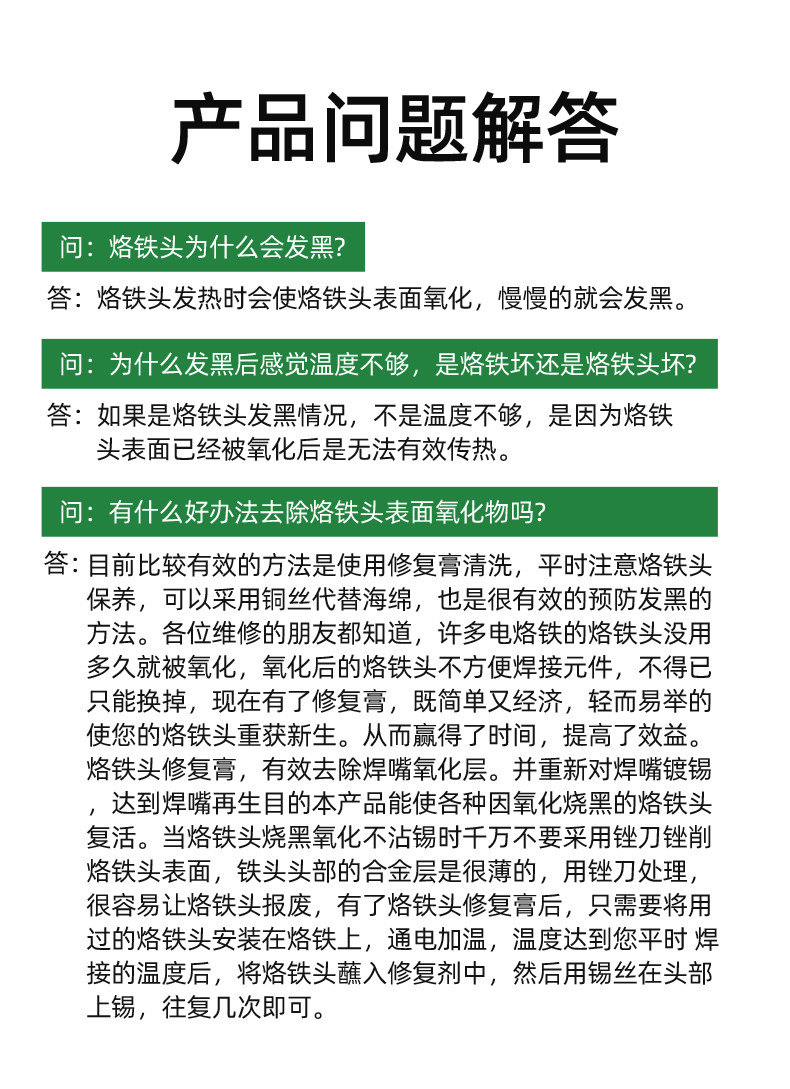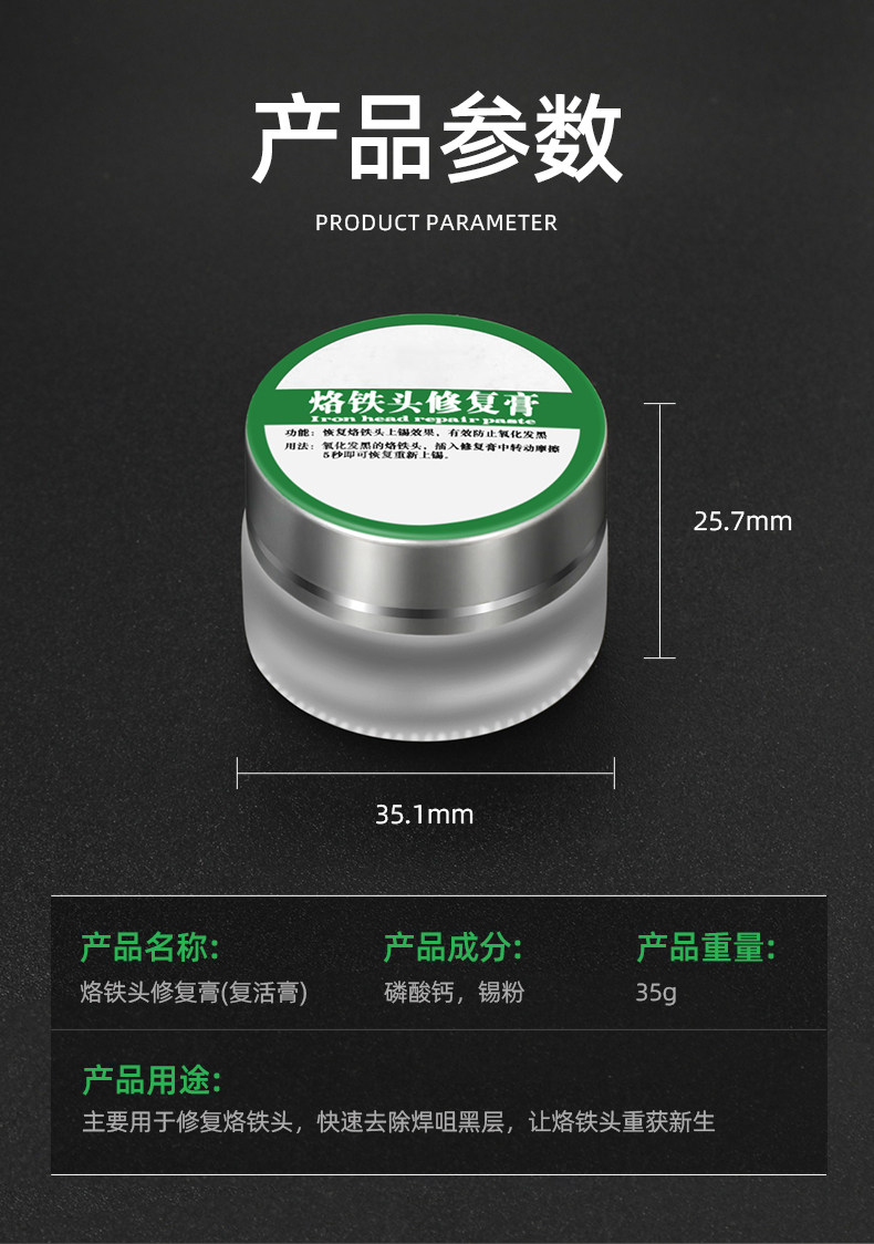 Крем для воскресения пайкой головки железа очищает окисляющий слой, эффективно решающий ингредиент железных волос.